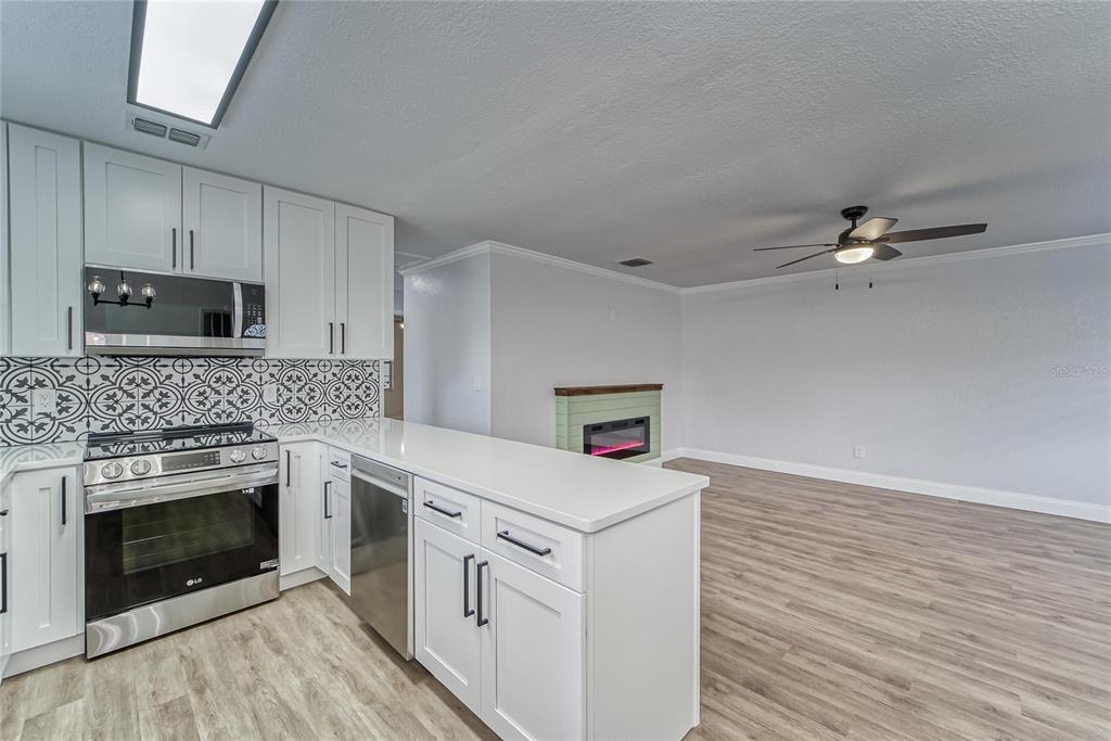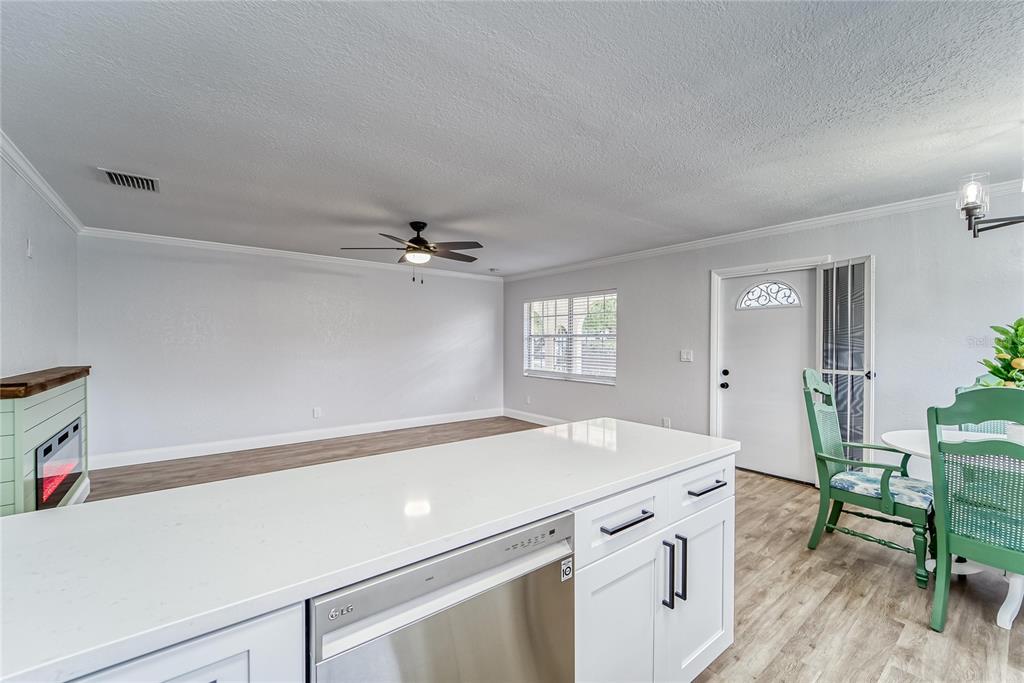 Bring all offers! this 2 bedroom, 2 bathroom kings point mansard ii furnished condo is fully renovated, move-in ready, and maintenance-free. just bring your suitcase! golf cart included - with new battery & new motor! the location is ideal on a quiet street, only a short distance from the main gate, north clubhouse, and community recreation center. the openness and natural light from the large windows greet you as you enter. the generous sized living room is perfect for entertaining or relaxing next to the built-in electric fireplace. the living and dining rooms are open to the spacious kitchen featuring ample quartz countertop space, solid 42" wooden soft close cabinetry, tiled custom backsplash, samsung stainless steel appliances, updated lighting and a large stainless steel single sink. the spacious primary bedroom can sleep a king size bed plus extra room for other furnishings, and features a walk-in closet plus an ensuite bathroom with a standalone frameless glass shower, porcelain tile shower walls, and rainfall showerhead. the spacious florida room or multipurpose room completes this fabulous unit with new hurricane impact-resistant windows, a reinforced exterior wall, and laundry space with new appliances. other major updates include new hvac, new pvc plumbing, new electrical panels and wiring, tankless water heater, new water shutoff line, new samsung full-size washer and dryer, 5" crown moldings, 6" baseboards, led lighting, and lvp flooring. the dorchester c association has meticulously maintained the mature landscaping giving the home and courtyard a warm entrance. sun city center is voted the country's #1 premier active adult community. enjoy the golf cart friendly resort-lifestyle of kings point with its two gated entrances, beautiful north and south clubhouses, multiple indoor and outdoor pools, café dining with full service bar, an 850-seat veterans theater, fitness centers, pickleball, golfing, tennis, billiards, golf, over 200 social clubs, and much more. be as active as you'd like all year long. located just a short drive from the award-winning gulf coast beaches, convenient to tampa, st pete, and sarasota, cruise ports, fine dining, shopping, and hospitals makes this location ideal. lawn care, water, sewer, pest control, standard internet, basic cable, exterior grounds maintenance, exterior insurance and use of amenities are included in the monthly dues. truly maintenance free!401 DORCHESTER #52, SUN CITY CENTER, FL 33573