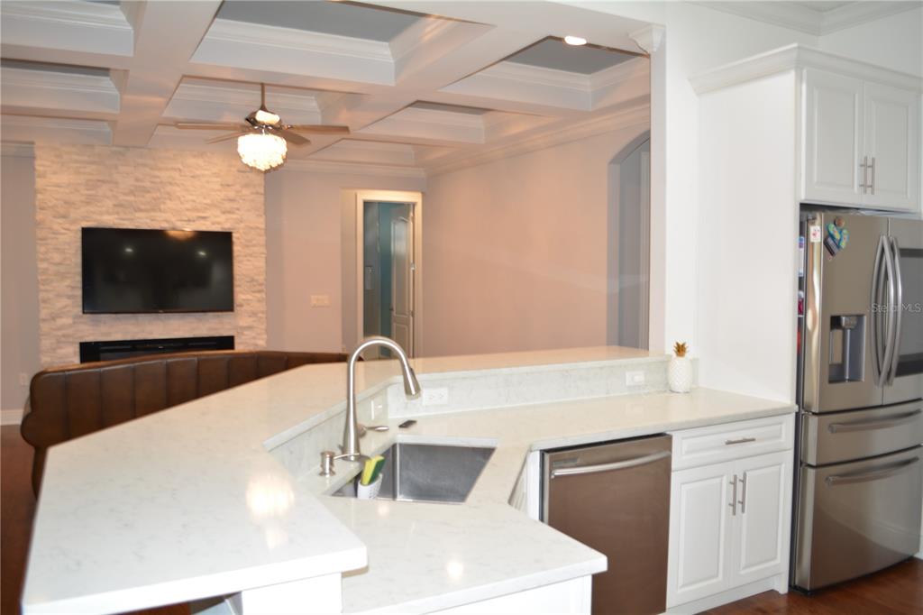 Split Bedroom Walk-In Closet(s)Ceiling Fan(s) Eating Space In Kitchen Stone Counters Thermostat Open FloorplanCrown Molding Primary Bedroom Main Floor Kitchen/Family Room Combo Coffered Ceiling(s)Exterior Features: