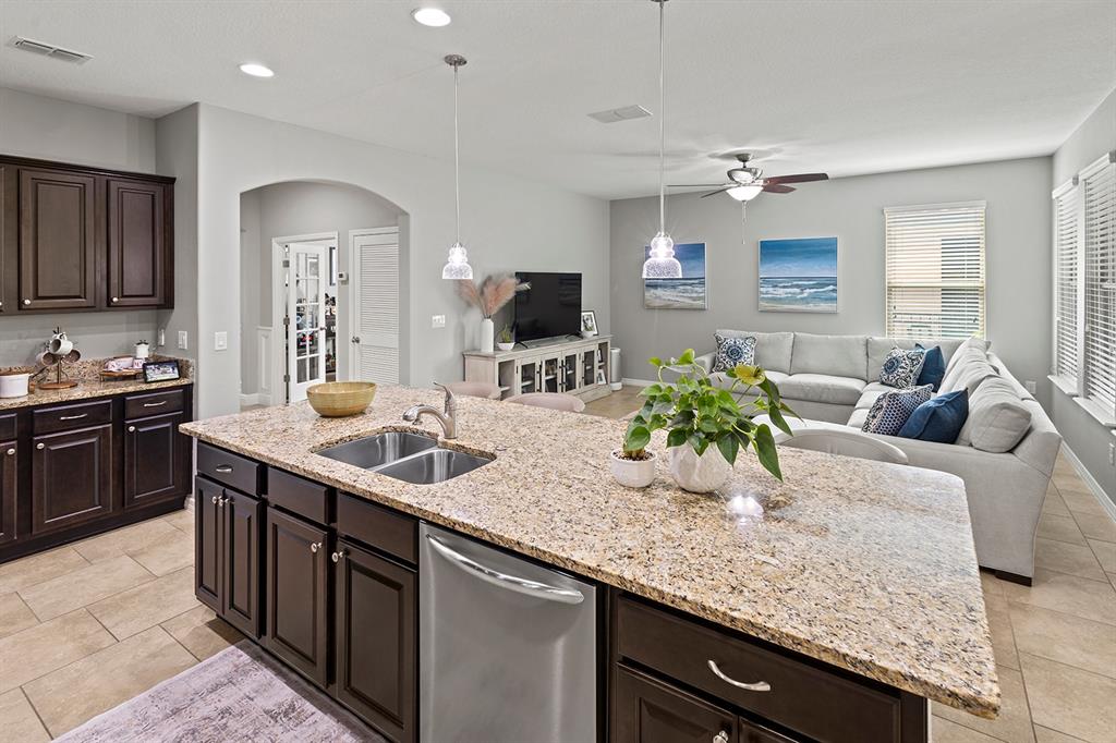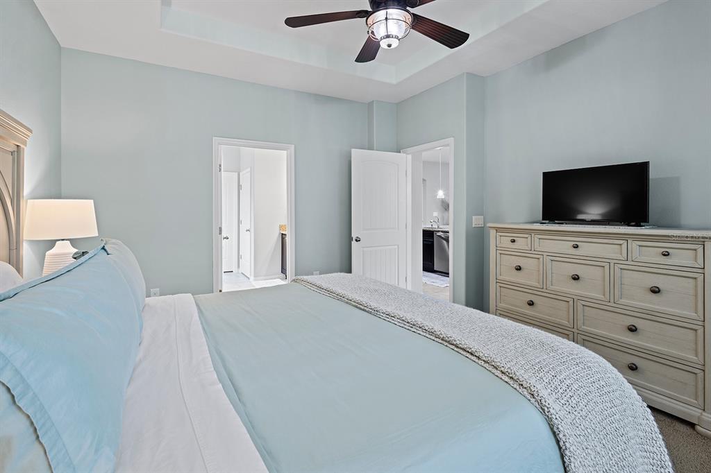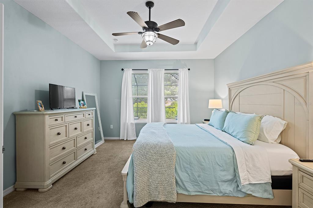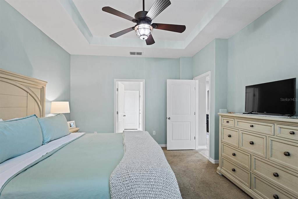 Walk-In Closet(s)Ceiling Fan(s) Stone Counters Open Floorplan Primary Bedroom Main Floor Tray Ceiling(s)Exterior Features: