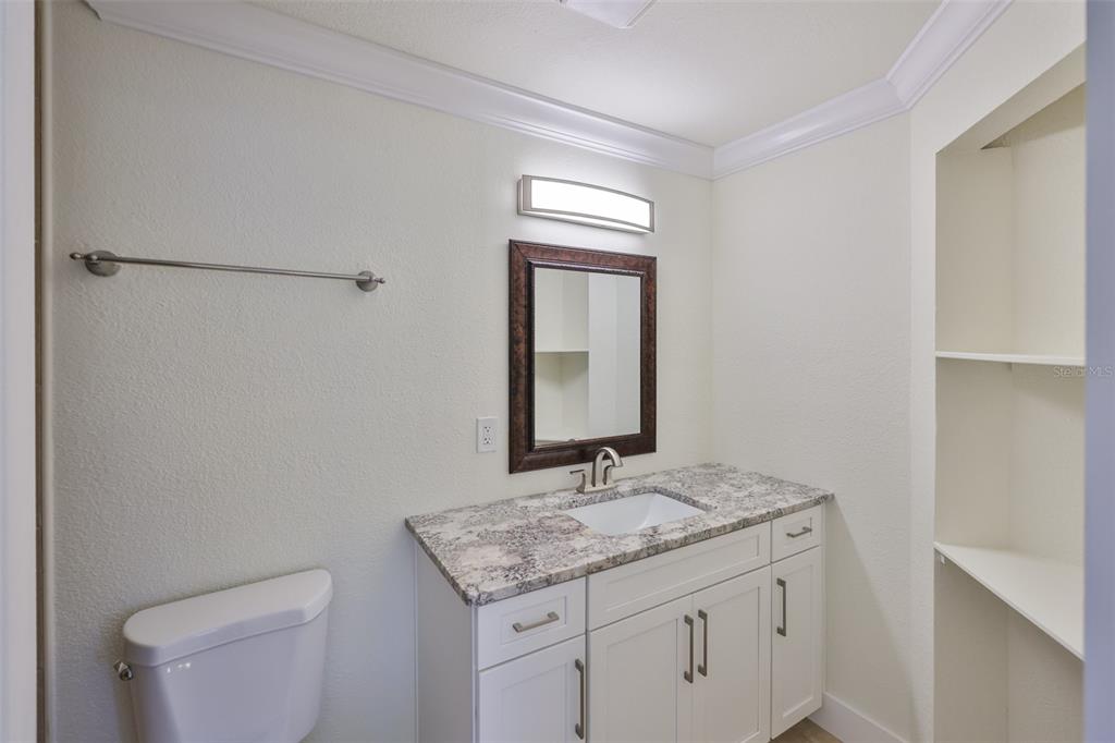 Walk-In Closet(s)Ceiling Fan(s) Living Room/Dining Room Combo Stone Counters Open Floorplan Window Treatments Solid Wood CabinetsCrown Molding Primary Bedroom Main FloorExterior Features: