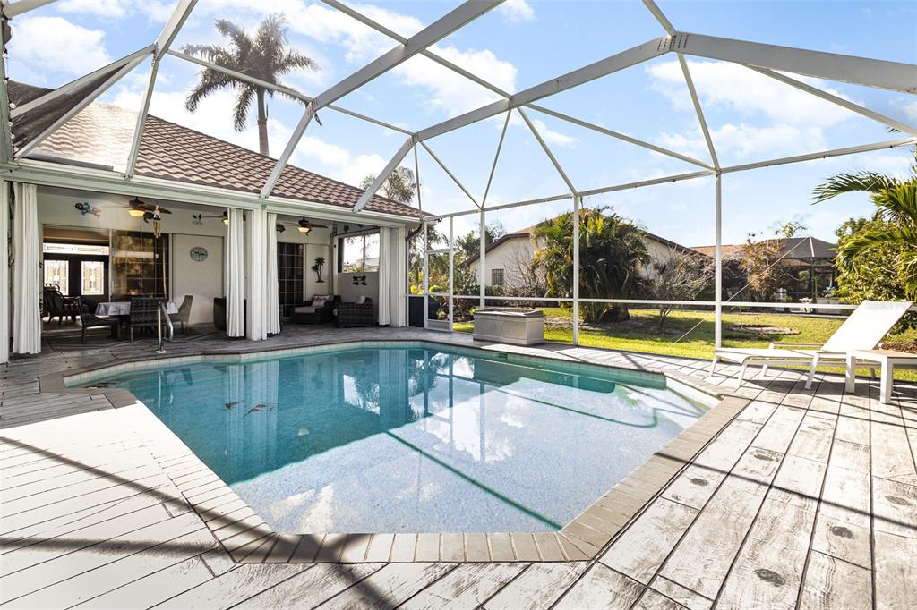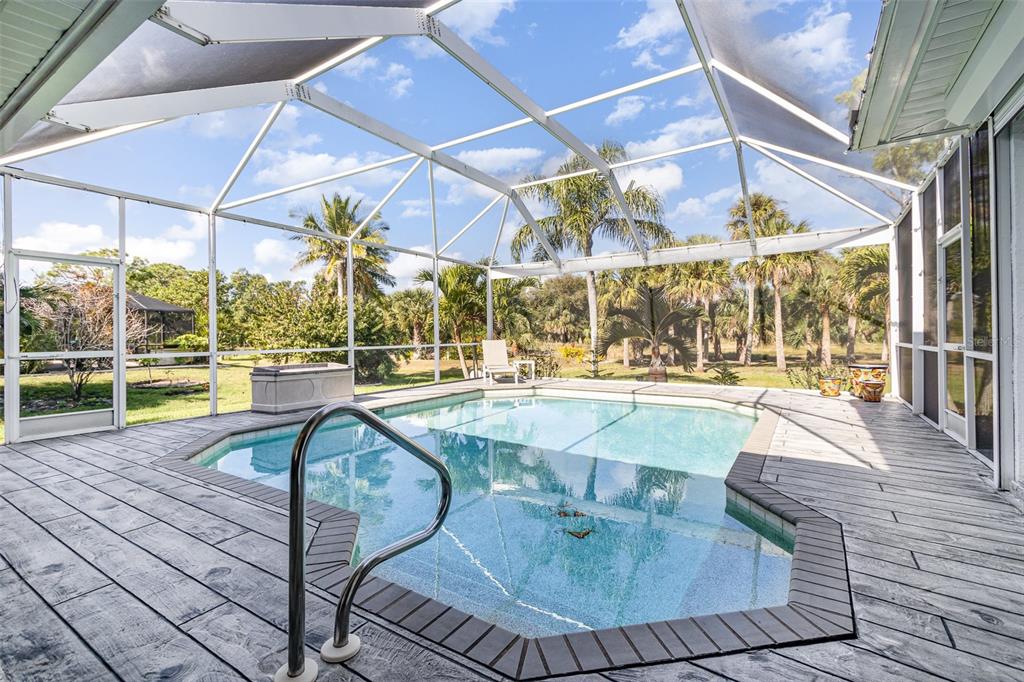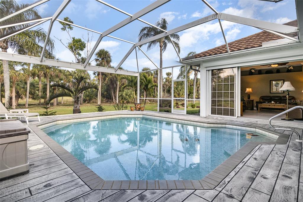Discover the perfect blend of comfort and elegance in this 2,189 sq. ft. block-constructed pool home, designed for both relaxation and entertaining. featuring 3 bedrooms each with its own en suite bathroom, plus a convenient half bath, this home offers privacy and luxury at every turn. step outside to your screened lanai with a generous under-truss seating area, perfect for enjoying florida’s beautiful weather year-round. the heated pool (new heater in 2018) provides the ultimate retreat, while the professionally landscaped yard offers serene views backing to lush nature and trees. this home boasts numerous updates, including: *new tilcor metal roof (2019) with a 50-year warranty *new ac (2022) plus a mini split unit in the garage *new tile flooring throughout (2020) for a sleek and modern look *freshly painted inside and out for a crisp, updated feel *new front doors (nov 2022) for added curb appeal and security *garage door with a steel brace for peace of mind *24kw generac generator with a 500-gallon buried propane tank for whole-home backup power the spacious living room features a large picture window, flooding the space with natural light and offering scenic backyard views. and when privacy is wanted, you can draw the honeycomb cellular blinds on all sliders which allows diffused light and adds energy efficiency. the primary bath features a jetted tub for the ultimate relaxation after a long day and the garage offers abundant storage, complete with shelving to keep everything organized. this home truly has it all—modern updates, thoughtful design, and a stunning outdoor space. and, it is high and dry - seller has shared that this home has not flooded and is one of a few on the street not to flood due to elevation!! pre-inspected for your review (although you can conduct one independently if you prefer) and includes a one year warranty for your peace of mind!!! schedule your showing today!4041 ORANGE GRV, NORTH FORT MYERS, FL 33903