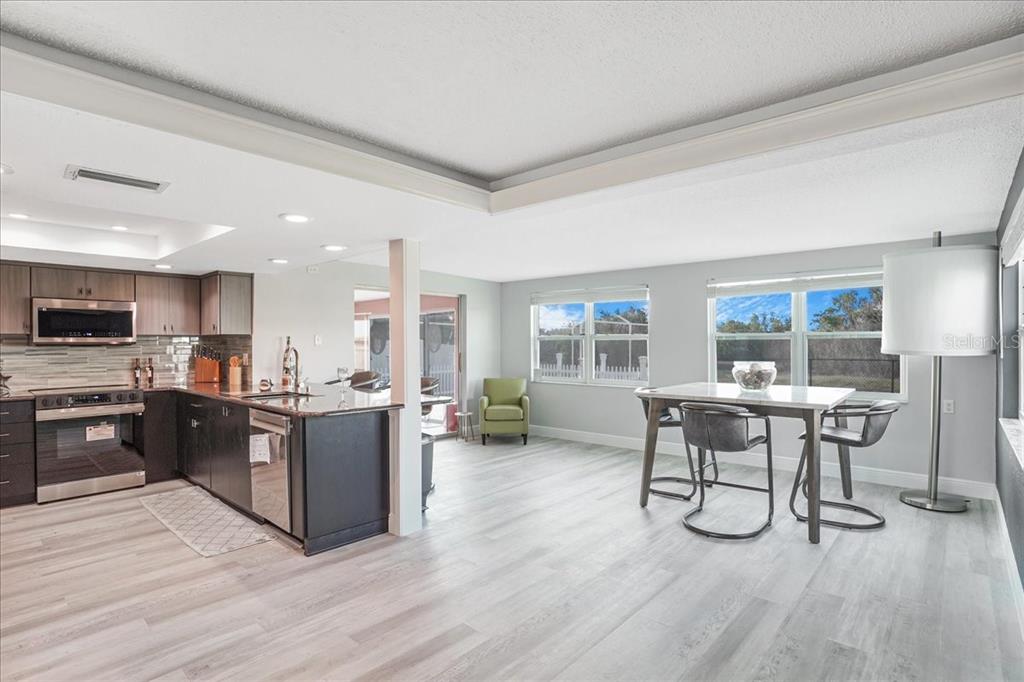 Beautifully updated and renovated gulf harbors 2 bedroom 2 full bath home. all the things you would want in a new construction home, luxury vinyl plank flooring, brand new soft close kitchen cabinets, granite counters, brand new stainless steel appliances with a factory warranty, updated copper plumbing, newly rewired electrical with new arc fault breakers in electrical box, newly renovated bathrooms, brand new cat 3 rated windows, brand new flat roof over rear half of home, completely new elevated hvac system, new hot water heater and washer and drier in garage. not a detail overlooked , including elevated wall outlets throughout. new canopy cover for shade structure on back patio overlooking conservation area behind home. open concept kitchen and dining area also look out onto the rear conservation land behind your fully fenced back yard with plenty of grass for your pets. split bedrooms, the primary suite has a walk in shower and the second bedroom is right next to the other full bath. there is a pavered driveway and an oversized one car garage. a pavered back patio with a shade structure to relax under for afternoons and evenings outdoors. the sun porch is a great place to enjoy a coffee or cocktail. a little over 1 mile away from the private beach club with covered eating areas, you can easily walk or bike down for a day in the sun and sand. or drop your boat right into the water and head out onto the gulf for some fishing! golf cart friendly community, just minutes from shopping on us19. potted plants in front yard do not convey. this property is eligible for ab&b and would make a super investment/get away! owner financing available4043 TOPSAIL, NEW PORT RICHEY, FL 34652