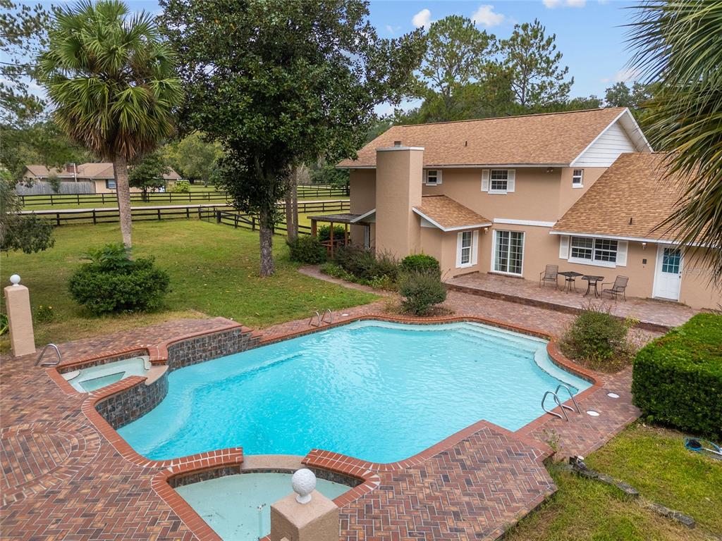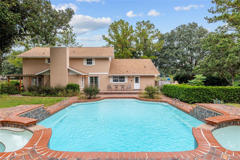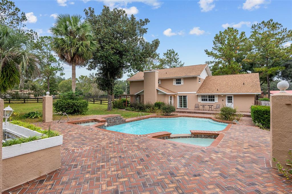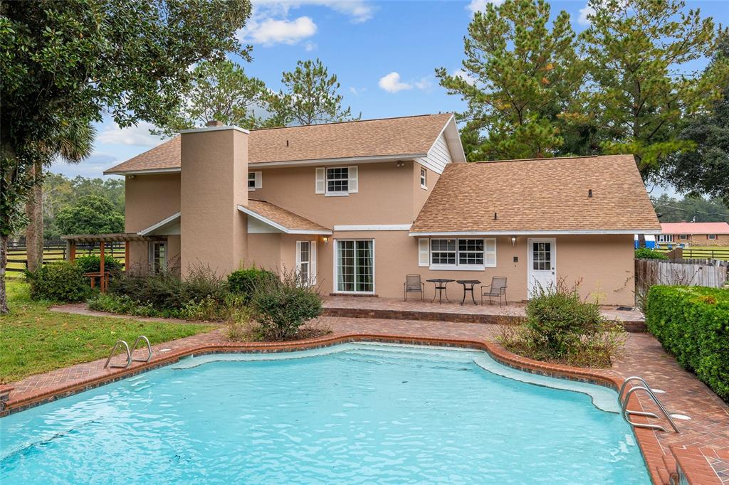 This charming home is ready for new owners to make wonderful memories! this home boasts four bedrooms which are all on the upper level. the lower level includes two living areas, kitchen, dining room, laundry room and two baths. the downstairs boasts a cozy brick fireplace. the builder-special pool is one of a kind with two waterfalls emptying into the 30,000-gallon pool. the spacious, mature lot of 1.37 acres is fenced with a large circular driveway in the front. new roof in 2023 and new double-pane windows! see this home in this beautifully sought-after neighborhood.4060 SE 44TH, OCALA, FL 34480