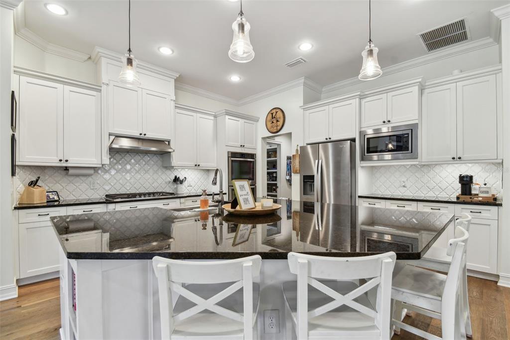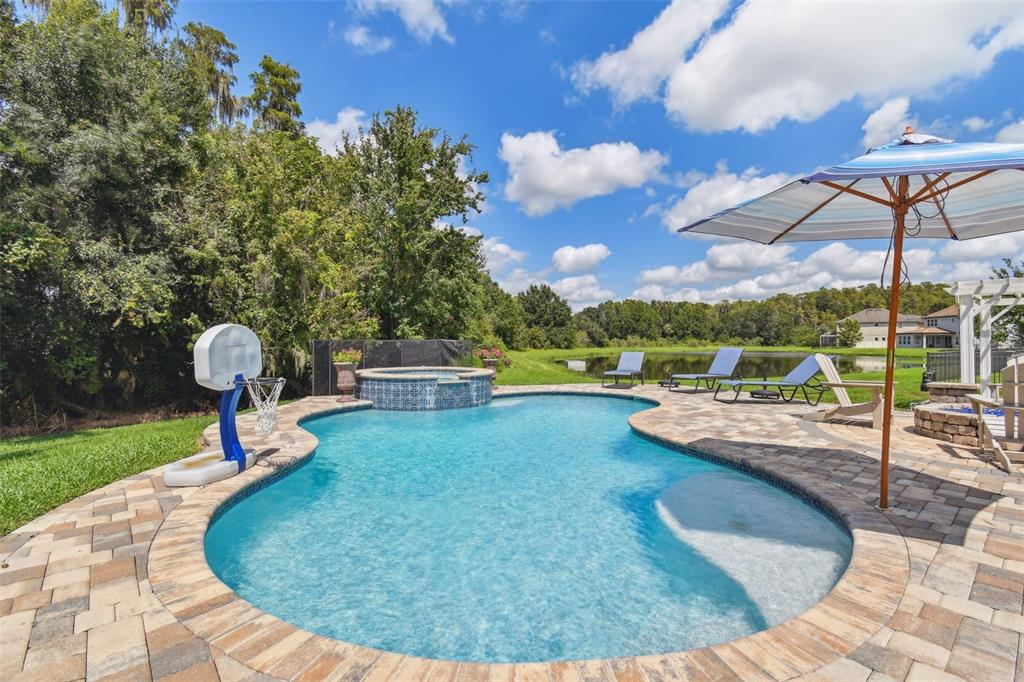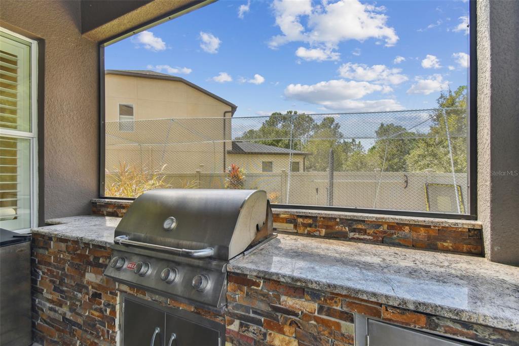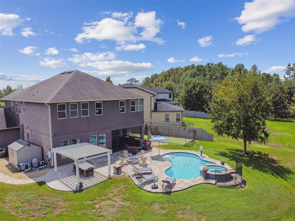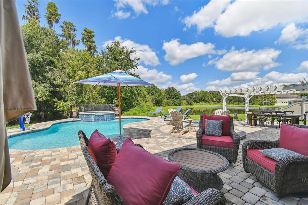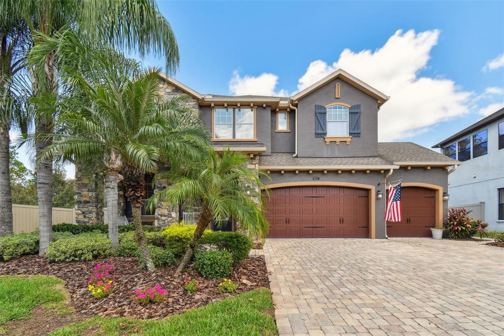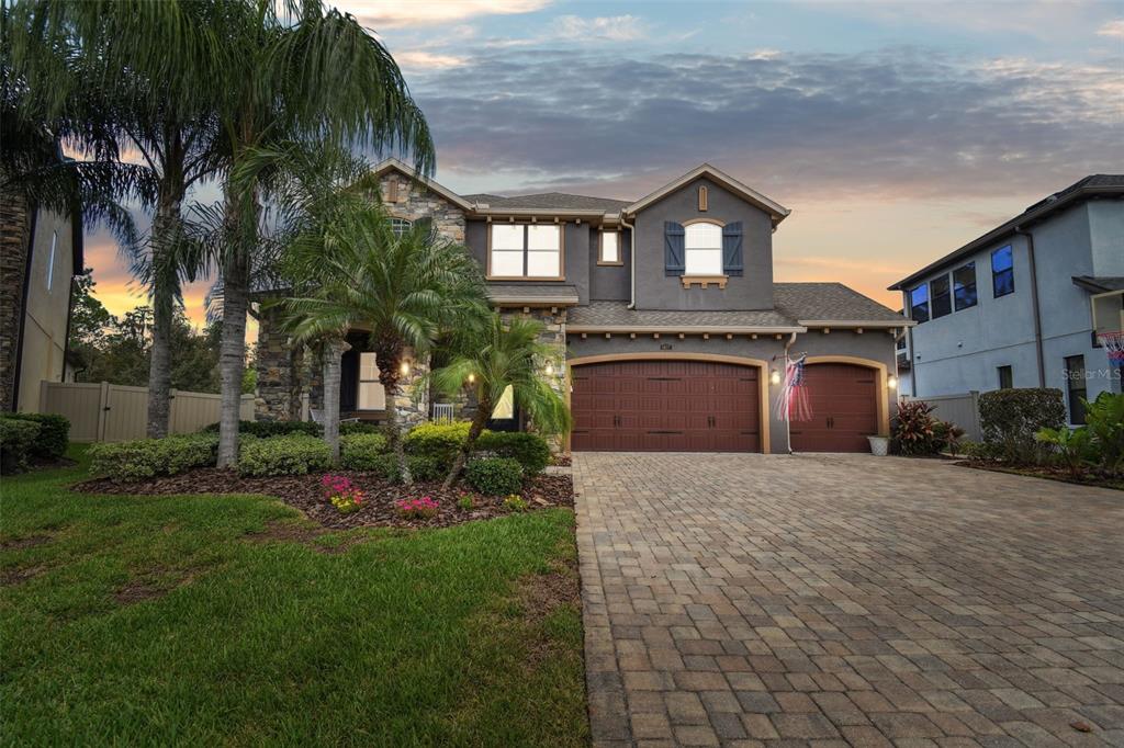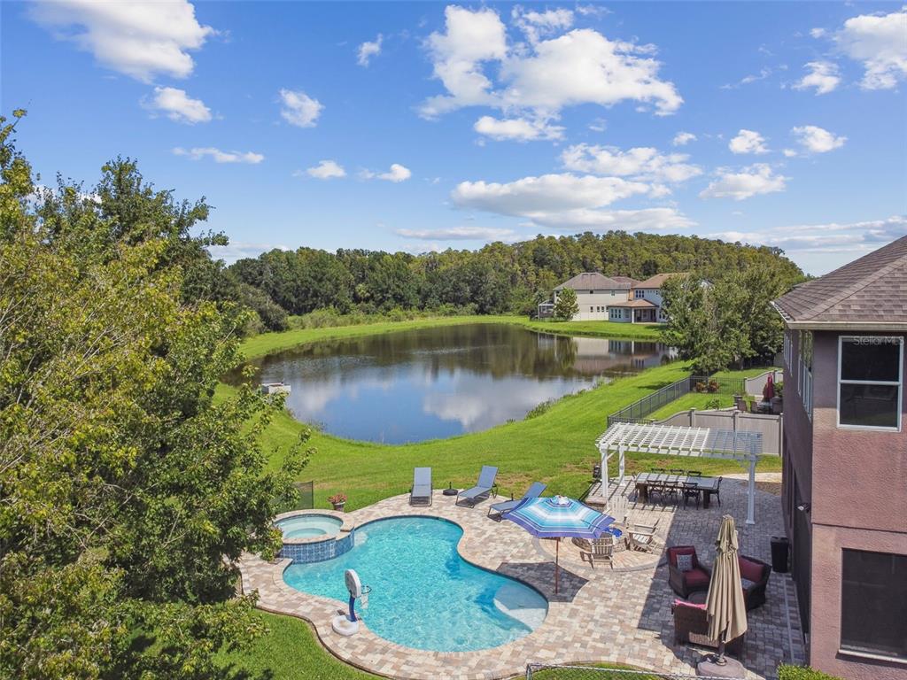 Stunning standard pacific built bedford floor plan on one of estancia's finest homesites. gorgeous water and conservation views. almost 3700 square feet of living space with five large bedrooms, three bathrooms plus a den/study, bonus room, sitting area off the primary bedroom and loft. sit out around the sparkling pool and enjoy florida living at its finest. the large gourmet kitchen includes a gas cook top with stainless steel vent, double wall ovens, built-in microwave, beautiful upgraded white cabinetry, granite countertops, undermount lighting, stylish tile backsplash, stainless steel farmers sink, huge pantry, recessed lighting and a handy breakfast bar with pen lights. large casual dining area off the kitchen with tremendous views. engineered hardwood in the entry, den/study, dining room, great room, kitchen and casual dining. the luxurious primary suite features a large bedroom with wonderful sitting area, bathroom with double vanity with granite counters and undermount sinks, garden tub, walk-in shower, private water closet and two large walk-in closets. there are many other attributes to this home. some include smooth textured walls and ceilings typically found in multi-million dollar custom homes, custom built-ins in the bonus room, 5 1/4" baseboards, crown molding, plantation shutters, leaded glass front door entry with sidelight, quaint front porch, stone accents, ev charger in the three car garage, summer kitchen on the lanai and so much more. the custom pool features a built-in spa, gas heat, uv filtration system and pavered deck with a gas firepit, pergola and built-in concrete dining table. on the side of the home is a batting cage with artificial turf. the batting cage can stay or go. estancia is an award-winning community with some of the finest amenities in the tampa bay area. close by you will find excellent schools, hospitals, shoppes at wiregrass, the premium outlet mall with many, many dining and entertainment options. a 30 minute drive to downtown tampa. easy access to usf, the va hospital, moffitt cancer hospital, busch gardens and much more. pride of ownership very evident. hurry!4077 CANINO, WESLEY CHAPEL, FL 33543