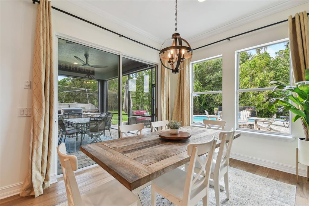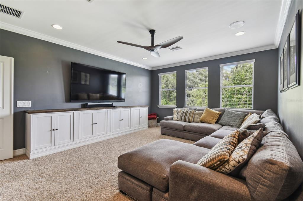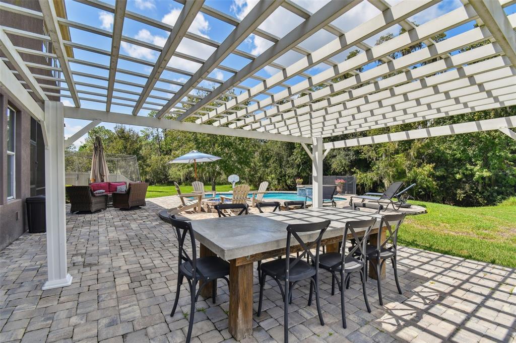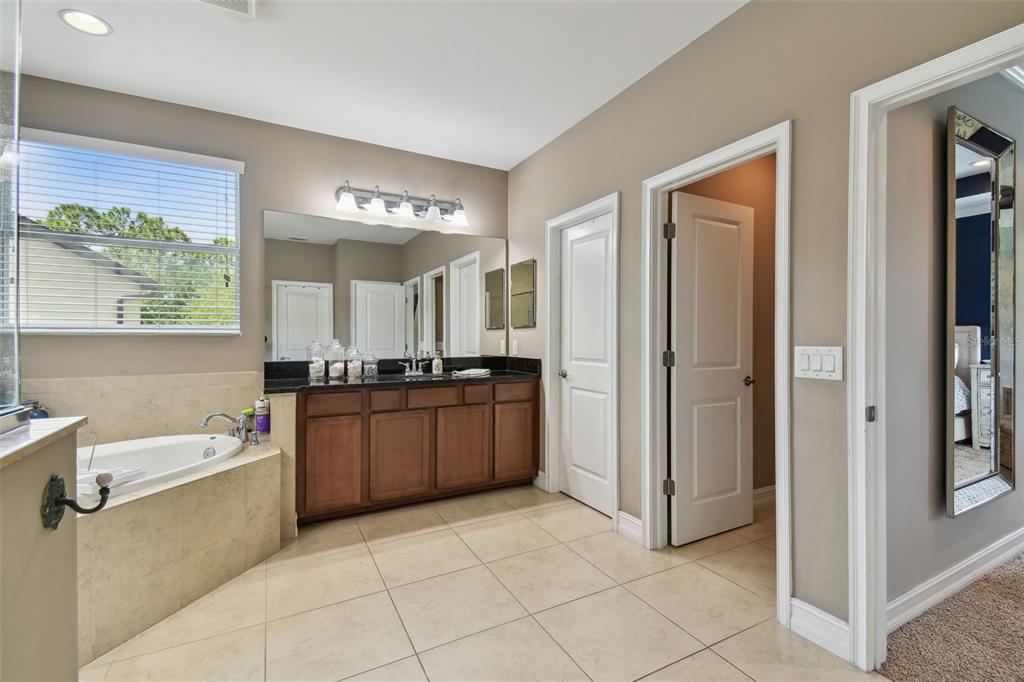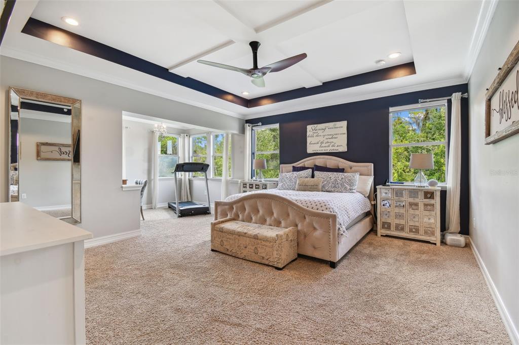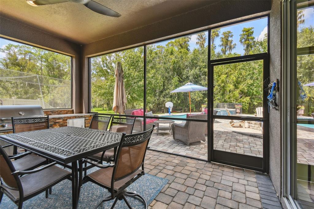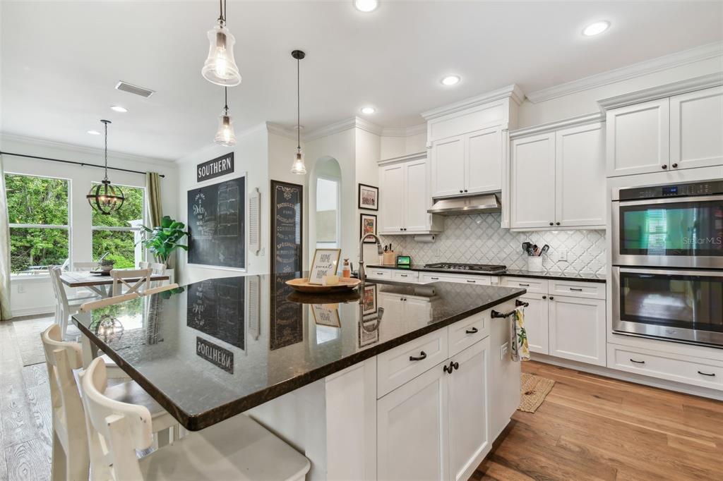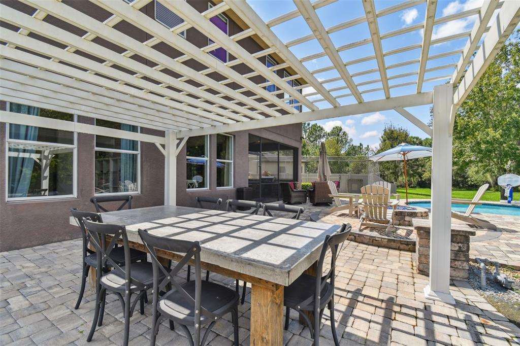 Stunning standard pacific built bedford floor plan on one of estancia's finest homesites. gorgeous water and conservation views. almost 3700 square feet of living space with five large bedrooms, three bathrooms plus a den/study, bonus room, sitting area off the primary bedroom and loft. sit out around the sparkling pool and enjoy florida living at its finest. the large gourmet kitchen includes a gas cook top with stainless steel vent, double wall ovens, built-in microwave, beautiful upgraded white cabinetry, granite countertops, undermount lighting, stylish tile backsplash, stainless steel farmers sink, huge pantry, recessed lighting and a handy breakfast bar with pen lights. large casual dining area off the kitchen with tremendous views. engineered hardwood in the entry, den/study, dining room, great room, kitchen and casual dining. the luxurious primary suite features a large bedroom with wonderful sitting area, bathroom with double vanity with granite counters and undermount sinks, garden tub, walk-in shower, private water closet and two large walk-in closets. there are many other attributes to this home. some include smooth textured walls and ceilings typically found in multi-million dollar custom homes, custom built-ins in the bonus room, 5 1/4" baseboards, crown molding, plantation shutters, leaded glass front door entry with sidelight, quaint front porch, stone accents, ev charger in the three car garage, summer kitchen on the lanai and so much more. the custom pool features a built-in spa, gas heat, uv filtration system and pavered deck with a gas firepit, pergola and built-in concrete dining table. on the side of the home is a batting cage with artificial turf. the batting cage can stay or go. estancia is an award-winning community with some of the finest amenities in the tampa bay area. close by you will find excellent schools, hospitals, shoppes at wiregrass, the premium outlet mall with many, many dining and entertainment options. a 30 minute drive to downtown tampa. easy access to usf, the va hospital, moffitt cancer hospital, busch gardens and much more. pride of ownership very evident. hurry!4077 CANINO, WESLEY CHAPEL, FL 33543