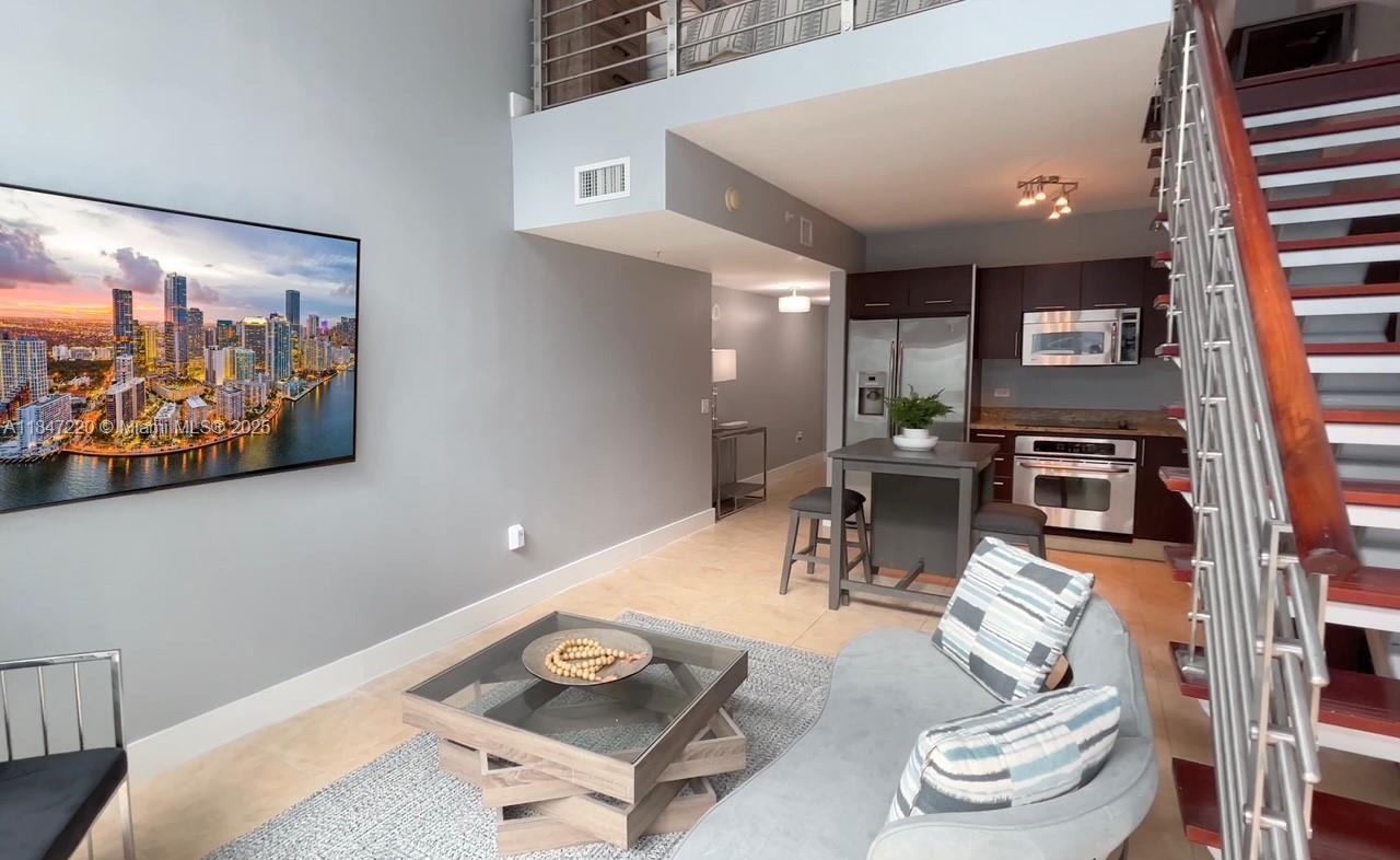 Fully furnished bi-level loft in brickell on the river south! great for investors. spacious 1bd/1.5ba loft-style condo with 1,056 sq ft, double-height ceilings, and floor-to-ceiling impact windows offering city and river views. modern open kitchen with granite countertops, stainless steel appliances, and european cabinetry. upstairs primary suite includes walk-in closet and spa-style bath with dual vanity, jacuzzi tub, and shower. washer/dryer in-unit. one assigned parking space included. full-service building with 24-hr concierge, 2 pools, 3-story fitness center, spa, business center, and more. pet-friendly, valet for guests, and no special assessments. prime location—steps to brickell city centre, metromover, dining, and shops. 30-day minimum rentals allowed. bring your offer!41 SE 5TH ST #1212, MIAMI, FL 33131