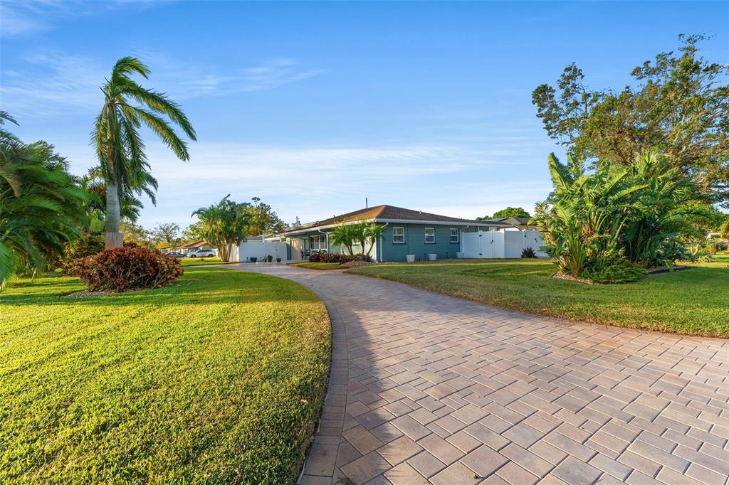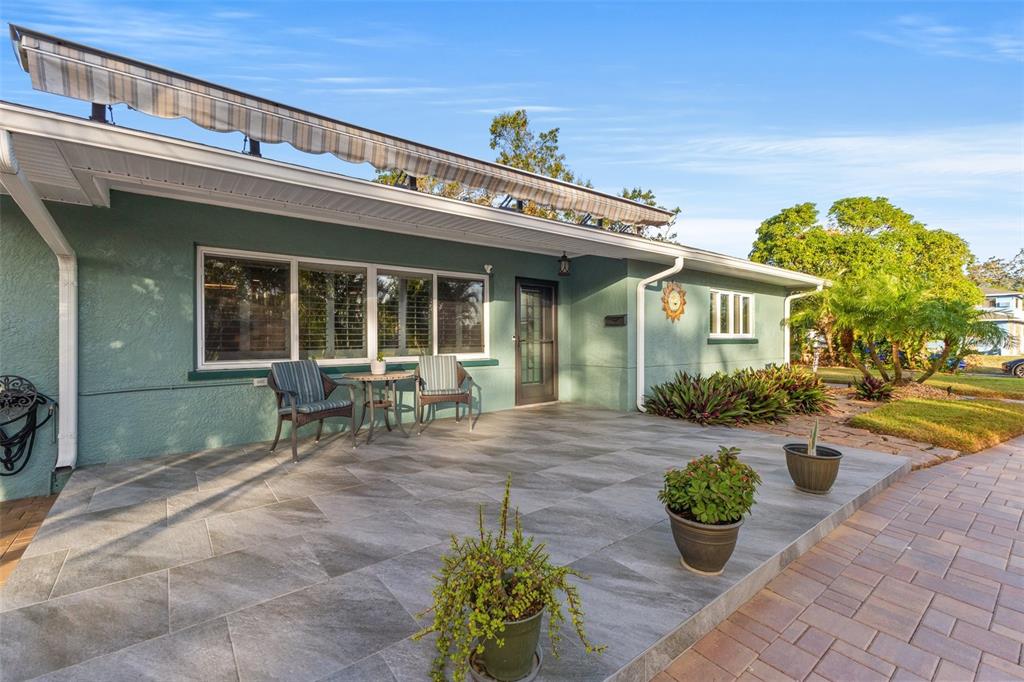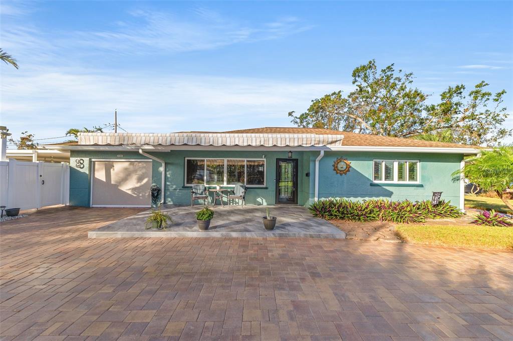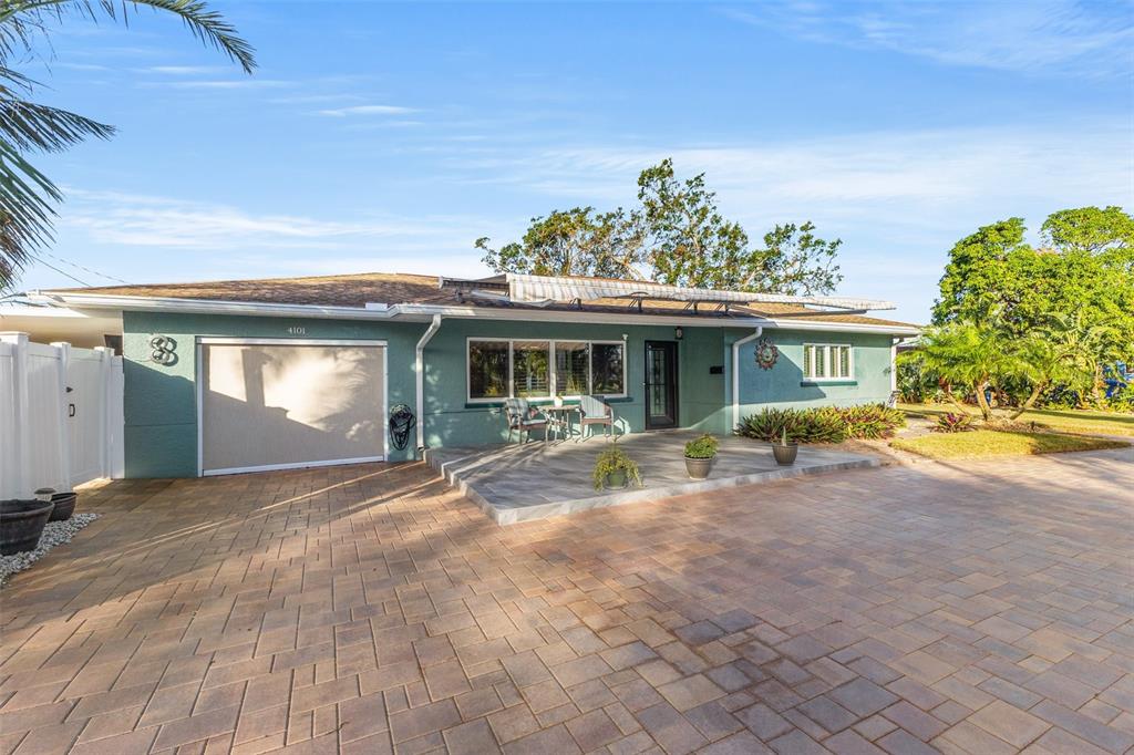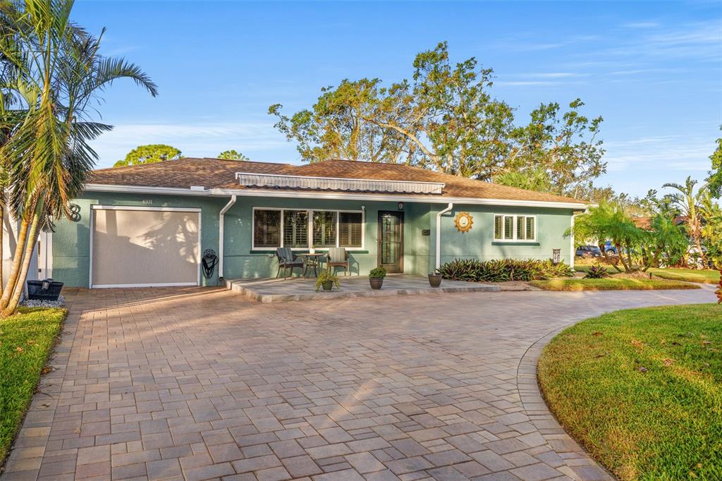 Welcome to an impeccable, move-in-ready corner lot ranch home in the coveted fairway green community! no flood zone! this property was high and dry during hurricane helene & milton. spanning 1,723 square feet of living space, this elegant 3-bedroom, 2-bath residence boasts refined finishes and abundant spaces for comfortable luxury living. as you arrive, lush, professional landscaping and a brick-paved circular driveway warmly welcome you. step up to the expansive tiled front porch, complete with a motorized awning for year-round enjoyment. the 1-car attached garage is not just functional but enhanced with a smart garage door opener, providing added convenience. an extensive 2,000 square feet of pavers surrounding the home, and a new bluetooth-controlled irrigation system with reclaimed water, promise a low-maintenance, eco-conscious exterior. inside, the elegance continues with new tile floors throughout, plantation blinds, and custom lighting, including recessed and solar-tinted window options, filling each room with a tailored ambiance. the updated kitchen is a chef’s delight, featuring soft-close wood cabinetry, granite countertops, a decorative stainless steel backsplash, a new stove, garbage disposal, and exquisite custom pendant lighting. the floor plan offers versatility with a formal living room a spacious dinette area, a comfortable family room, and a study/den with a large storage closet. retreat to the primary bedroom, where a mini a/c split provides extra cooling for those warm florida nights. outdoors, enjoy a private backyard oasis with an outdoor shower, a fully fenced yard with vinyl privacy fencing, and an additional side yard for entertaining. nestled within an exclusive golf community, this home offers not only serenity but a prime location near specialty shopping, with easy access to i-275 for convenient commutes to downtown st. pete and tampa bay and minutes away from st. petersburg country club. discover the epitome of this unique style and attention to every detail.4101 CORTEZ S, ST PETERSBURG, FL 33712