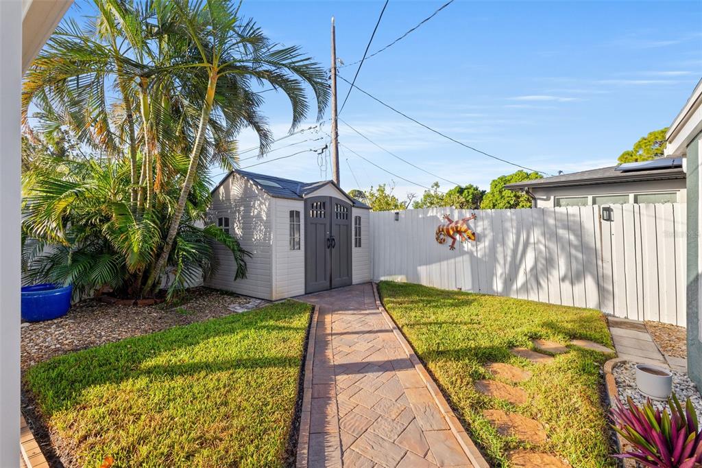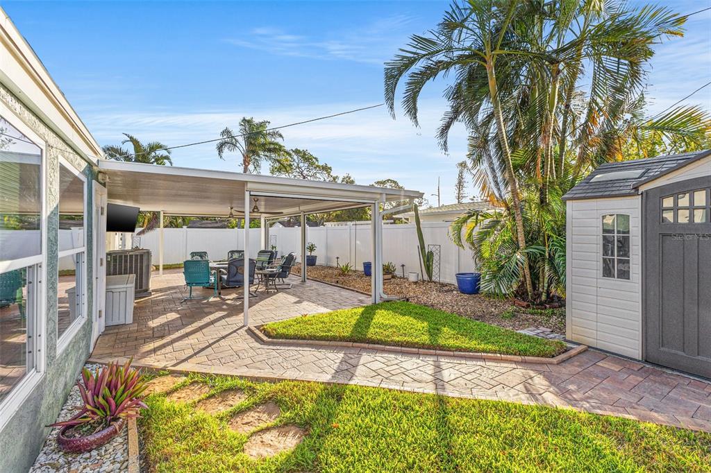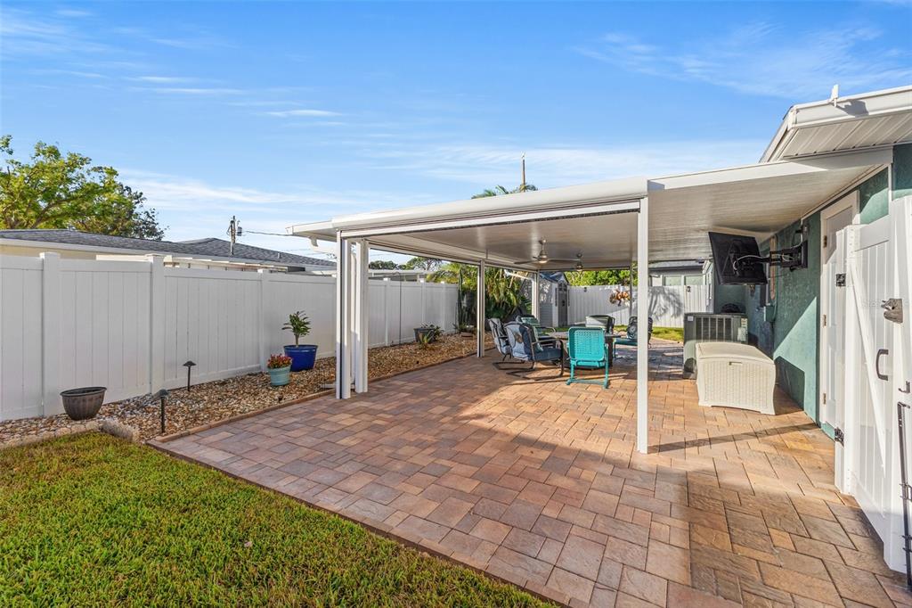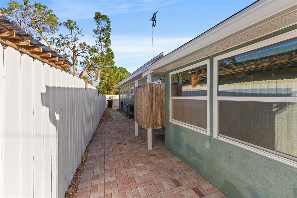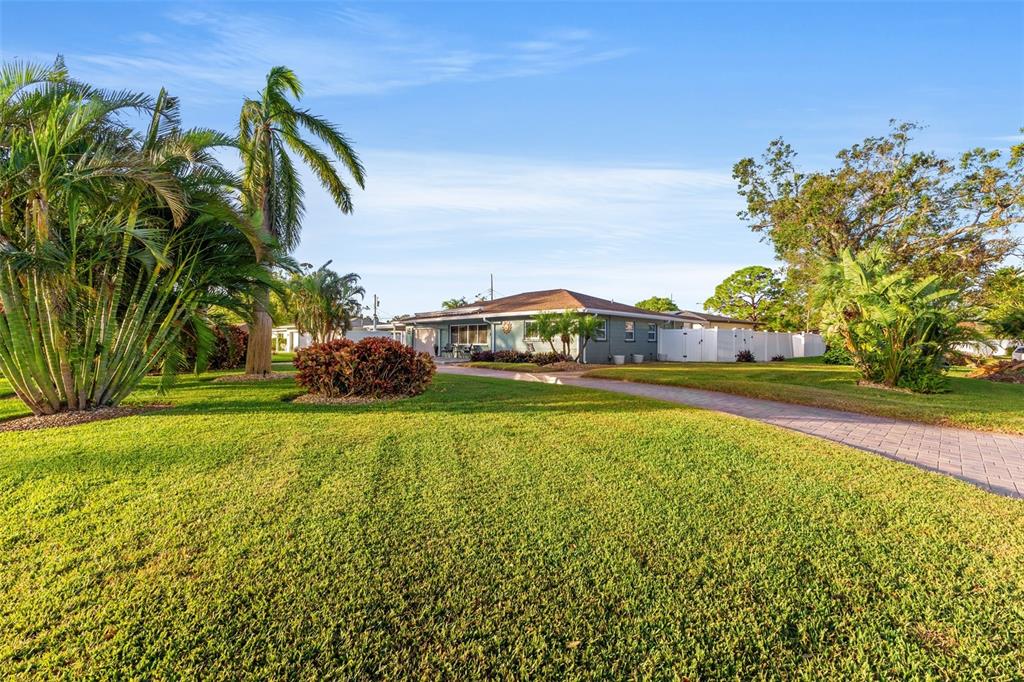 Welcome to an impeccable, move-in-ready corner lot ranch home in the coveted fairway green community! no flood zone! this property was high and dry during hurricane helene & milton. spanning 1,723 square feet of living space, this elegant 3-bedroom, 2-bath residence boasts refined finishes and abundant spaces for comfortable luxury living. as you arrive, lush, professional landscaping and a brick-paved circular driveway warmly welcome you. step up to the expansive tiled front porch, complete with a motorized awning for year-round enjoyment. the 1-car attached garage is not just functional but enhanced with a smart garage door opener, providing added convenience. an extensive 2,000 square feet of pavers surrounding the home, and a new bluetooth-controlled irrigation system with reclaimed water, promise a low-maintenance, eco-conscious exterior. inside, the elegance continues with new tile floors throughout, plantation blinds, and custom lighting, including recessed and solar-tinted window options, filling each room with a tailored ambiance. the updated kitchen is a chef’s delight, featuring soft-close wood cabinetry, granite countertops, a decorative stainless steel backsplash, a new stove, garbage disposal, and exquisite custom pendant lighting. the floor plan offers versatility with a formal living room a spacious dinette area, a comfortable family room, and a study/den with a large storage closet. retreat to the primary bedroom, where a mini a/c split provides extra cooling for those warm florida nights. outdoors, enjoy a private backyard oasis with an outdoor shower, a fully fenced yard with vinyl privacy fencing, and an additional side yard for entertaining. nestled within an exclusive golf community, this home offers not only serenity but a prime location near specialty shopping, with easy access to i-275 for convenient commutes to downtown st. pete and tampa bay and minutes away from st. petersburg country club. discover the epitome of this unique style and attention to every detail.4101 CORTEZ S, ST PETERSBURG, FL 33712