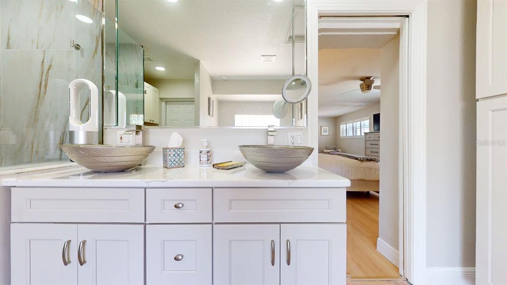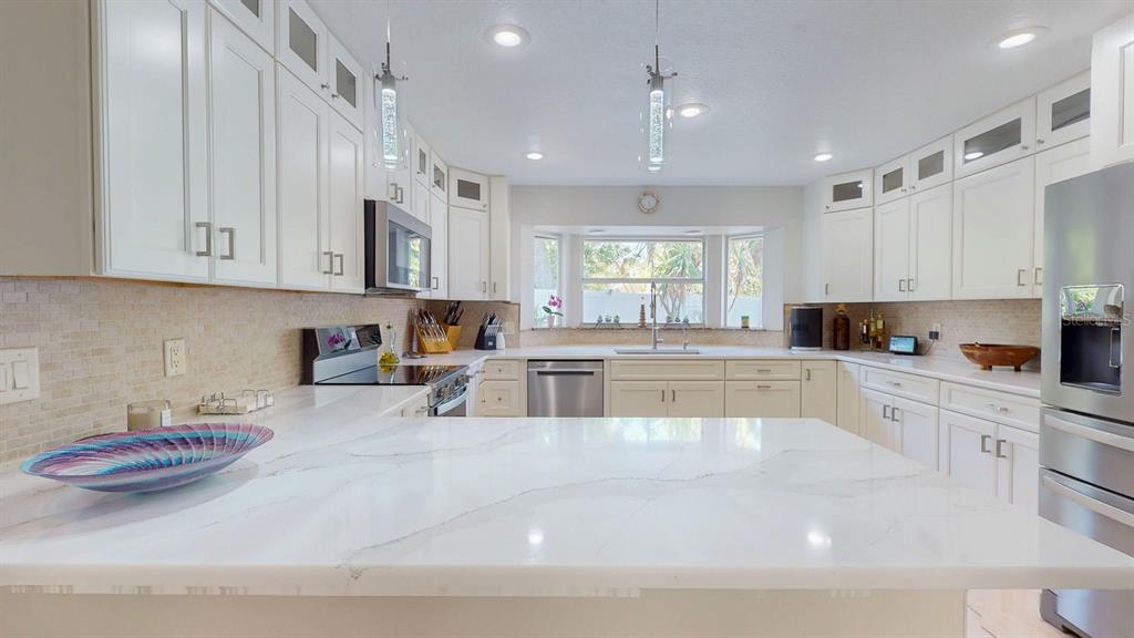 Discover the pinnacle of turnkey luxury in this masterfully renovated harbor bluffs residence. this exceptional pool home has been comprehensively reborn, boasting an astounding $250,000+ in meticulous updates, presenting an essentially brand-new property in the highly coveted harbor bluffs community. every detail has been carefully considered, from the seamless open flow and intelligent split floor plan to the refined finishes throughout. the heart of the home, a chef’s dream kitchen, showcases brand-new custom wood cabinetry, expansive quartz countertops, soft-close drawers with integrated pullouts, and a complete suite of brand-new, matching premium appliances. retreat to the luxurious owner’s suite, complete with a spacious walk-in closet and a redesigned, opulent en-suite bath featuring a new garden tub and elegant shower. the property's allure extends outdoors to an oversized corner lot, transformed into a private resort with lush, mature landscaping and a spectacular pool area – an entertainer's delight. french doors from both the owner's suite and the family room provide gracious access to this serene outdoor haven. beyond aesthetics, significant infrastructure upgrades include new lvp flooring throughout, new vanities and quartz countertops in all three bathrooms, a new 5-ton hvac system, a new water heater, and new solid wood interior doors. embrace remarkable energy efficiency and minimal electric bills thanks to the 2022 solar panel installation, complemented by a new solar-powered ev charger in the garage. conveniently located just minutes from the award-winning clearwater beach, this magnificent home offers an unparalleled opportunity to simply unpack and begin enjoying the ultimate florida lifestyle.411 HARBOR VW, LARGO, FL 33770