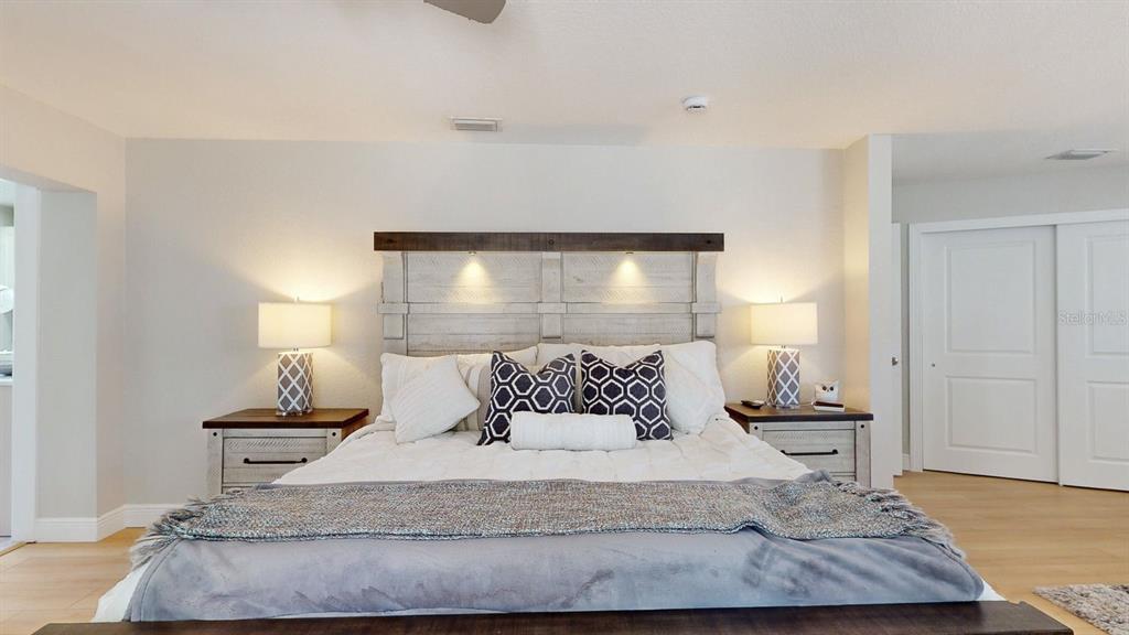 Walk-In Closet(s)Ceiling Fan(s) High Ceilings Stone Counters Open Floorplan Solid Wood Cabinets Primary Bedroom Main FloorExterior Features: