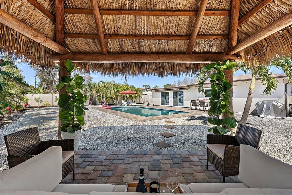 Welcome to this stunning, updated 3-bedroom, 2-bathroom home located at 4149 38th st s, st. petersburg, fl 33711. offering 1,826 sq ft of living space, this meticulously designed home features an open floor plan that seamlessly blends modern convenience with exceptional style. the entire home is adorned with beautiful, low-maintenance tile flooring, providing a sleek and cohesive look throughout. the large, inviting primary bedroom is a true retreat, offering ample space to relax and unwind. it features a beautiful design and an updated en-suite bathroom that exudes elegance and comfort, making it the perfect sanctuary after a long day. each of the guest bedrooms are versatile, offering plenty of space to suit your needs, whether you’re creating a home office, guest room, or a playroom. the home also features a designated dining area, perfect for enjoying meals with family and friends in a spacious and inviting setting. every detail has been thoughtfully considered, including custom window coverings throughout the home to ensure maximum privacy and enhance the overall aesthetic. the heart of the home is the recently updated kitchen, equipped with newer stainless steel appliances, an exhaust hood, newer fixtures, and ample cabinetry. this space is perfect for preparing gourmet meals or casual dining. step outside and discover a true outdoor paradise. the backyard boasts a stunning heated saltwater pool, wi-fi controlled for your convenience, and a charming tiki hut cabana, ideal for relaxing or hosting gatherings. the paver patio is perfect for enjoying the beautiful florida weather, while the low-maintenance white shell landscaping keeps the space clean and beautiful. dual sunsetter outdoor shades offer additional comfort, providing shade for both the outdoor patio and the interior of the home. this home is packed with recent updates for energy efficiency and peace of mind. in 2019, the home received a brand-new hvac system with ductwork, a new water heater, and high-end pgt hurricane impact windows throughout, including front, side, and rear sliders. the attic was also upgraded with blown-in insulation and solar-powered attic fans, further enhancing the home’s energy efficiency. irrigation was added in 2019, while the pool, pavers, and landscaping were completed in 2020. the roof was replaced in 2021 with hurricane straps, ensuring durability and protection for years to come. whether you're lounging by the pool, entertaining on the patio, or relaxing in your beautiful, updated interior, this home has it all. with its spacious, versatile layout, modern upgrades, and inviting outdoor spaces, 4149 38th st s is truly the perfect place to call home.4149 38TH S, ST PETERSBURG, FL 33711