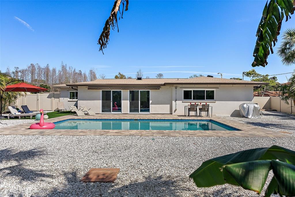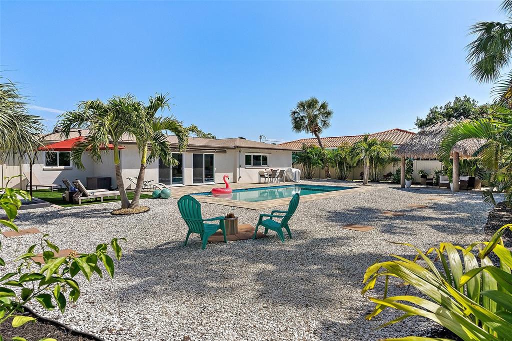 Nestled in the beautiful broadwater neighborhood of st. petersburg, this stunning 3-bedroom, 2-bathroom pool home offers the ultimate florida lifestyle. located just 10 minutes from world-class beaches and the vibrant energy of downtown st. pete, this property is a true gem. this home has been thoughtfully renovated to blend modern comforts with effortless, low-maintenance living. step inside to an open-concept floor plan with beautiful, large-profile tile flooring throughout. the gourmet kitchen is a chef's delight, featuring real wood, soft-close cabinets, stainless steel appliances, a fully-ventilated range hood, and granite countertops. the inviting primary bedroom is a serene retreat with a lovely en-suite bathroom, dual sinks, and a beautifully tiled oversized shower. it also boasts two custom closets, one designed for the shoe lover in all of us. the two additional bedrooms are spacious and versatile, perfect for guests, a home office, or a playroom. the bright and stylish second bathroom offers a modern and clean aesthetic with a generous-sized vanity and a bath tub. custom window coverings throughout the home provide both privacy and a touch of modern elegance. step outside to your private backyard tropical paradise, a perfect setting for entertaining or relaxation. the expansive yard features a wifi-controlled heated saltwater pool, a charming tiki hut, fruit trees, a paver patio, and a new artificial turf lounge area. dual sunsetter outdoor shades offer the flexibility to create a shaded outdoor space or reduce sun exposure inside the home. the yard is designed for minimal upkeep with wifi-controlled irrigation, heavy-duty weed barrier, and white shell landscaping. the entire backyard is fenced with a double gate on one side to allow you to easily store your boat or rv in the side yard. this home is packed with recent updates for energy efficiency and peace of mind: solar-powered attic fans and blown-in insulation (2024); an electrical panel upgrade with a generator transfer switch connection (2023), new roof with hurricane straps (2021); brand-new hvac system with ductwork, a new water heater, and high-end pgt hurricane impact windows and sliders (2019). with its prime location, modern upgrades, and inviting outdoor spaces, this is the perfect place to call home. no flooding, water intrusion, or storm-related damage occurred during the historic and active 2024 hurricane season. for va-qualified buyers, there's an option for a va loan assumption at an attractive 5.5% interest rate.4149 38TH S, ST PETERSBURG, FL 33711