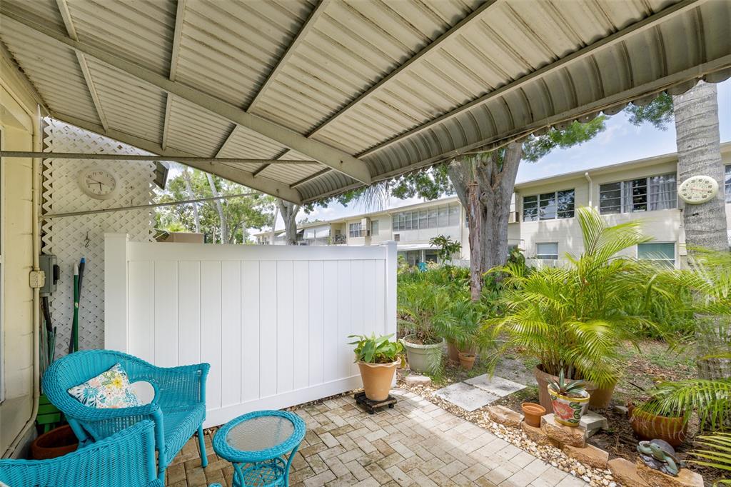 Finally—a home that checks all the boxes! this bright, ground-level end unit lives like a single-family home and is arguably one of the best one-bedroom options in the community: clean, stylishly updated, and move-in ready. sunlight pours in through newer windows on three sides, while mature landscaping provides both privacy and curb appeal. the fully renovated kitchen features granite countertops, a breakfast bar, full-size appliances, and modern finishes throughout. the updated bathroom includes a new walk-in shower with professional grab bars, a new vanity, toilet, and flooring. the florida room is heated, cooled, and cable-connected—perfect for relaxing or entertaining year-round. enjoy breezy, low-maintenance living with ceiling fans in every room, central ac, a screened front porch to greet the day, and a private paver patio out back, framed by privacy fencing and lush greenery. storage is abundant throughout, and your dedicated parking space is right outside the front door, with plenty of guest parking nearby. a shared laundry facility with four washers and dryers makes laundry day quick and convenient. located in a friendly, pet-welcoming 55+ community with some of the lowest hoa dues in the area, you’ll also appreciate the easy access to shopping, daily essentials, and florida’s iconic beaches. for added peace of mind, the building sits high and dry in flood zone x. offered fully furnished and fabulous—just as you see it!4154 56TH N #720, KENNETH CITY, FL 33709