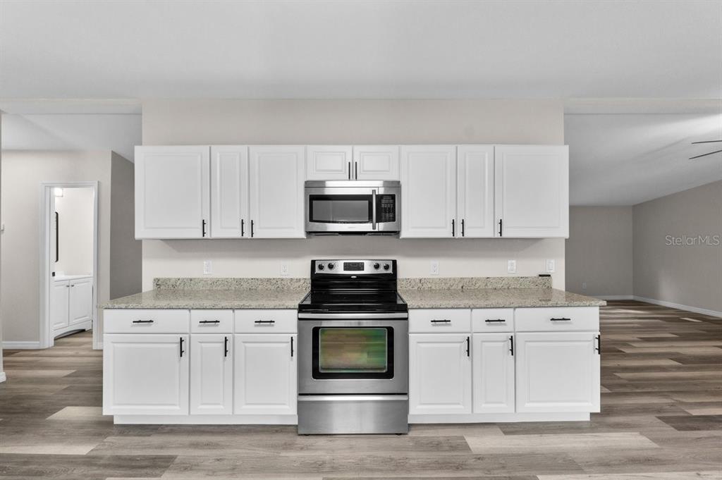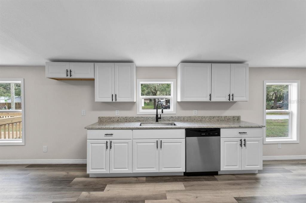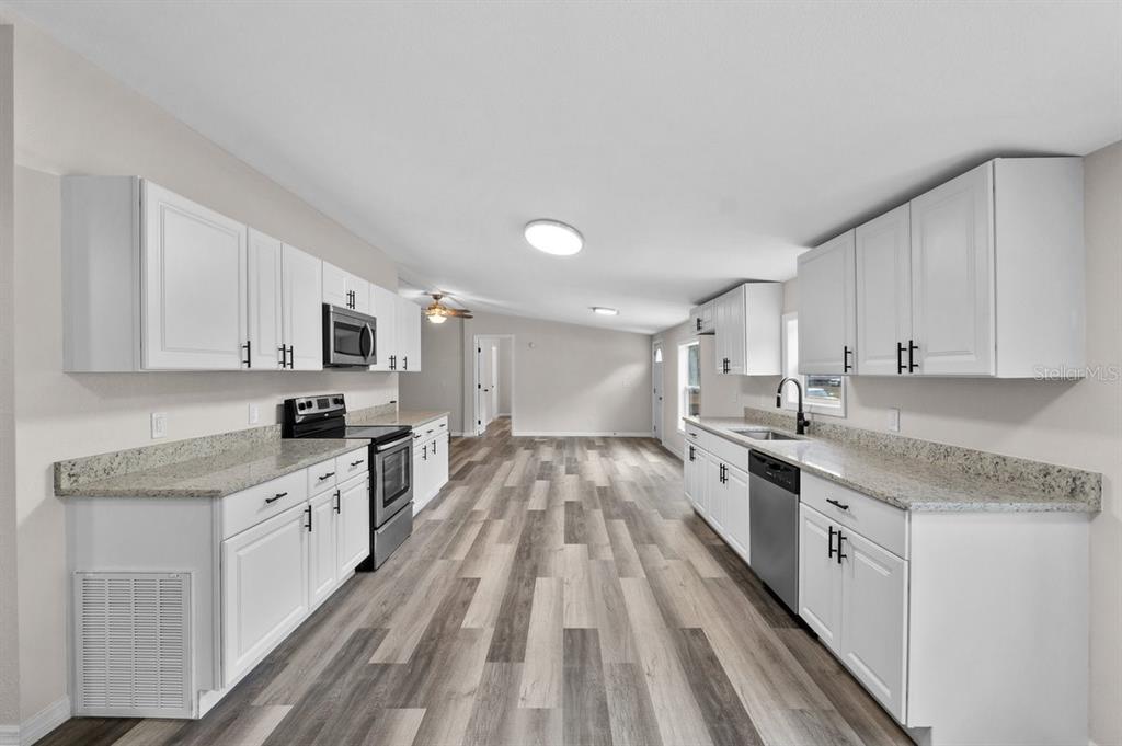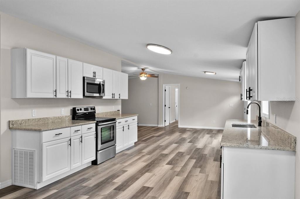 Beautifully remodeled 4-bedroom, 2-bathroom mobile home, located on a quiet cul-de-sac near the polk parkway with easy access to i-4. the home features a fully fenced yard for added privacy and security. recent upgrades include new siding, skirting, a metal roof, air conditioning unit, and a hot water tank. the property has been updated with new plumbing and flooring throughout, along with all-new doors and windows. the kitchen and bathrooms boast granite countertops, soft-closing cabinets and drawers, and a newer stainless steel appliance package. this move-in-ready home offers modern comforts and a prime location.419 GARRETT RDG, WINTER HAVEN, FL 33880