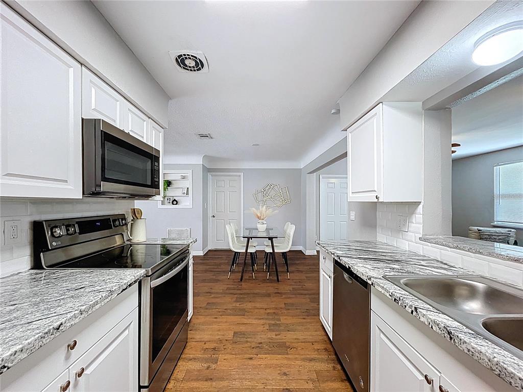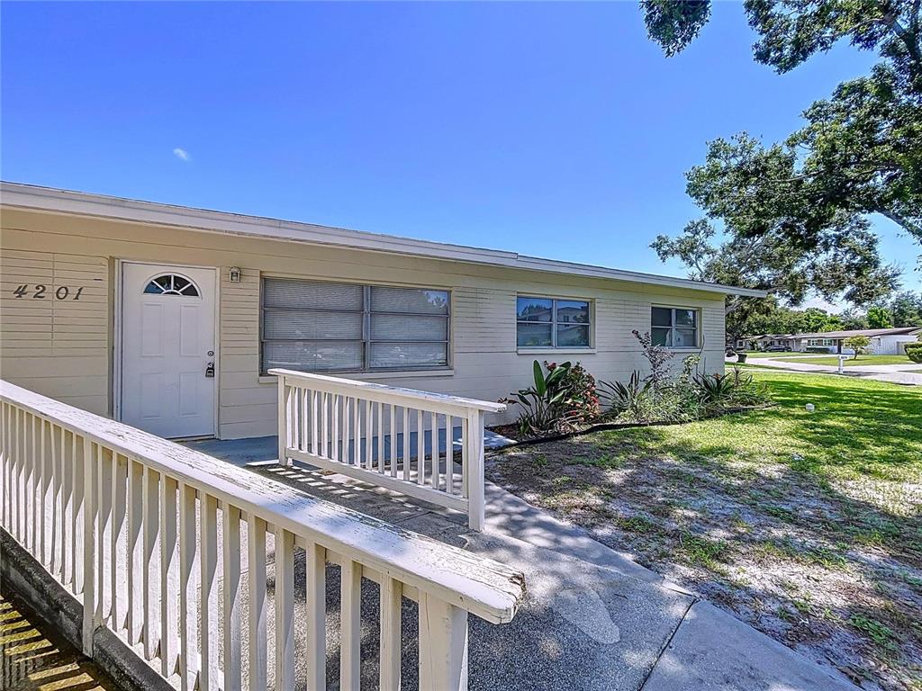 Classy mid-century jewel! welcome to this beautifully updated 3-bedroom, 2-bath, 1-car garage block home on a huge corner lot in the heart of st. petersburg. this mid-century classic seamlessly blends timeless character with modern style and thoughtful upgrades throughout. step inside to a light-filled layout featuring modern wood-look flooring, white wood cabinetry, dazzling granite countertops, and stainless steel appliances. the open design creates a seamless flow, perfect for everyday living and entertaining. enjoy peaceful mornings or cozy evenings on the spacious paver deck, overlooking a backyard retreat with no rear neighbors! major updates include: main roof (2021), flat roof (2021), hvac system (2021), hot water heater (2021), main sewer line replacement (2024). all renovations were completed in 2021. this home was not impacted by any flooding during last year's hurricanes and enjoys a fema zone x so no flood insurance required! prime location: situated in a quiet, established neighborhood with no hoa fees, this home offers close proximity to parks, shopping, dining, and is just minutes away from the gorgeous gulf beaches. enjoy the best of florida’s coastal lifestyle with easy access to sun and sand. don’t miss the opportunity to own this charming home that perfectly combines comfort and mid-century charm in an unbeatable location!4201 63RD N, KENNETH CITY, FL 33709
