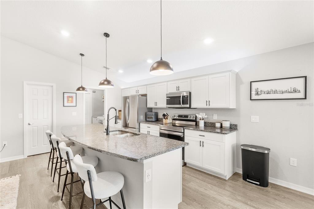 Welcome to this beautifully maintained 3-bedroom, 2-bath home in the heart of haines city, florida! built in 2021, this modern residence offers an open-concept layout with a stunning kitchen featuring an island perfect for entertaining. upgraded flooring flows throughout the home, adding a touch of elegance and comfort. step outside to enjoy the spacious screened-in lanai, ideal for relaxing florida evenings, and a custom backyard putting green—perfect for golf enthusiasts or just putting around with friends. this home combines style, comfort, and outdoor living in one fantastic package!4215 SWAN, HAINES CITY, FL 33844