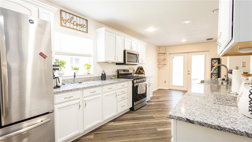 Huge price improvement!!! lowest priced pool home in arlington ridge!! seller is movtivated! you must come and check out this beautiful 2 bedroom, with additional bedroom/den/home office, and 2 bathroom stunning pool home located in beautiful south leesburg. this home is available for a quick sale and/or move-in and is situated on the 10th hole of the arlington ridge 55+ community. this residence features a new roof, new granite counter tops, and a large galley-style kitchen, with updated appliances, that flows into a generous great room. the primary suite offers ample space, tray ceilings, huge walk-in closet, and direct access to the pool. the extra rooms can be used as bedrooms and/or an office/den. step outside to find a tranquil retreat in the back of the home, complete with a large covered lanai and a new screened-in pool overlooking the 10th hole of the 18 hole course. this home has natural gas connected to the range, dryer hook-up, water heater, and heat pump. a great amenity that is not featured in all arlington ridge homes. new luxury vinyl floors, new carpet in bedrooms, and new granite counter tops with updated cabinets in the kitchen. enjoy a wealth of amenities within the community, including an 18-hole golf course, putting greens, driving range, and a friendly restaurant/tavern. there are two clubhouses which serve as the hubs for social activities, featuring two pools (lap pool and beach entrance pool), tennis and pickleball courts, craft room, movie theater, a state-of-the-art fitness center with various fitness classes, and onsite rv/boat storage. the hoa dues cover a wide range of conveniences, including high-speed fiber optic internet, cable, two cable boxes with dvr, and lawn maintenance, simplifying your lifestyle. located in south leesburg, you’ll have easy access to shopping centers and the villages. the community is secure with 24 hour manned security gate in the front entrance and a gated entrance in the back, plus the neighborhood is fully accessible by golf carts. it’s conveniently close to the florida turnpike, clermont, and just 45 miles from orlando, disney world, universal studios, and orlando international airport. additionally, a free boat ramp is only 10 minutes away, providing access to the expansive lake harris and its renowned bass fishing. we would love for you to take the opportunity to see this beautiful home and community!4245 ARLINGTON RDG, LEESBURG, FL 34748