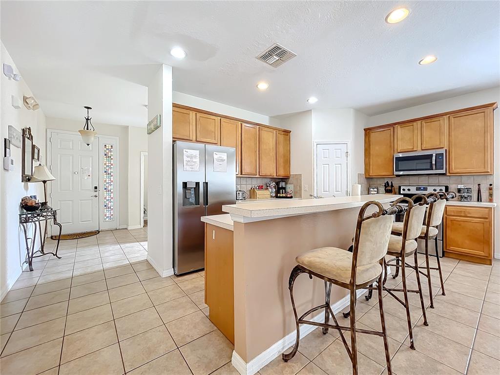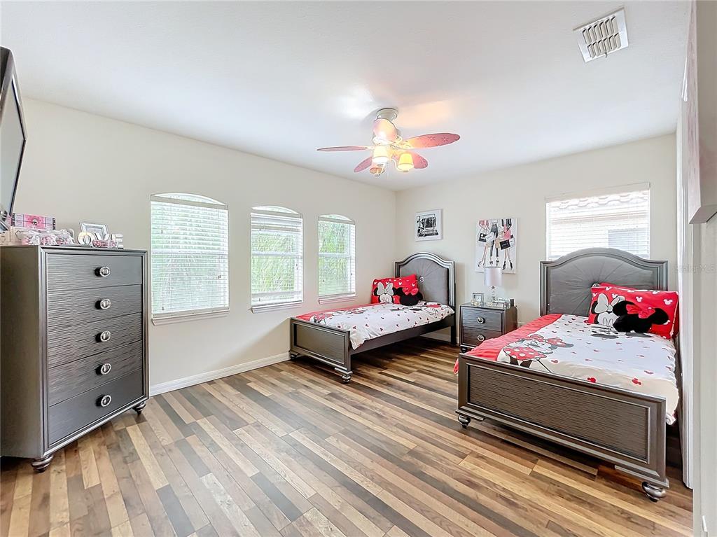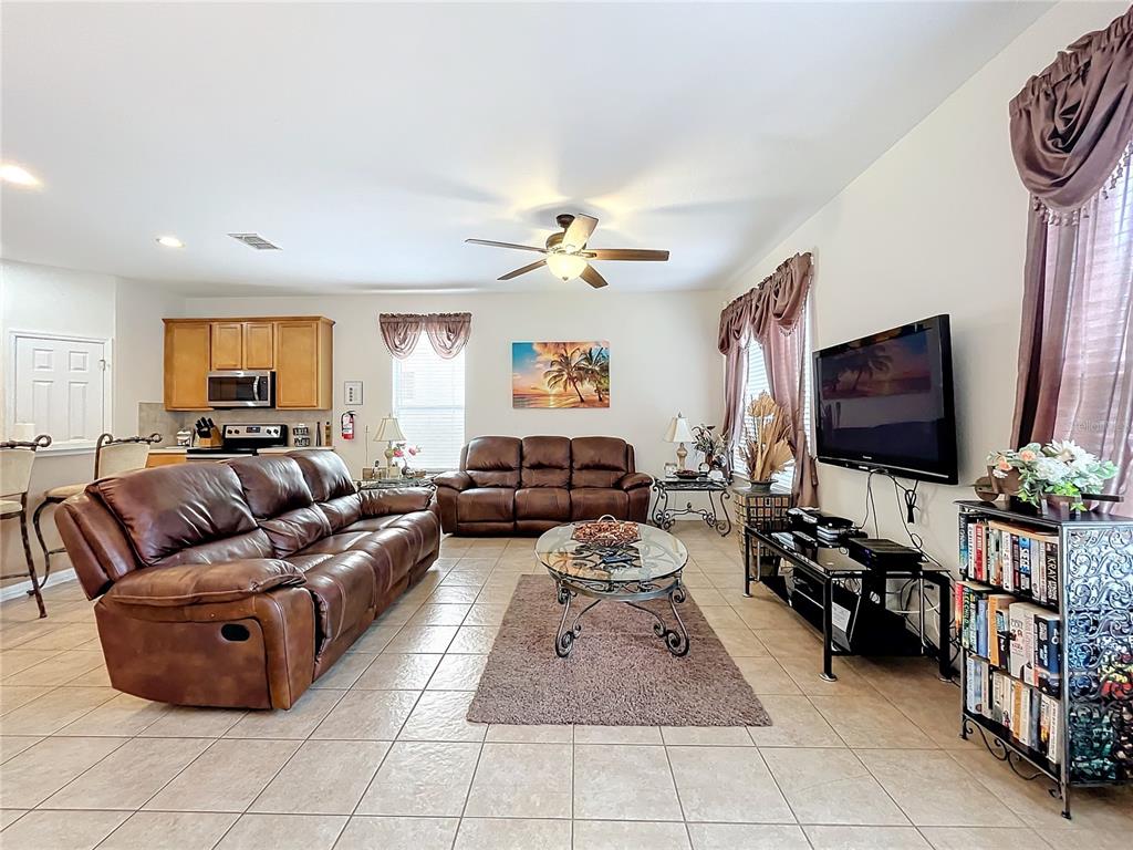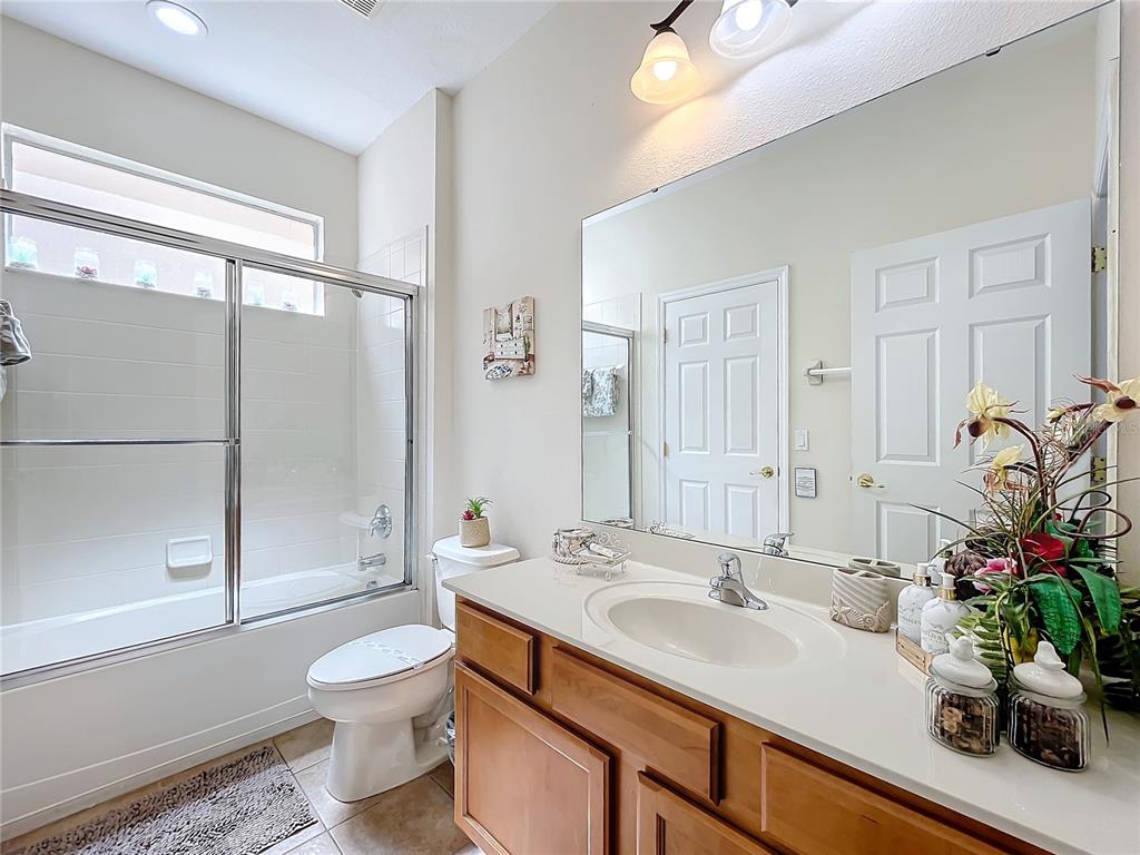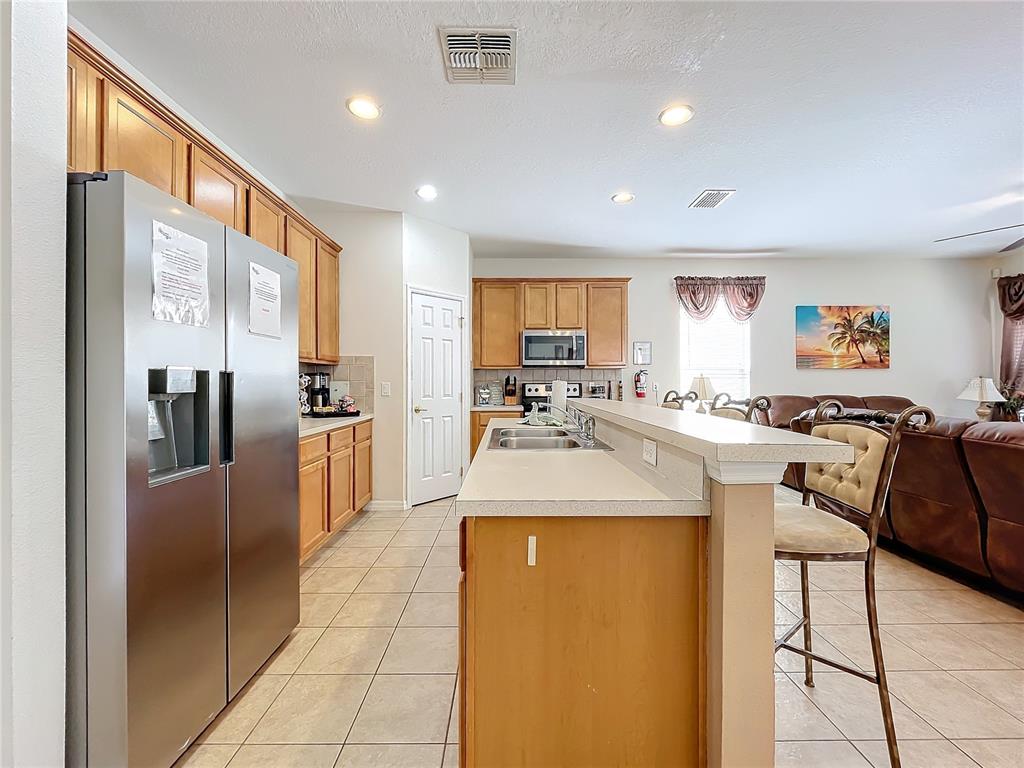 Experience the allure of florida living in this stunning home situated in the serene watersong neighborhood. enjoy the privacy of having no rear neighbors and a beautifully landscaped yard. this residence features a versatile garage transformed into an entertaining game room, complete with billiards, ping pong, and foosball tables. step inside to a bright, airy interior with elegant ceramic tile and laminate flooring throughout. the home boasts 4 spacious bedrooms, each with its own ensuite bathroom, ensuring maximum comfort and privacy. the master suite, located on the upper level, offers a luxurious retreat with dual vanity sinks and a generous walk-in closet. the gourmet kitchen is a chef’s dream, featuring stainless steel appliances, a breakfast bar, ample storage cabinets, and solid countertops. the open-concept living and dining areas create a welcoming space for gatherings. additional highlights include a versatile loft with a built-in desk, perfect for a home office. the community offers excellent amenities such as a clubhouse, fitness center, playground, pool, and racquetball court. with an a/c warranty until 2031, this home is perfect as a primary residence or investment opportunity in an outstanding location.426 ORANGE COSMOS, DAVENPORT, FL 33837