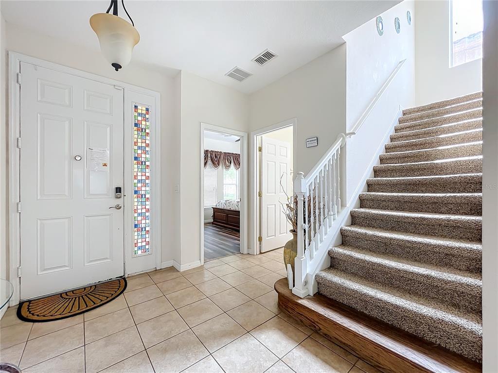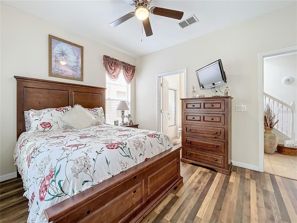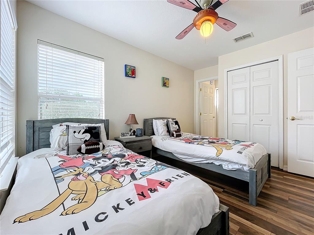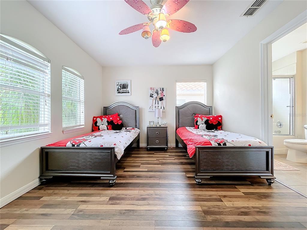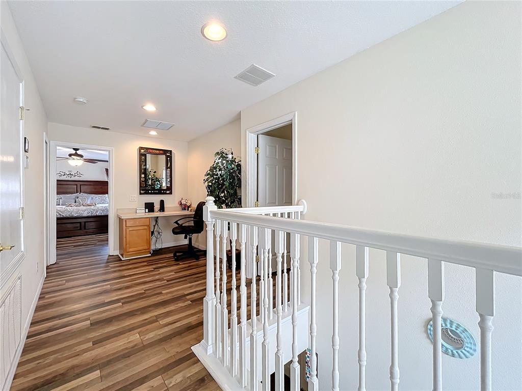Experience the allure of florida living in this stunning home situated in the serene watersong neighborhood. enjoy the privacy of having no rear neighbors and a beautifully landscaped yard. this residence features a versatile garage transformed into an entertaining game room, complete with billiards, ping pong, and foosball tables. step inside to a bright, airy interior with elegant ceramic tile and laminate flooring throughout. the home boasts 4 spacious bedrooms, each with its own ensuite bathroom, ensuring maximum comfort and privacy. the master suite, located on the upper level, offers a luxurious retreat with dual vanity sinks and a generous walk-in closet. the gourmet kitchen is a chef’s dream, featuring stainless steel appliances, a breakfast bar, ample storage cabinets, and solid countertops. the open-concept living and dining areas create a welcoming space for gatherings. additional highlights include a versatile loft with a built-in desk, perfect for a home office. the community offers excellent amenities such as a clubhouse, fitness center, playground, pool, and racquetball court. with an a/c warranty until 2031, this home is perfect as a primary residence or investment opportunity in an outstanding location.426 ORANGE COSMOS, DAVENPORT, FL 33837