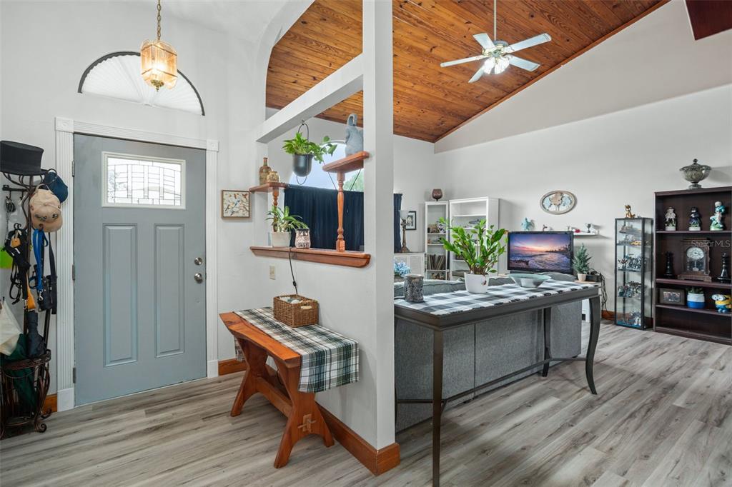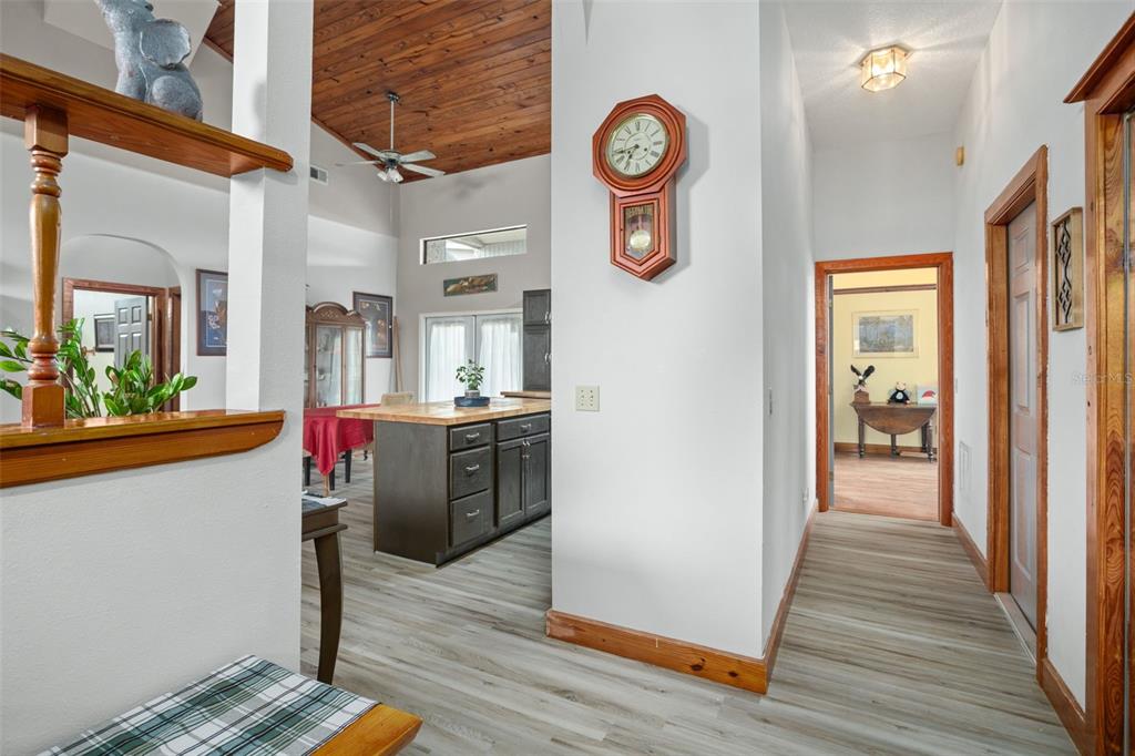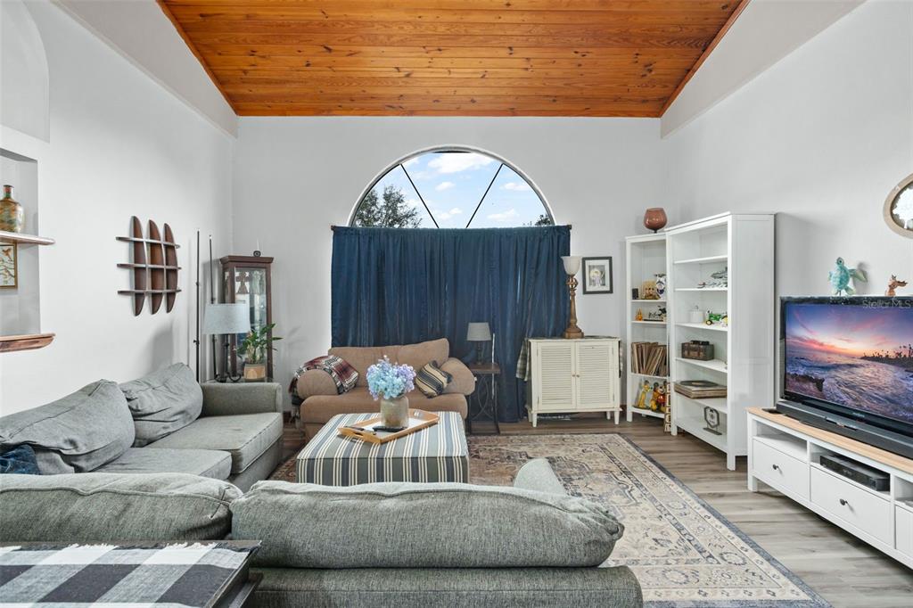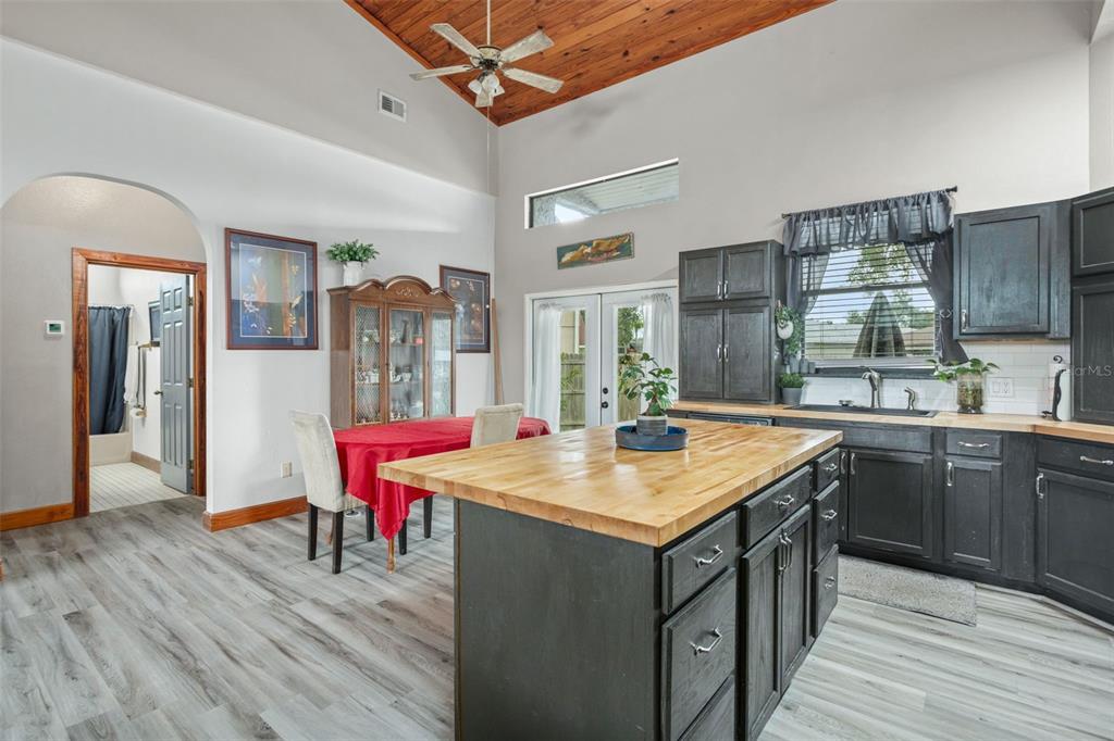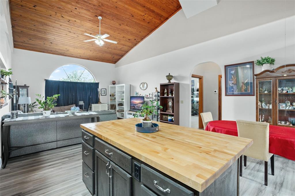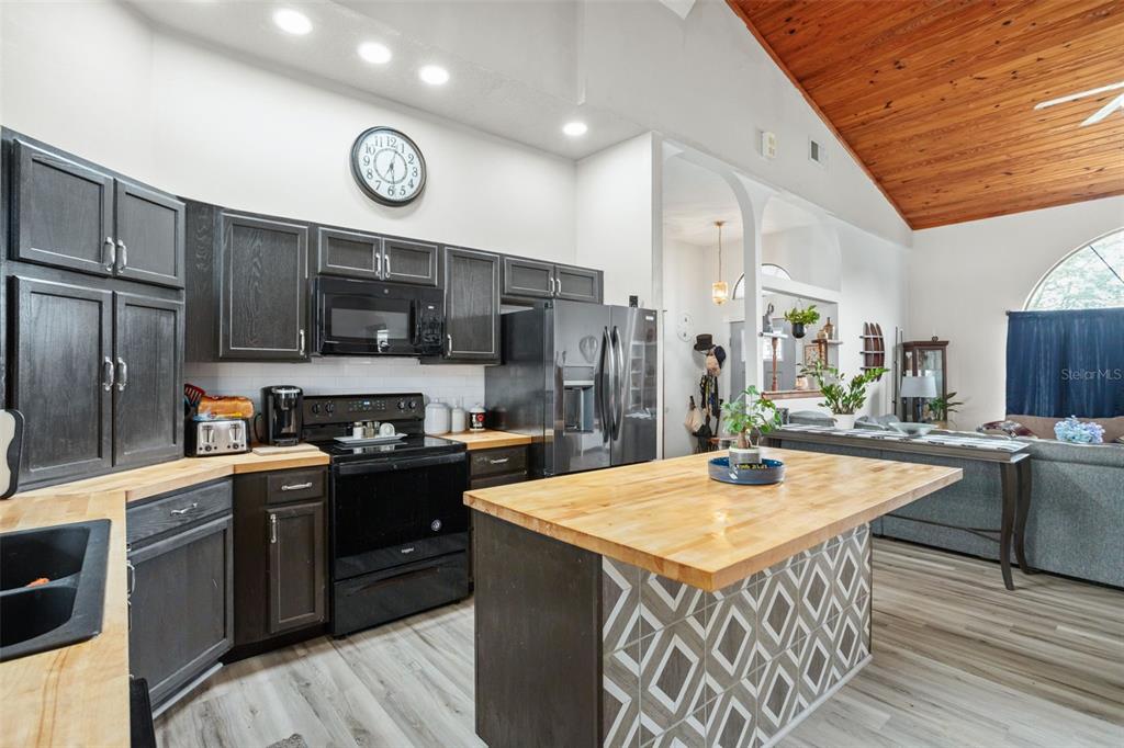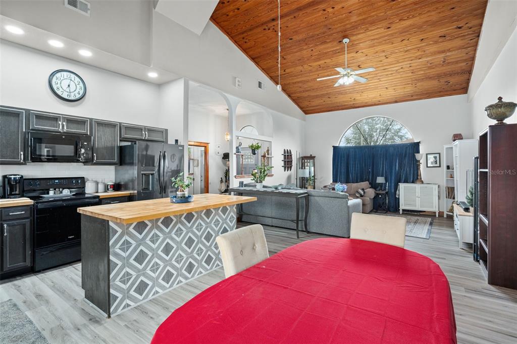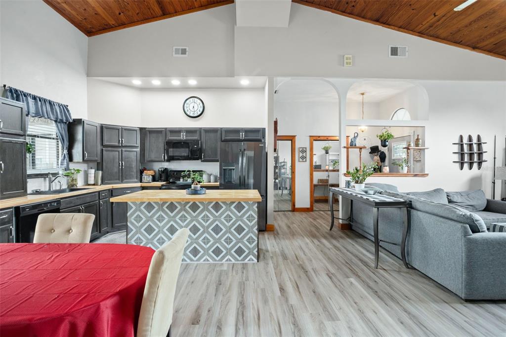 **this property qualifies for a closing cost credit up to $2,100 through the seller’s preferred lender.**welcome home to this 3-bedroom, 2-bathroom home located in the desirable poinciana villages community. as you make your way inside, you’ll find the beautiful open concept space with vinyl flooring throughout and handcrafted pine vaulted ceilings and trim. at the front of the home is the cozy living room with a beautiful arched window drawing in the natural light. as you look back, you’ll see the dining room and kitchen featuring dark cabinetry, butcher block countertops with a middle prep island. this split floorplan offers the primary bedroom on the right side of the home and the remaining 2 bedrooms and bathroom on the left. as you step out the french doors, you’re welcomed onto the covered porch overlooking your fully fenced green space out back. recent upgrades include the roof, ac, kitchen, and flooring being 2 years old. this property is located just minutes from public schools and a plethora of community amenities. the association of poinciana villages offers several parks & playgrounds, a fitness center, an aquatic center, and resort style pools. schedule your private showing today!430 MAGPIE, KISSIMMEE, FL 34759