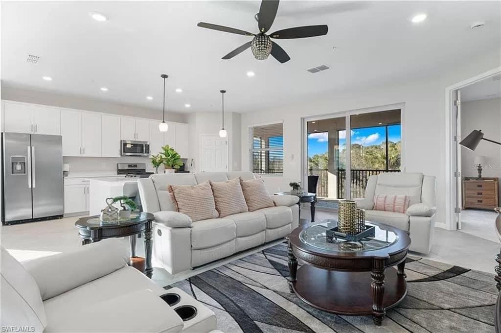 Welcome to the quiet, quaint, upscale, gated community of babcock ranch national golf club; part of america's "first solar town". located on the quietest, remotest, least-trafficked street, this most sought after, second-floor, nature preserve view home is the only one available of its kind with golf membership included! upon entering this 3 bed/2 bath home, you will notice the towering cathedral ceiling as you make your way up to the well-appointed, open space living, kitchen and dining area: perfect for entertaining friends and family while preparing a fabulous meal. it features natural gas appliances, a tankless water heater, an oversized, screened lanai overlooking the stunning, peaceful nature preserve, hurricane impact doors and windows with beautiful, quartz countertops. the owners have also installed beautiful fans and light fixtures in all rooms and painted the interior a light, refreshing, balboa mist using sherman williams' revolutionary, anti-mold, anti-bacterial technology paint. off the main room, also overlooking the preserve, you will find the large master suite with two, huge walk-in closets. the master bath comes with a generously large shower and separate his and her's vanities. all day and night, because of its preserve view, you will neither see, nor hear, the constant passing of golf carts and golfers, past your door, like your neighbors across the street. on the contrary, all you hear and see are the sights and sounds of every creature the preserve has to offer. truly magnificent tranquility. now the first-class amenities! the 7200 yard, incredibly maintained and manicured, championship golf course, exhibits six separate tees for every skill level golfer, including juniors. first class tennis and pickleball courts, an enormous pool, hot tub, men's and women's saunas in the beautifully-appointed locker rooms, a vast gym with all the latest technology equipment and separate room for yoga and zumba classes, an open-air tiki bar/restaurant and the classiest clubhouse with an upscale dining experience. finally, not to forget the first-class spa services and the small, private satellite pools scattered at the ends of nearly every street in the community. this place truly has it all. it is even renowned for being the only place that never lost power during hurricane ian. come find out why time magazine named our founder, syd kitson, "dreamer of the year 2023." babcock national golf club...truly one of a kind. home can be sold turn-key with separate sale.43317 WATER BIRD #5021, PUNTA GORDA, FL 33982