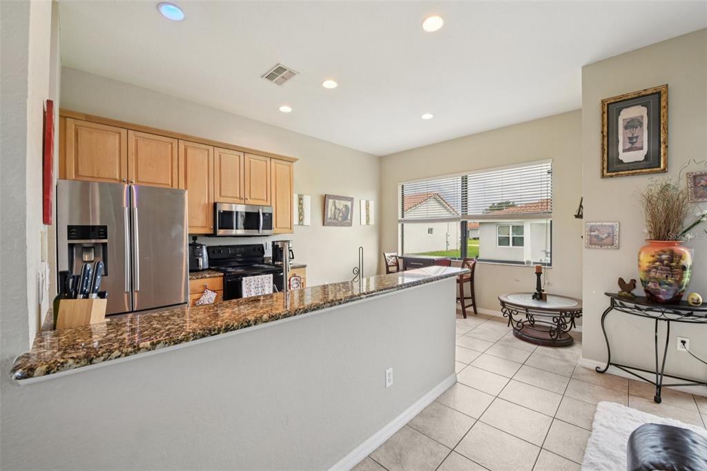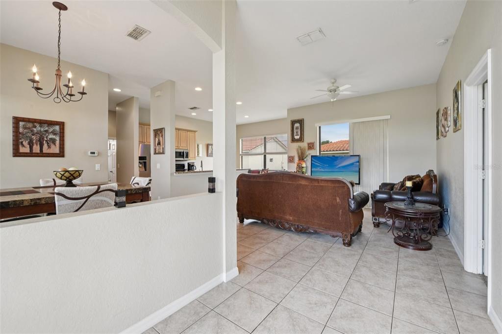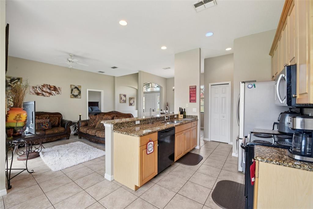 Split Bedroom Walk-In Closet(s)Ceiling Fan(s) Eating Space In Kitchen High Ceilings Living Room/Dining Room Combo Stone Counters Open Floorplan Window Treatments Primary Bedroom Main Floor Kitchen/Family Room ComboExterior Features: