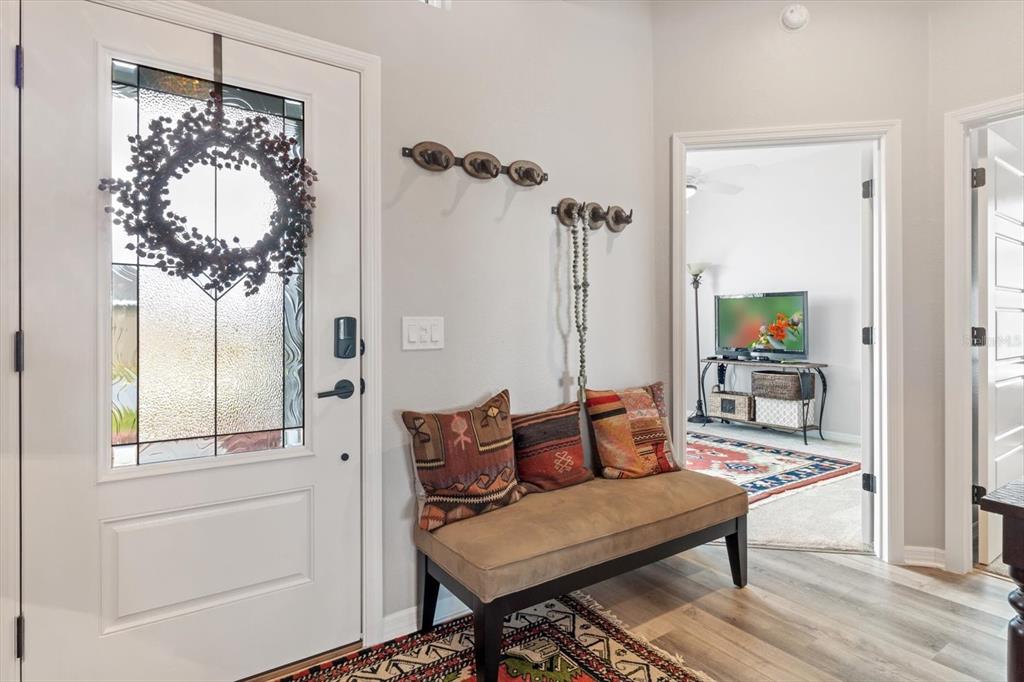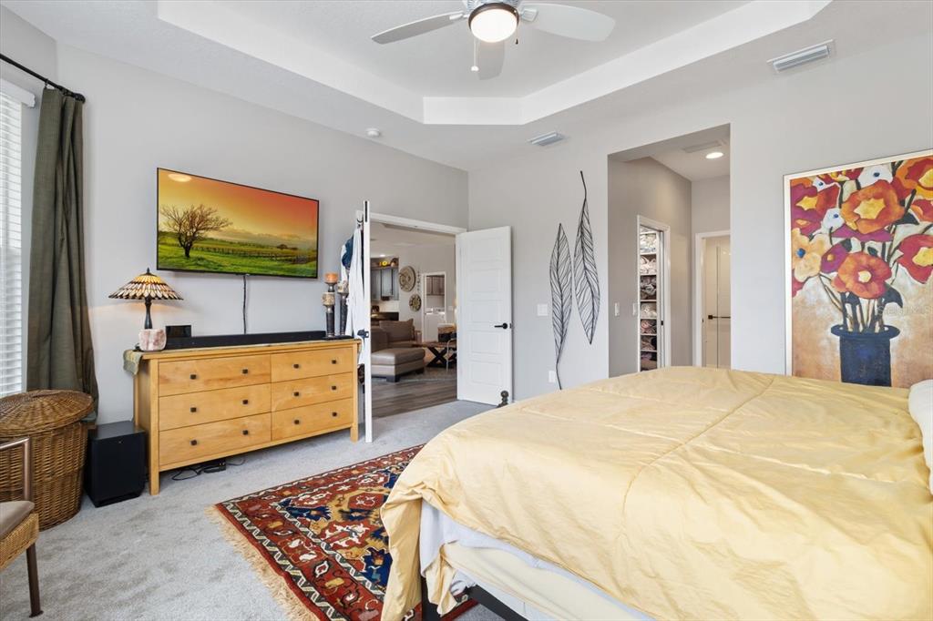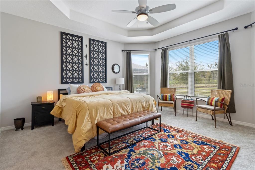 Split Bedroom Walk-In Closet(s)Ceiling Fan(s) High Ceilings Stone Counters Thermostat Open Floorplan Window Treatments Solid Surface Counters Solid Wood Cabinets Primary Bedroom Main Floor Tray Ceiling(s)Exterior Features: