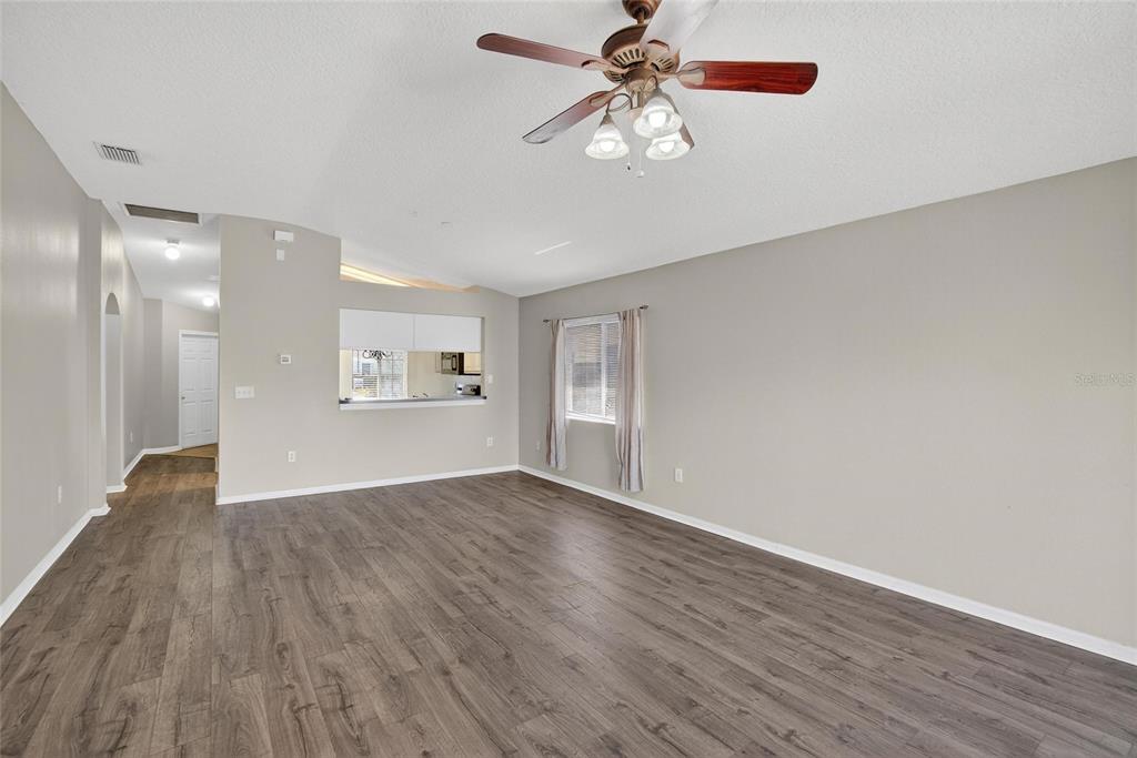 Ceiling Fan(s) Eating Space In Kitchen High Ceilings Living Room/Dining Room Combo Thermostat Open Floorplan Kitchen/Family Room Combo In Wall Pest SystemExterior Features: