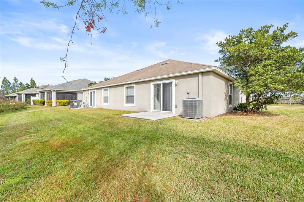 This stunning home is located in the highly desired area of wesley chapel. features laminate flooring in the main living area and hallway, brand-new carpet in bedrooms, and fresh paint throughout. a new roof is being installed and is expected to be completed before closing. as you arrive, take a moment to enjoy the ducks swimming in the pond across the street. this property is not in a flood zone and is ideally situated near the end of a cul-de-sac. designed with the entertainer in mind, this home boasts thoughtfully planned living spaces that emphasize functionality and charm. the entryway opens into a spacious kitchen and living/dining room combo, where abundant windows fill the space with natural light. the kitchen is centrally located in the heart of the home, making it the perfect place to prepare meals for intimate gatherings or larger crowds. it features stainless steel appliances, a breakfast bar, wood cabinets, and lovely granite countertops. the open living and dining area has sliding glass doors that lead to the backyard. the patio is ideal for a seating area or table, allowing you to enjoy the conservation area behind the home, ensuring you have no rear neighbors. you will find refuge in the peaceful master suite with an enormous walk-in closet. the additional bedrooms are spacious, bright, and airy, offering plenty of closet space. an evening walk around the community will surely feel like heaven on earth. enjoy a location close to all, including i-275, i-75, wiregrass mall, epperson lagoon, saddlebrook, tampa outlet mall, and so much more. the hoa covers essential services, including lawn maintenance and access to the community pool. make this beautiful and charming villa your home or rental investment today!Villa 3 bedrooms - ASHTON OAKS SUB for Sale