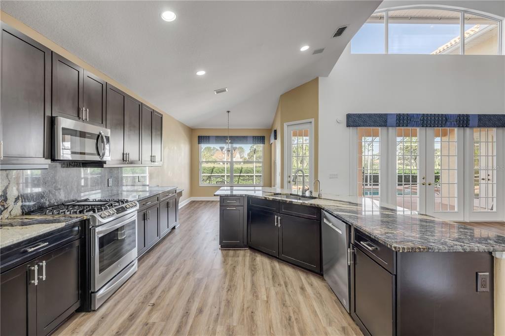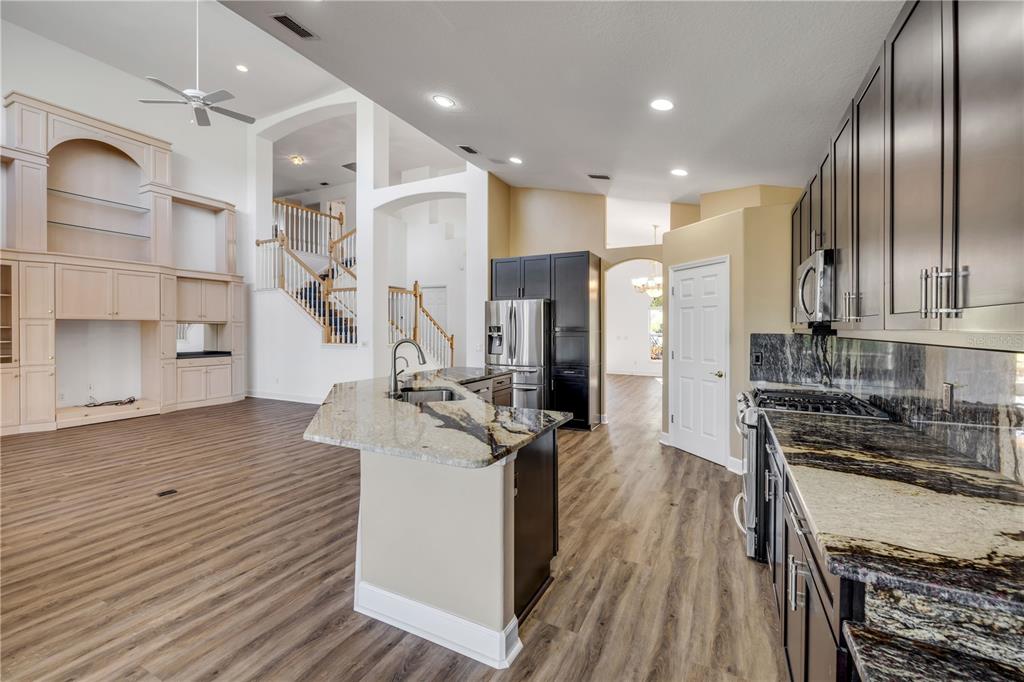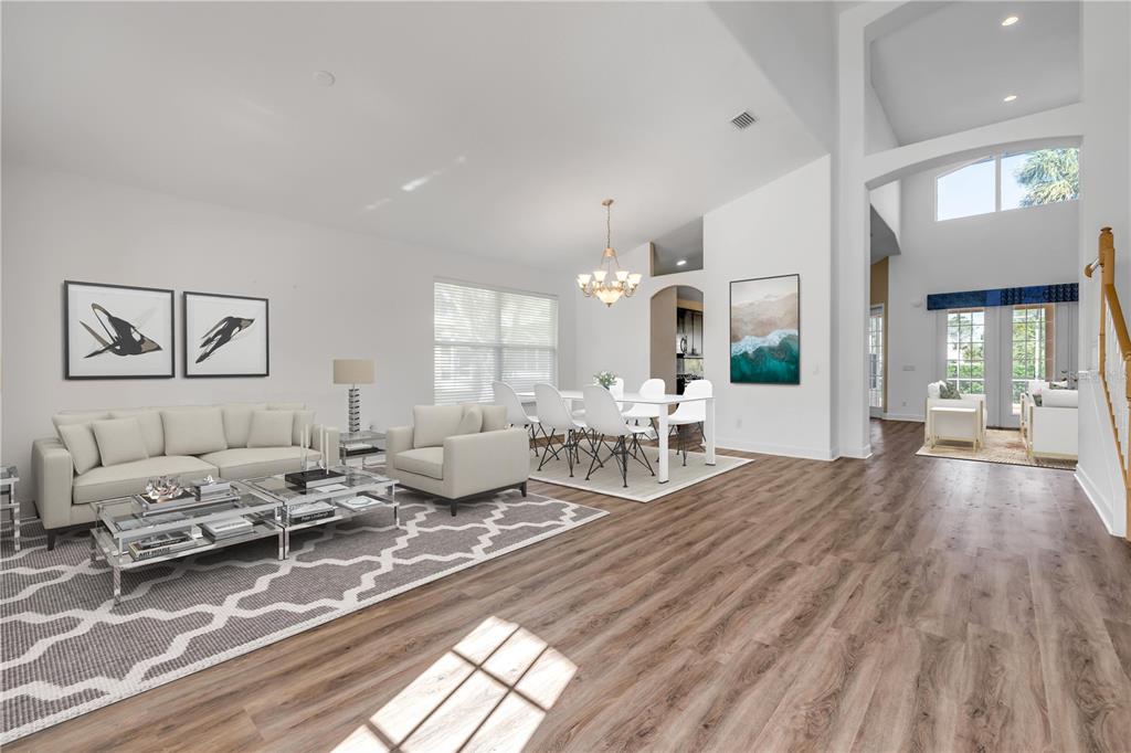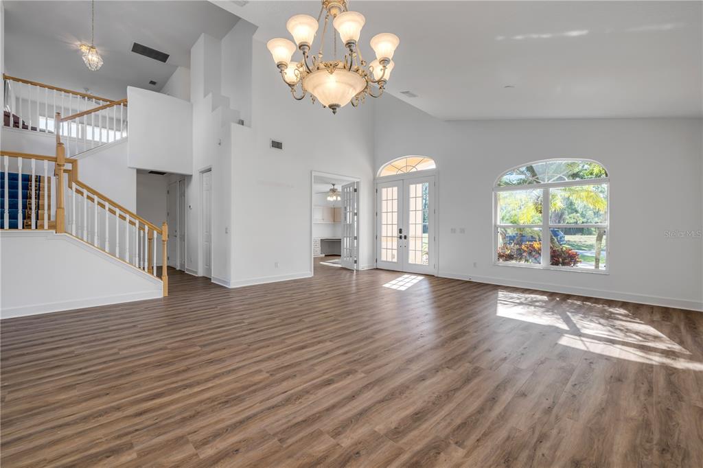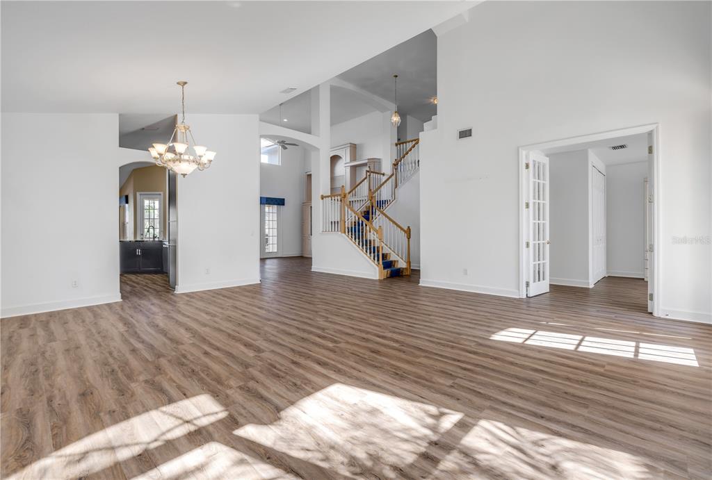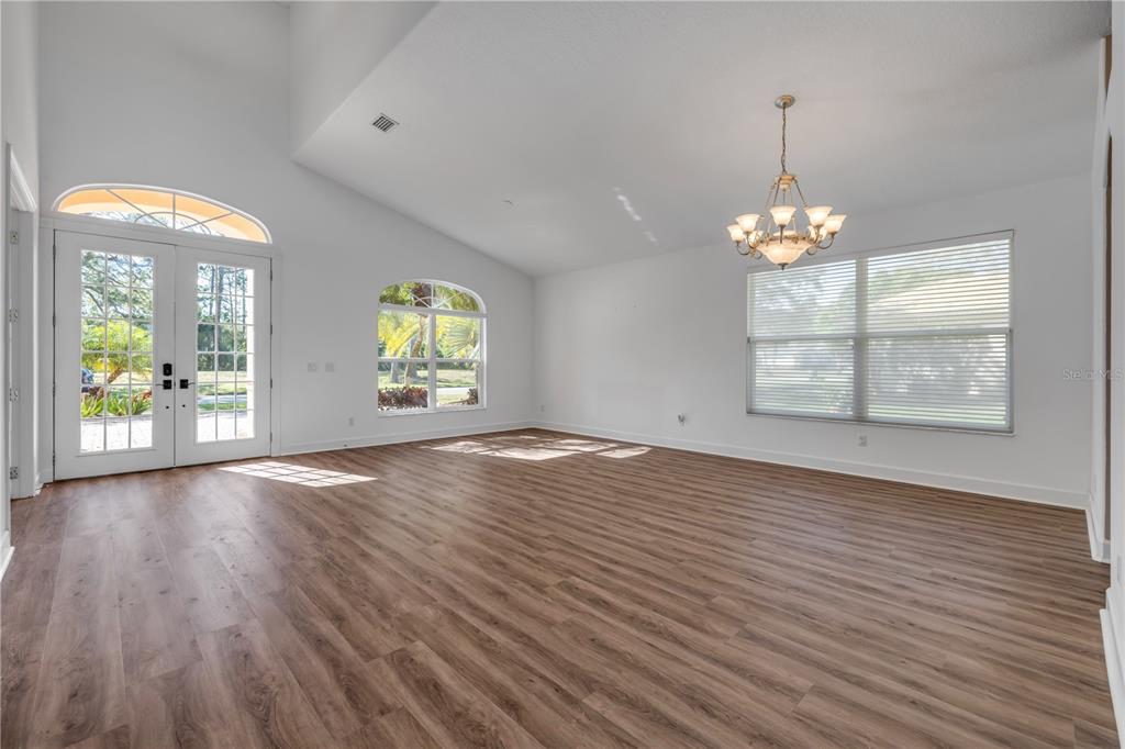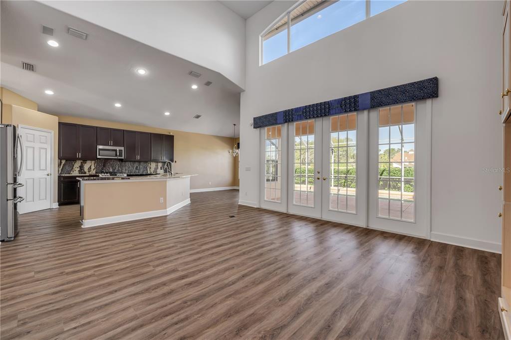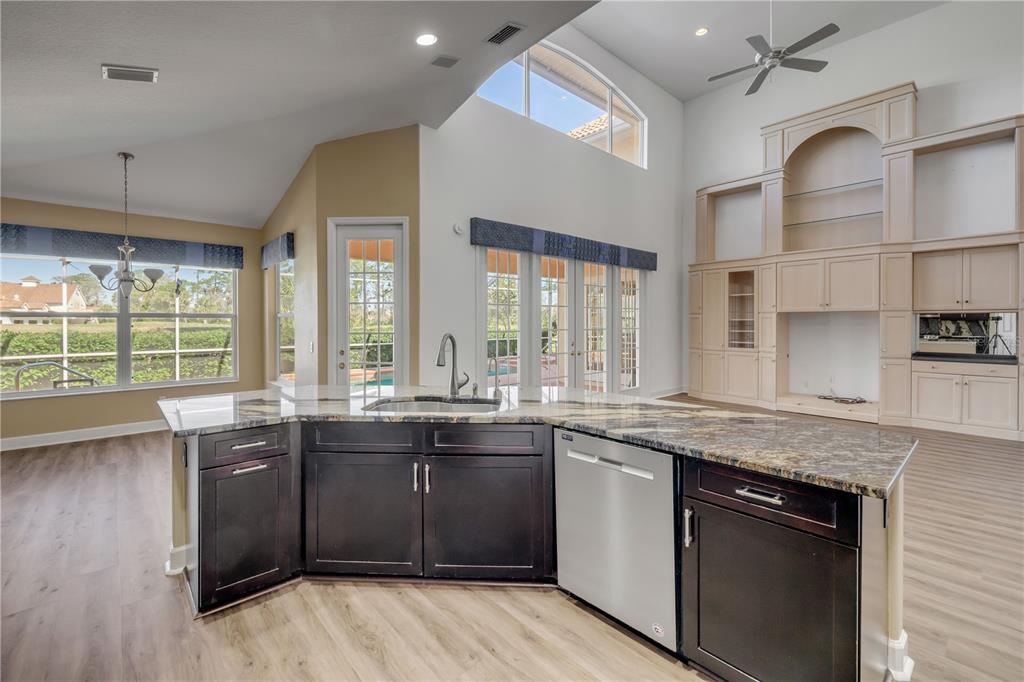 Split Bedroom Walk-In Closet(s)Ceiling Fan(s) Eating Space In Kitchen High Ceilings Living Room/Dining Room Combo Stone Counters Open Floorplan Primary Bedroom Main Floor Kitchen/Family Room ComboCathedral Ceiling(s)Exterior Features: