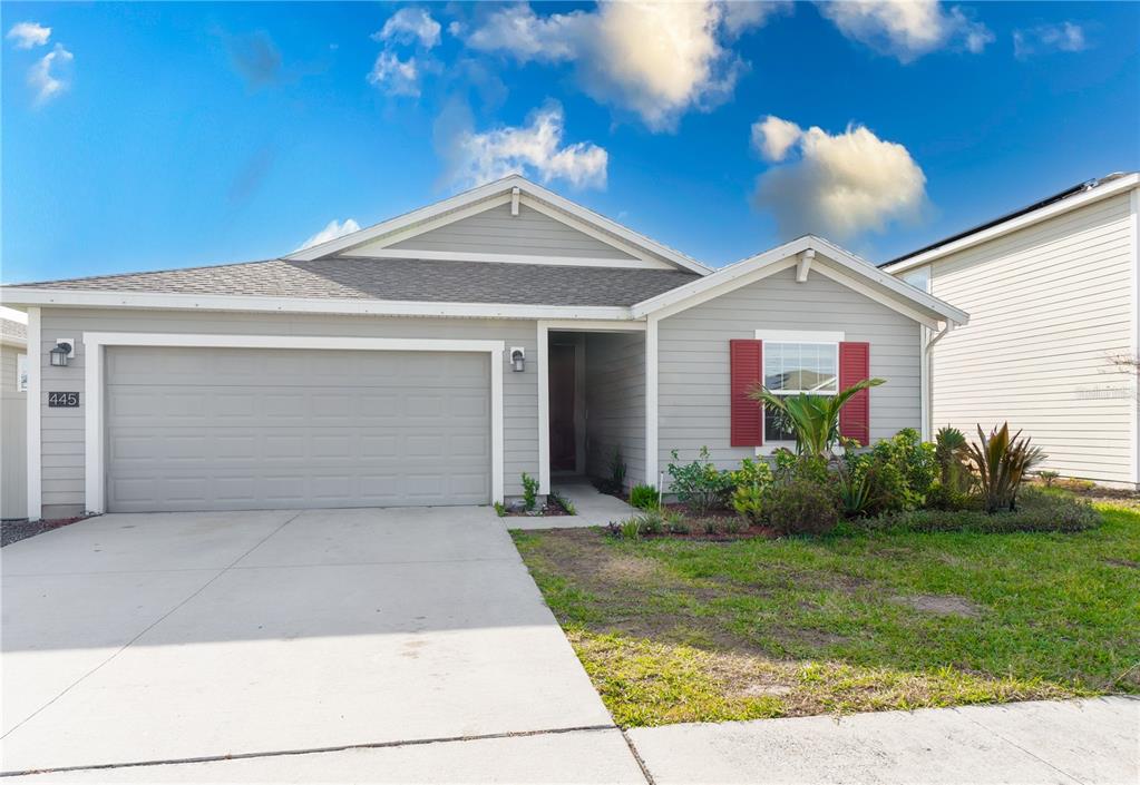 One or more photo(s) has been virtually staged. this upgraded home is located in a peaceful community with access to lake eva park’s pool, dog park, and dock. featuring a bright, open floor plan with high ceilings, natural light, and no carpet, the home offers ceramic tile flooring throughout. the kitchen includes an island, quartz countertops, and custom cabinetry. the primary suite boasts an en-suite bath and walk-in closet. enjoy a private, fenced backyard, a 2-car garage, solar panels, and a storage shed. conveniently located near major routes, disney, and local amenities. perfect for florida living!445 N ANDREA, HAINES CITY, FL 33844