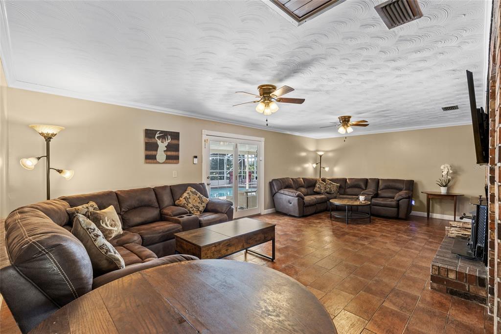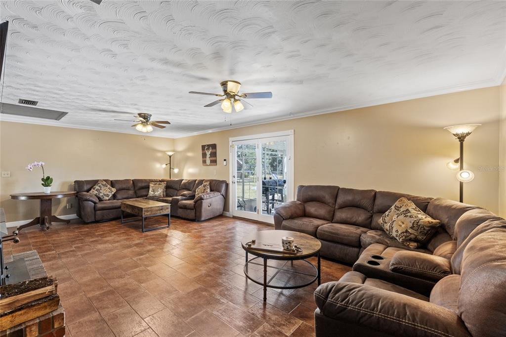 Welcome to this charming 4-bedroom, 3-bathroom brick ranch-style home nestled on over 2 picturesque acres in the peaceful rural setting of levy county. surrounded by hundreds of acres of farmland, this property offers the ultimate privacy and tranquility. the home features a metal roof, solid wood kitchen cabinets, and sleek stainless steel appliances, offering both style and function. adjacent to the kitchen is a large pantry/laundry room. beautiful wood-look tile flooring flows throughout the home, complementing its rustic charm. the spacious master suite with private entry includes a bonus room with pecky cypress walls—perfect for a home office, a craft room, or easily converted into a 5th bedroom. the oversized great room, complete with a wood-burning fireplace insert, is ideal for cozy evenings with family or friends. step out the french doors leading you to a large covered porch, perfect for dining alfresco or relaxing by the fully enclosed screened pool. all new outdoor furniture and even a brand new smoker grill will remain with the home and help you start relaxing the day you arrive! outside, you'll find two convenient pole barns for parking or additional storage, as well as a delightful little shed that could be transformed into a child's playhouse, potting shed, or even a charming chicken coop. towering granddaddy oaks create a serene backdrop for the property. whether you're enjoying the yard, swimming in the pool, or gathered around the firepit under a starlit sky, this completely fenced property offers a peaceful retreat. come home to the country--you will never want to leave!!!450 NW 140TH, TRENTON, FL 32693