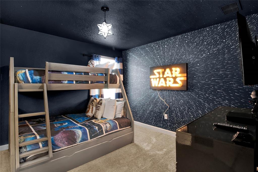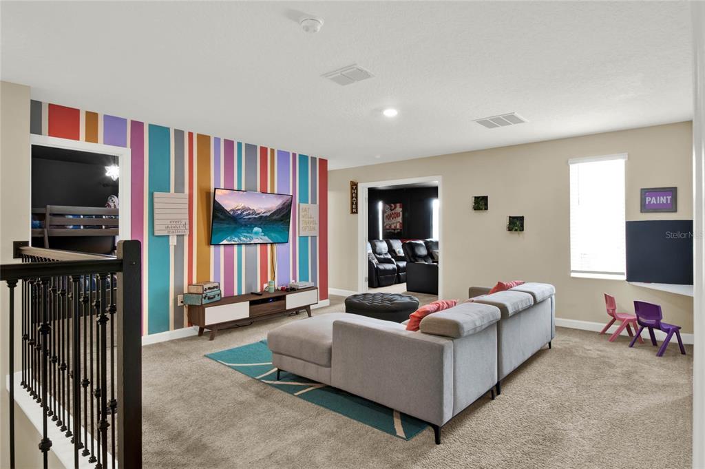 This exceptional 8-bedroom, 5-bathroom home in championsgate is truly one-of-a-kind, being one of the few properties that back onto a tranquil water view, providing a relaxing and scenic environment for both owners and guests. the owner has meticulously furnished and designed the home, creating a luxurious yet welcoming retreat. highlights include a marvel-themed, air-conditioned games room featuring a pool table, air hockey, and foosball, as well as a full-size theater room with tiered seating and 10 reclining theater seats – perfect for movie nights. themed bedrooms add an extra touch of magic, with a star wars bunk bed room, mickey mouse room, and toy story bunk room, making it an ideal attraction for vacationers seeking a memorable experience. as a top-performing home with a strong booking history, this spacious home offers the perfect blend of luxury and comfort, ideal for those seeking a primary residence, vacation getaway, or lucrative investment opportunity. as you step inside, you’re greeted by a bright and open floor plan, featuring a modern kitchen with stainless steel appliances, granite countertops, and a large center island, perfect for entertaining. the expansive living and dining areas flow seamlessly, making it easy to host family gatherings or unwind after a day of fun. the master suite, located on the main floor, offers a private oasis with a spa-like en-suite bathroom. the additional seven bedrooms provide ample space for family, guests, or even a home office, ensuring everyone has their own retreat. step outside to your private screened-in lanai, complete with a sparkling pool and spa, over looking the water, where you can relax and soak up the florida sunshine. located just minutes from world-class amenities, including the championsgate golf club, resort-style pools, water slides, fitness centers, and tennis courts, this property truly offers a resort lifestyle. plus, you’re only a short drive from disney world, shopping, dining, and entertainment. don’t miss the opportunity to own this exceptional 8-bedroom home in championsgate – the perfect place to create lasting memories or enjoy the ultimate investment property!453 OCEAN CRSE, CHAMPIONS GATE, FL 33896