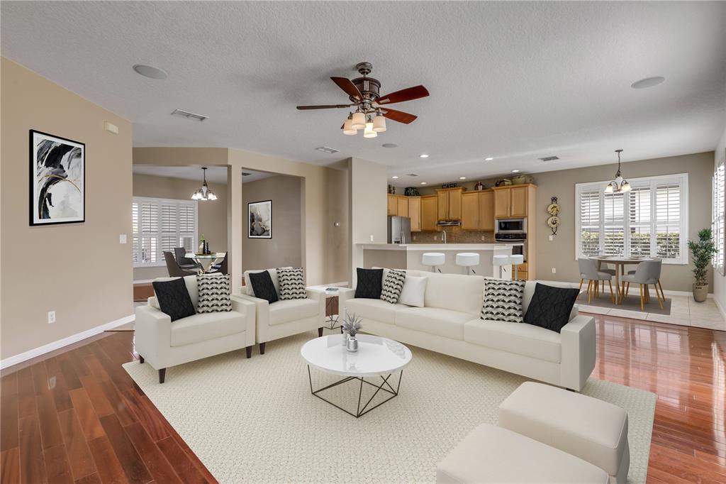 One or more photo(s) has been virtually staged. rare 5 bedroom 3 bathroom...in "the villas' an exclusive neighborhood nestled in venetian bay. one of few communities with a private pool. as you drive into the paver driveway, you will see the welcoming front porch with plenty of room for those relaxing evenings. this home is a perfect blend of comfort and convenience. the entire first floor is filled in natural light, from the bahama shuttered windows and giant sliders, leading to the spacious outdoor patio area ready for that cocktail party or bbq! a true chef's kitchen with a spacious bar top, for those early morning coffee breaks to late nite snacks. there is a more formal dining area off the main living room, with a flex space which could be a second family room, den, office or just add a closet and you have bedroom number 6! upstairs is where the very generous sized primary suite is located, which features an updated shower with dual vanities and a soaking tub. the 3 other bedrooms are just ready for kids or grandkids, and all those overnight guests. outside, the private backyard has room for a pool. or kids jungle-gym! bring your pets lots of room to play. venetian bay is located conveniently close to i-95 and i-4, head up airport road and you are just minutes from port orange......homegoods anyone??? also, the public golf course is a great way to work on that game, then stop in the pro shop to replace that bad putter, or stop in the clubhouse for a beer and a burger. also located in venetian bay is bistro 424, a world class "spa at venetian bay" with fabulous massages, facials and a whirlpool. all this and you are close to our gorgeous beaches with delicious dining, upscale to dairy queen...don't miss this home. it is going to sell fast at this reduced price!!!!!454 VENETIAN VILLA, NEW SMYRNA BEACH, FL 32168