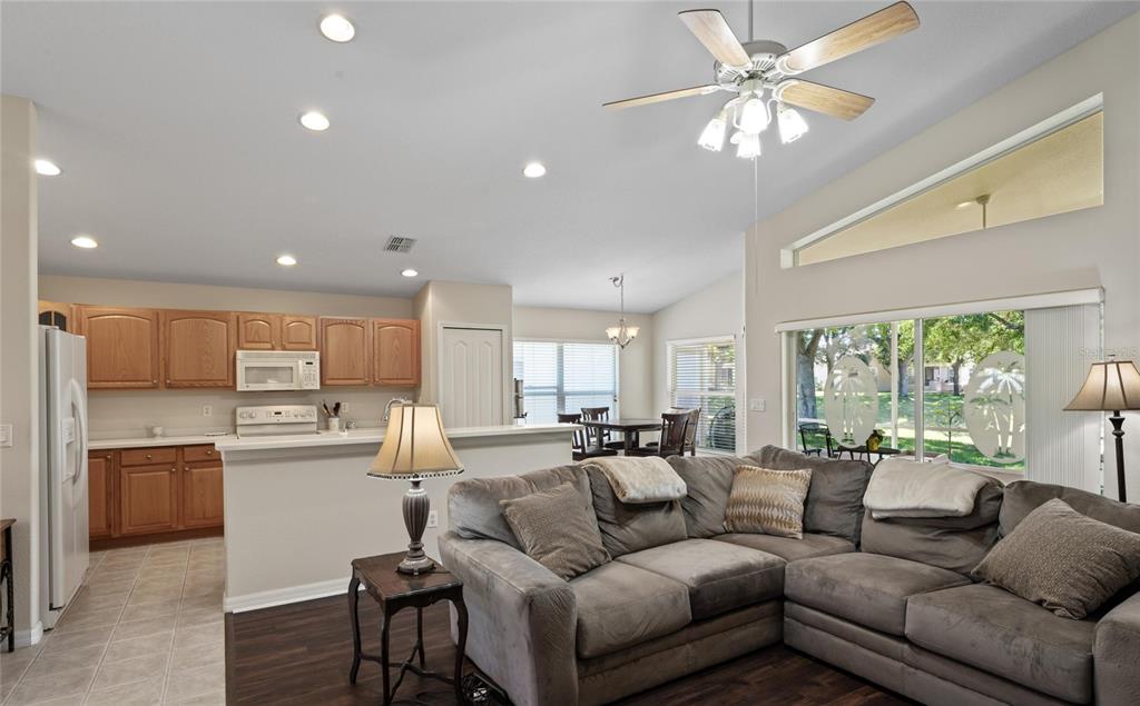 3/2/2 bluebird model located in the desirable wellington subdivision, a 55+ community, this home offers peace of mind with an elevation of 68 feet above sea level. positioned in a non-evacuation zone, the subdivision has a proven track record of safety—never flooded and never evacuated during storms. back on the market with new vinyl plank flooring replacing carpeted areas. great curb appeal, nicely landscaped, freshly painted in 23 and due for a new roof at hoa expense upon sale, fully guttered, upgraded storm door and wired for a generator, this home backs up to a tree lined peaceful green space for owners' enjoyment. the bluebird model is most popular and features open living spaces, formal living and dining up front and informal family, kitchen, breakfast bar and nook, with lanai access in the rear. the front formal space is currently used as a studio by the artist owner and a few virtually staged photos have been provided so buyers can see the spaces full potential. the master suite has a walk-in closet, separate garden tub and shower and a double vanity. there are two guest bedrooms and a full guest bath. the attached two car garage is screened and contains a water softener. come see this fabulous listing and stunning community with beautifully landscaped streets, 24-hour manned security gatehouse, year-round heated community pool, bar & grill, tennis and pickleball courts, billiard room, library and computer center, bocce courts and too many social events to mention. come and enjoy the wellington lifestyle.456 GREENWICH, SPRING HILL, FL 34609