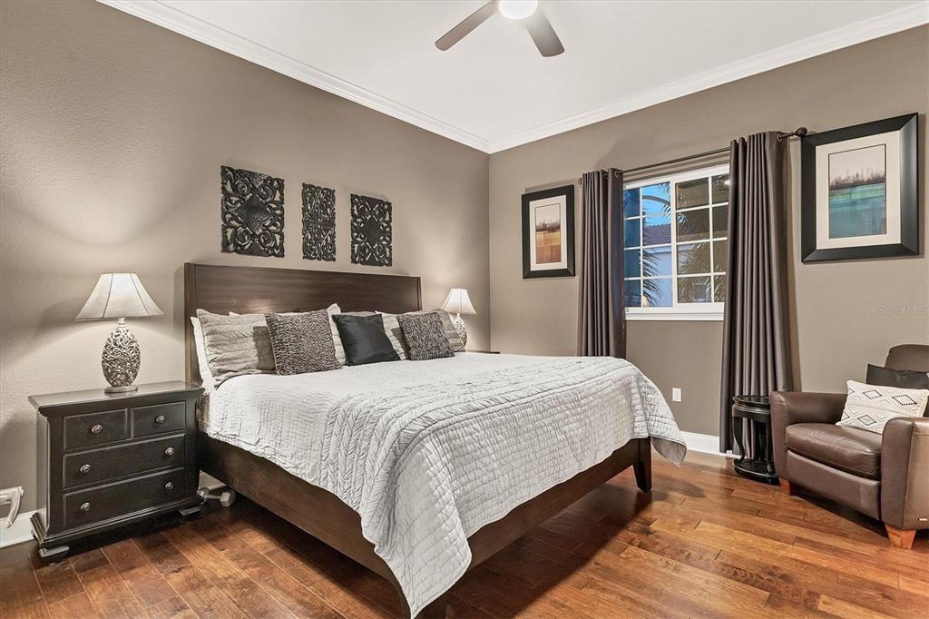 Walk-In Closet(s)Ceiling Fan(s) High Ceilings Living Room/Dining Room Combo Stone Counters Thermostat Open Floorplan Window TreatmentsCrown Molding PrimaryBedroom UpstairsExterior Features:
