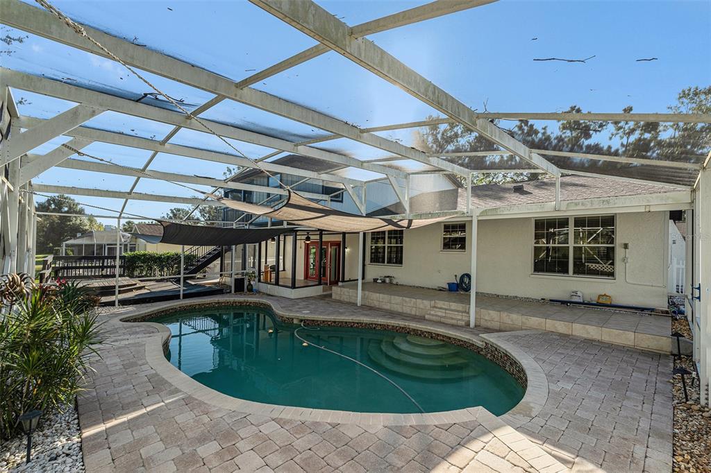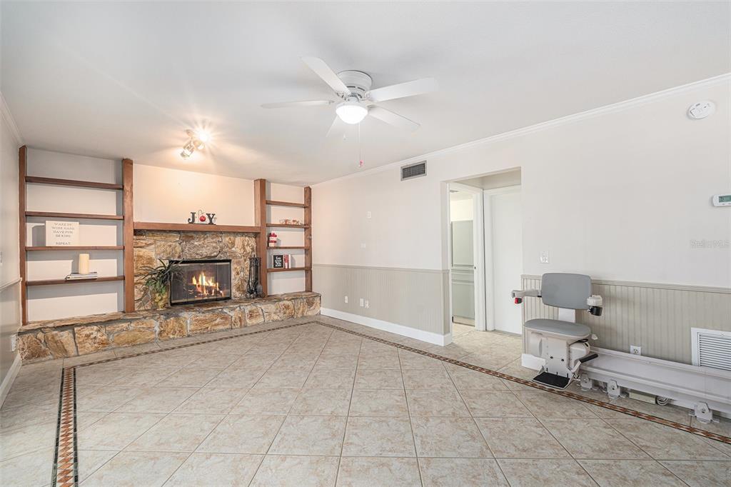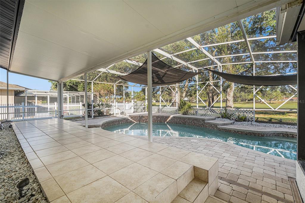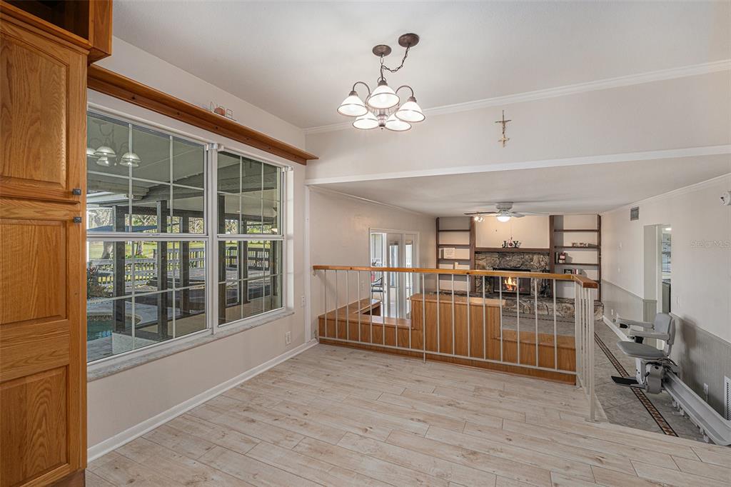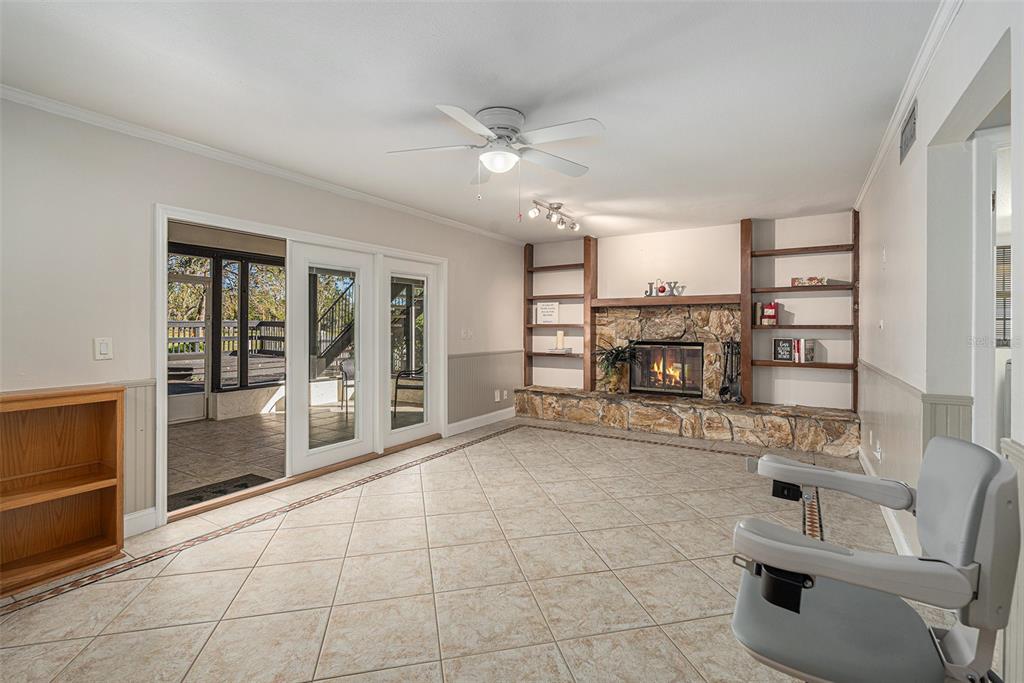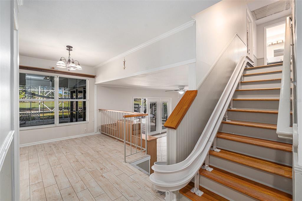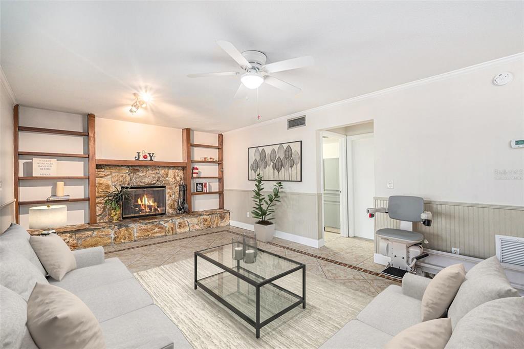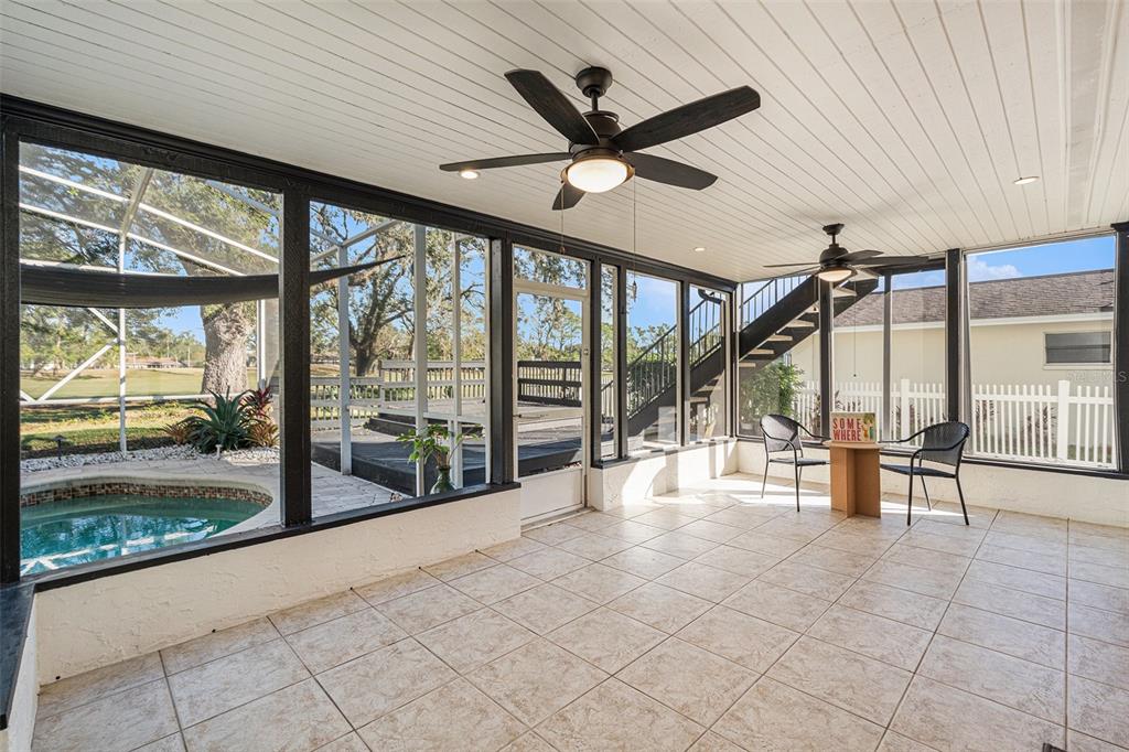 One or more photo(s) has been virtually staged. discover the perfect blend of comfort, style, and convenience in this stunning 3-bedroom, 2.5-bath pool home with an oversized 2-car garage, nestled on a peaceful street in northdale. offering breathtaking views of the 10th and 18th fairways at northdale golf & tennis club, this home is a serene retreat with exceptional updates and thoughtful design. the main floor features elegant porcelain wood-look tile flooring that seamlessly connects the living, kitchen, and dining spaces. the spacious family room, with its wood-burning stone fireplace, built-in shelving, and custom cabinetry, is a cozy centerpiece for gatherings. the well-appointed kitchen includes custom wood cabinetry, sleek corian countertops, and a travertine backsplash that exudes modern charm. a convenient half bath and a utility room with ample storage, washer/dryer hookups, and a utility sink complete the first floor. upstairs, the primary suite is a true sanctuary, offering engineered hardwood flooring, a private a/c unit, and a cedar-lined walk-in closet with a granite-topped island dresser. the spa-inspired en-suite bathroom boasts a travertine shower with multiple jets, a bench, and custom granite-topped cabinetry. enjoy peaceful mornings or unwind at sunset on the private covered balcony overlooking the golf course, complete with stair access to the backyard. two additional bedrooms and a full bathroom provide comfortable accommodations for family or guests. the outdoor space is designed for relaxation and entertaining, featuring a screened-in pool with a paver deck, a step-up wooden deck, and a covered lanai with ceiling fans. the fully fenced side yard, complete with doggie doors, is perfect for pets. additional updates include an irrigation system and 2014 roof and a/c replacements. for added convenience, the home includes a long ramp at the front door for accessibility. a bruno chair lift on the staircase ensures easy access between floors, making this home completely accessible. located in the heart of northdale, this home is close to shopping, dining, and recreation. move in and start enjoying the lifestyle you deserve!4611 LANDSCAPE, TAMPA, FL 33624