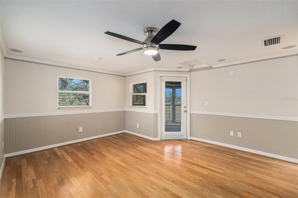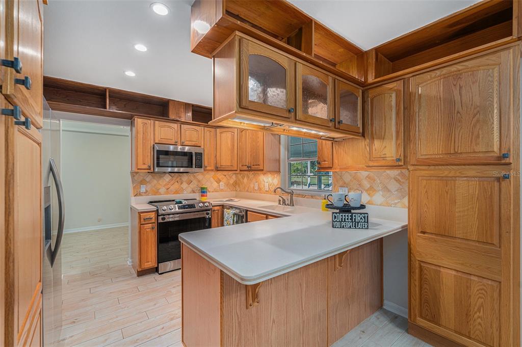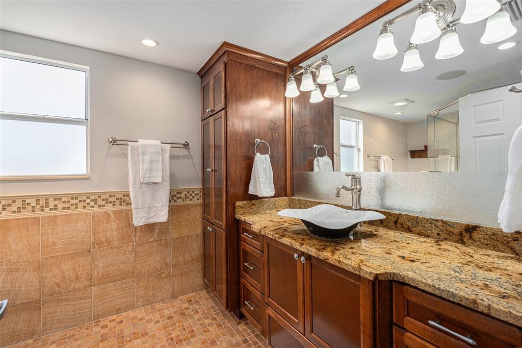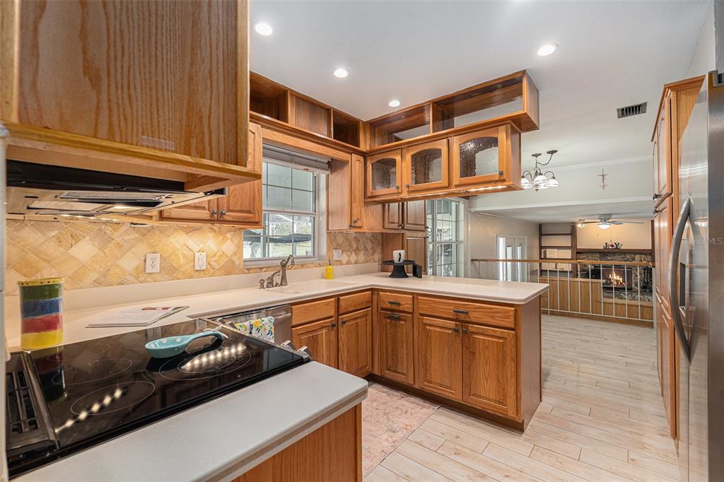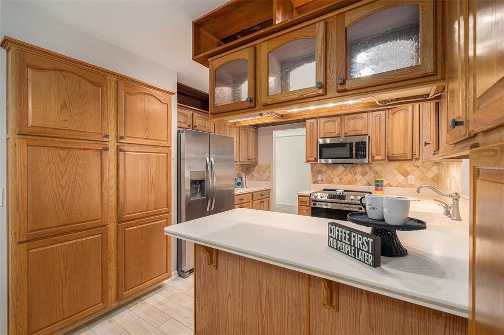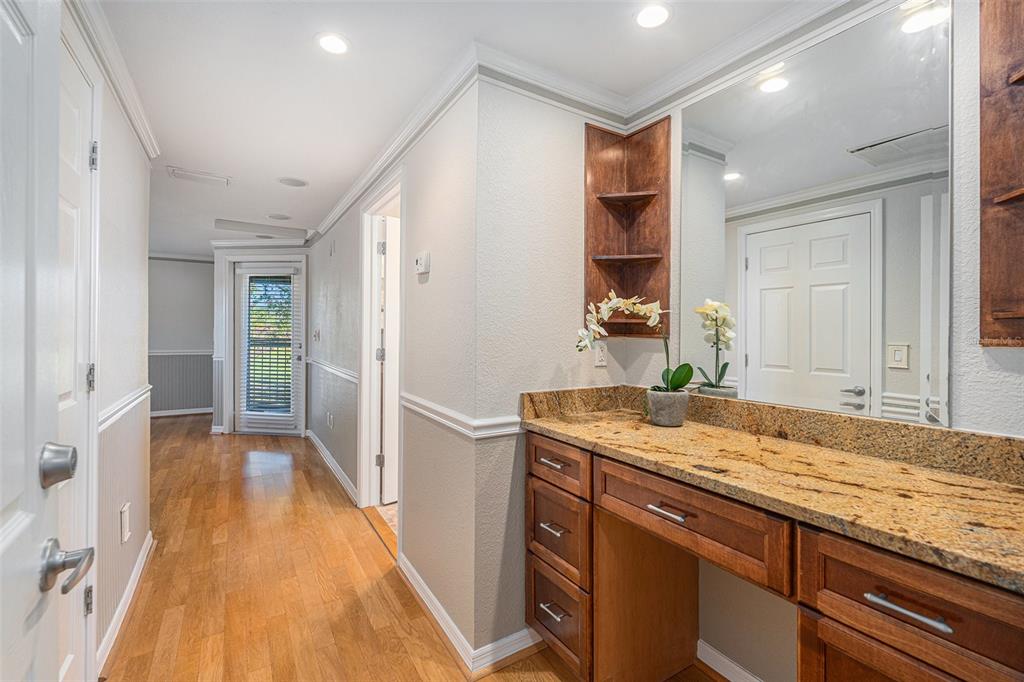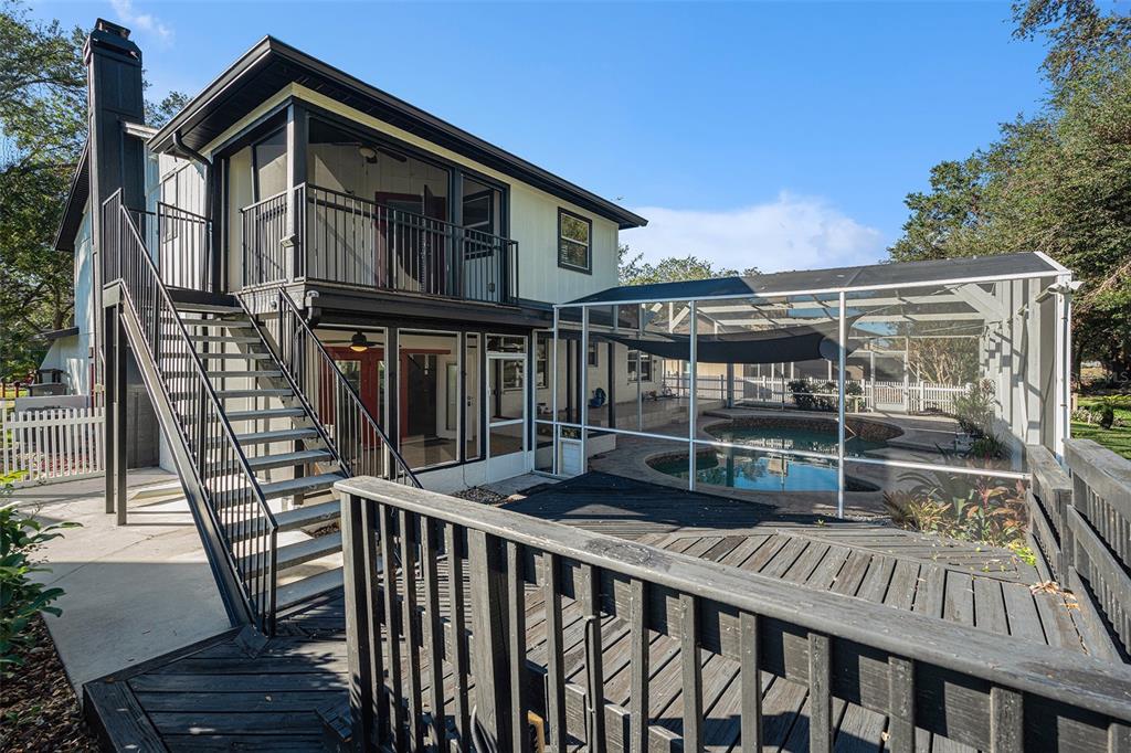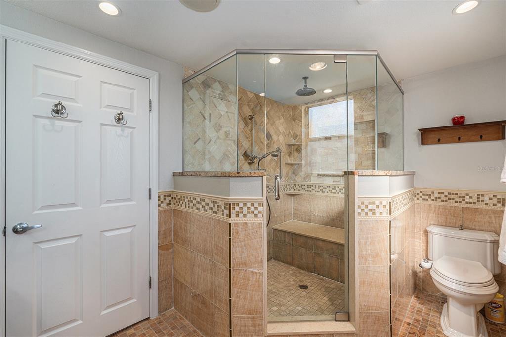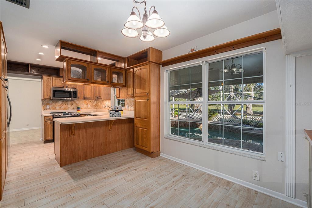 One or more photo(s) has been virtually staged. discover the perfect blend of comfort, style, and convenience in this stunning 3-bedroom, 2.5-bath pool home with an oversized 2-car garage, nestled on a peaceful street in northdale. offering breathtaking views of the 10th and 18th fairways at northdale golf & tennis club, this home is a serene retreat with exceptional updates and thoughtful design. the main floor features elegant porcelain wood-look tile flooring that seamlessly connects the living, kitchen, and dining spaces. the spacious family room, with its wood-burning stone fireplace, built-in shelving, and custom cabinetry, is a cozy centerpiece for gatherings. the well-appointed kitchen includes custom wood cabinetry, sleek corian countertops, and a travertine backsplash that exudes modern charm. a convenient half bath and a utility room with ample storage, washer/dryer hookups, and a utility sink complete the first floor. upstairs, the primary suite is a true sanctuary, offering engineered hardwood flooring, a private a/c unit, and a cedar-lined walk-in closet with a granite-topped island dresser. the spa-inspired en-suite bathroom boasts a travertine shower with multiple jets, a bench, and custom granite-topped cabinetry. enjoy peaceful mornings or unwind at sunset on the private covered balcony overlooking the golf course, complete with stair access to the backyard. two additional bedrooms and a full bathroom provide comfortable accommodations for family or guests. the outdoor space is designed for relaxation and entertaining, featuring a screened-in pool with a paver deck, a step-up wooden deck, and a covered lanai with ceiling fans. the fully fenced side yard, complete with doggie doors, is perfect for pets. additional updates include an irrigation system and 2014 roof and a/c replacements. for added convenience, the home includes a long ramp at the front door for accessibility. a bruno chair lift on the staircase ensures easy access between floors, making this home completely accessible. located in the heart of northdale, this home is close to shopping, dining, and recreation. move in and start enjoying the lifestyle you deserve!4611 LANDSCAPE, TAMPA, FL 33624