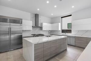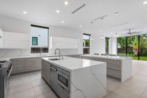 This spectacular 5 bd 5.5 ba is a turn-key, ultra-modern beauty both inside and out. through the grand entrance, immediately notice the pour of light from both front and back windows that stretch up to the ceiling. the kitchen is a chef's dream, with two massive islands, a sub-zero refrigerator, a wolf gas stove and oven, two dishwashers, two sinks and a breathtaking white-gray marble backsplash that ties together high-gloss, flip-lift upper cabinets and light wood lower cabinets. between the two islands, large walk-in pantry, and seemingly limitless cabinet space, kitchen storage is suited for the professional home chef. downstairs, find two large living areas, a breakfast area, a guest room with a walk-in closet and ensuite bathroom, and a dining room with an adjacent bar area.465 NE 4TH, BOCA RATON, FL 33432