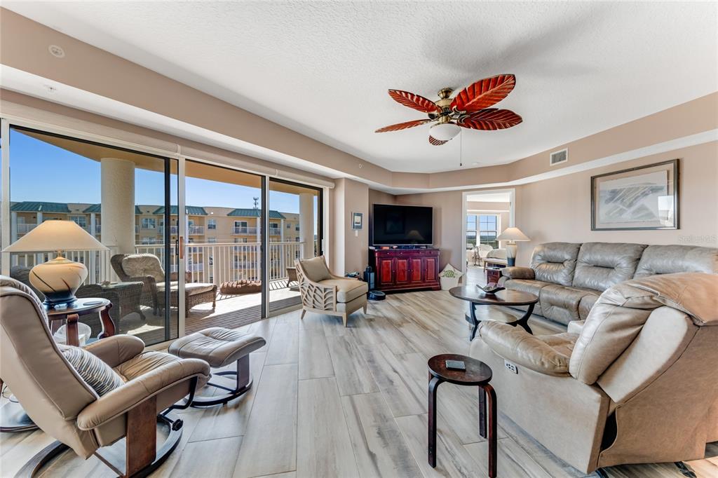 Presenting the exceptional penthouse condo you've been searching for. this unit exemplifies modern elegance, while boasting a 3-way split bedroom layout, each with its own private en-suite bathroom. this condo offers both comfort and privacy. the space is enhanced by beautiful wood-look porcelain tile flooring, installed in 2017, interior paint from 2020, and beautiful quartz countertops. enjoy breathtaking panoramic views from two private balconies, overlooking both the atlantic ocean and the intracoastal waterway. additional amenities include two assigned, secured parking spaces, a locked bike room, and a storage locker located on the first floor. residents also have access to three fitness gyms, a private beach club, a par-3 golf course, a pub, and a private marina complete with a dock master. this community provides the luxury and convenience of resort-style living. you can also bring you four legged furry friends as large dogs are welcome!4650 LINKS VILLAGE #D703, PONCE INLET, FL 32127