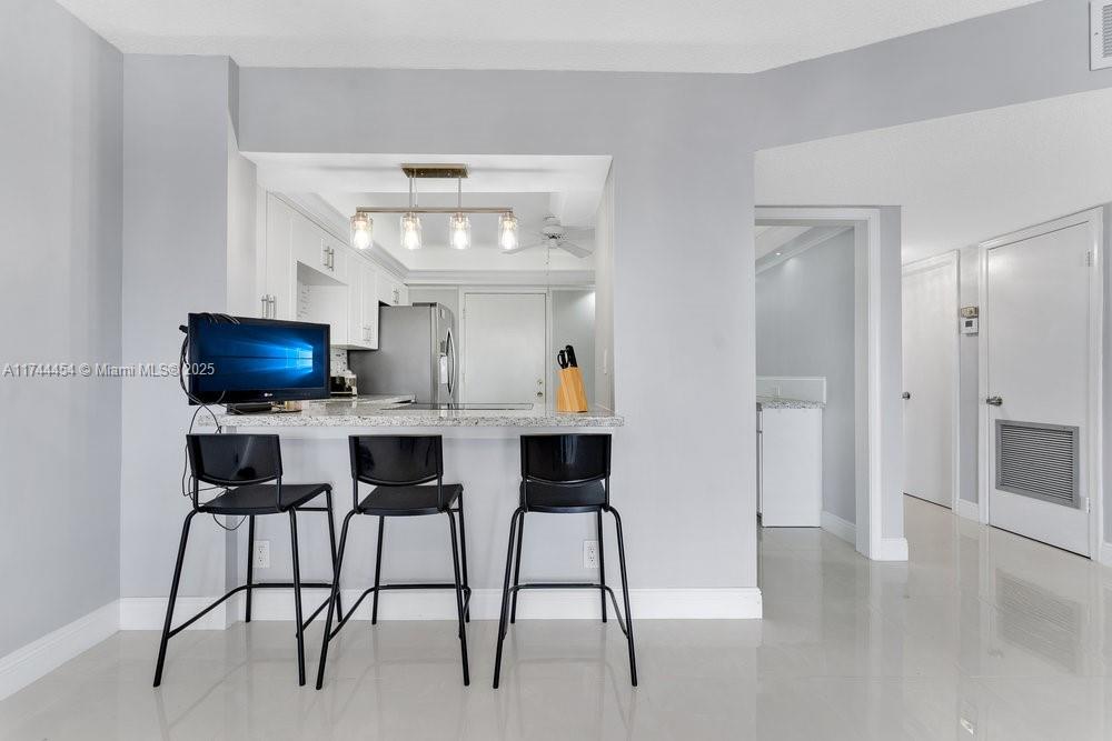 Enjoy a breathtaking view from this modern, open and bright 6th floor condo in the highly coveted castle gardens community. this 1 bed/ 1.5 bath showcases an immaculate, fully renovated interior. the kitchen shines with white cabinetry, crown molding, recessed led lighting, a pantry, built-in sideboard, granite countertops, and all-new stainless steel appliances. the expansive master bedroom includes a walk-in closet with built-in shelving and an extra storage closet. the master bath features a sleek shower, 48" vanity, granite countertops, an undermount sink, and polished chrome faucets. step onto the enclosed balcony to take in pool views and a serene cityscape, with the iconic guitar hotel glowing in the distance. secured entry with 24-hour roving security and keyed entry.4751 NW 21ST ST #606, LAUDERHILL, FL 33313