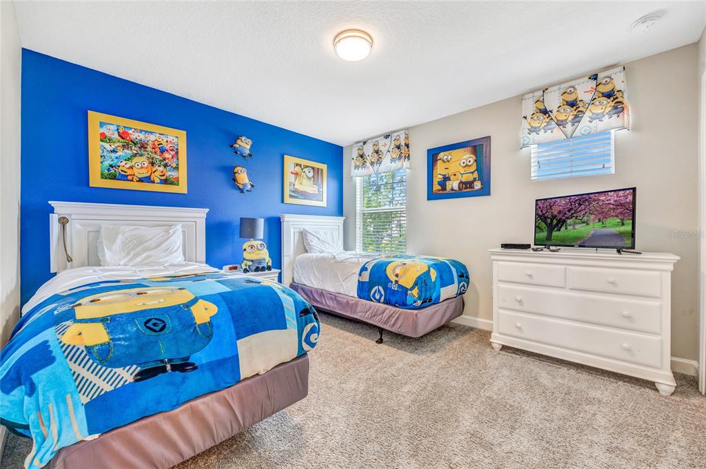 Your paradise awaits! this wonderful fully-furnished pool home is ready to go - as an investment property, vacation home, or primary residence! walk in to the spacious, open-concept living space featuring tons of seating, a formal dining table, and easy access to the kitchen. the kitchen has granite countertops, stainless steel appliances, large pantry, and counter seating! there are two downstairs bedrooms, each with their own dedicated bathroom. the back bathroom even has a door to the patio for easy access from the pool! upstairs, you have a large loft space that overlooks the downstairs, perfect for a movie room or game room. there are two themed guest bedrooms, each with their own bathroom. the final bedroom is a large primary suite, with a soaking tub and large walk-in shower. stepping outside, you have a private pool and spa with room for lounging and dining, the perfect florida retreat! the garage has also been equipped as a game room, a great space to entertain guests of all ages. the gated storey lake community features a large clubhouse with fitness center, resort-style pool, lazy river, water slides, splash pad, mini golf course, volleyball, and more! plus, the hoa includes landscaping, basic cable and internet, and trash pickup, so there is little for you and guests to worry about. located between walt disney world and orlando international airport, the community is in the perfect location, with easy access to numerous shopping, dining, and entertainment destinations. make this home your florida oasis, before it is gone!4782 KINGS CASTLE, KISSIMMEE, FL 34746