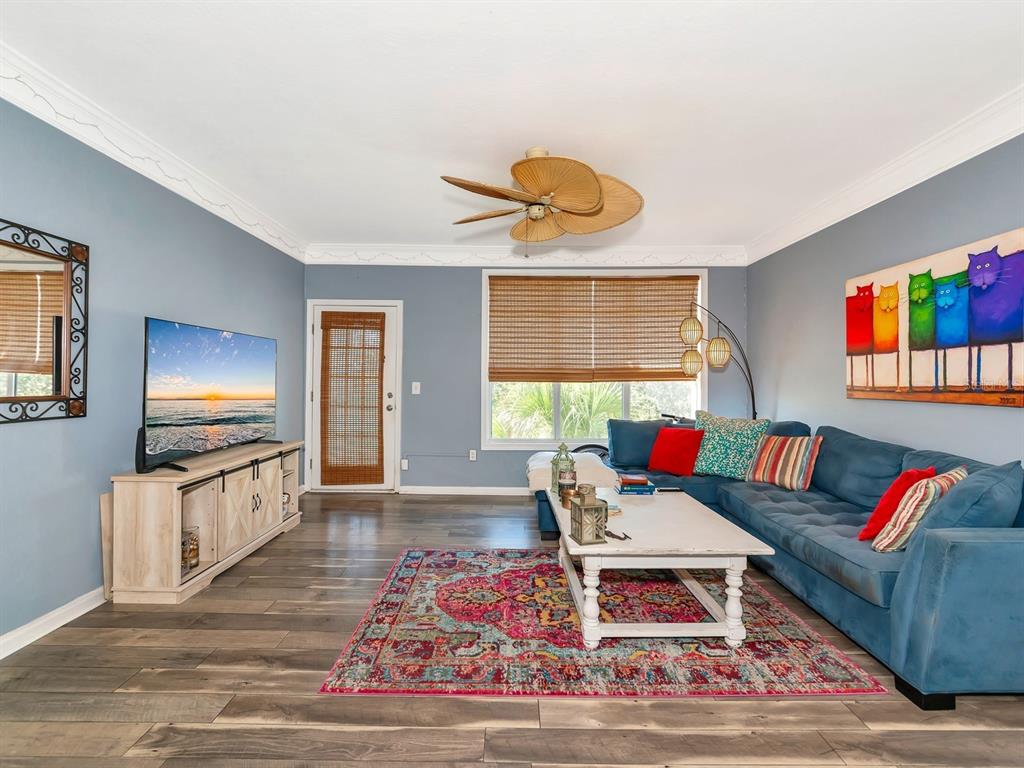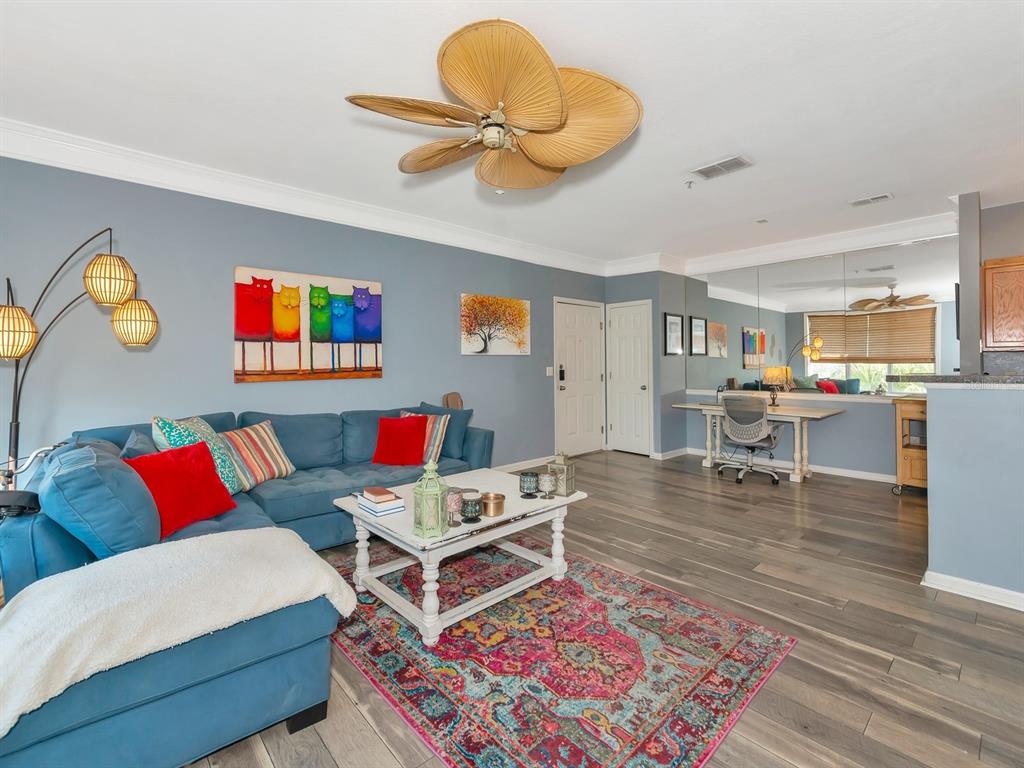 One or more photo(s) has been virtually staged. welcome to this top-floor corner residence in the gated community of the palms of cortez. it offers a sense of privacy, as it is strategically located without any neighboring buildings behind it. the enclosed and screened lanai, complete with exterior storage, takes full advantage of this distinct feature. the open concept beautifully merges the kitchen with the living and dining areas, creating the perfect space for everyday florida living. experience the captivating charm of coastal vibes with stylish beach-inspired laminate flooring, bahama-style fans, elegant crown moldings, and a vibrant color palette that brings your space to life. the kitchen features wood cabinetry with ample display space above, which is excellent for showcasing your favorite decor or kitchen essentials. it also includes a modern basin sink and customary appliances. the laundry room is ideally situated just off the kitchen. the primary bedroom boasts a spacious walk-in closet. residents can use a resort-style swimming pool, play tennis, or unwind at the clubhouse. there’s also a playground and a picnic area for outdoor fun. the meticulously maintained grounds contribute to a serene and welcoming environment. beyond the community, you will be pleased by the prime location. a mere block away from many dining options and everyday conveniences are at your fingertips. plus, with quick access to the i-275 and i-75. the breathtaking beaches of anna maria island are just ten minutes away, inviting you to enjoy its sandy shores and caribbean blue water. the prestigious img academy, local shopping centers, the airport, state college, and more culinary delights are just moments away.4802 51ST W #1811, BRADENTON, FL 34210