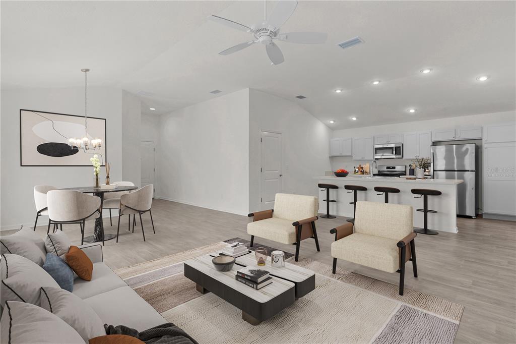 One or more photo(s) has been virtually staged. ideally located in what has become the vibrant heart of the villages, this like-new 3-bedroom, 2-bath emerald patio villa offers over 1,400 sq. ft. of stylish living space. the emerald 3 model is highly sought after for its three-bedroom layout, a rarity among patio villas, which typically feature only two bedrooms. this extra room is perfect for those desiring additional space for an office, craft room, or guest accommodations. just five minutes from brownwood paddock square, you are also moments away from ednas on the green, a cozy beer and wine bar nestled on a golf green, providing a fun variety of food and live music. additionally, the home is close to sawgrass grove, offering ample dining and entertainment options, and provides easy access to lake sumter landing and the upcoming eastport town square via golf cart. literally in the neighborhood, you'll find the lake okahumpka recreation center, a lakeside retreat featuring a boat launch, boardwalk, fire pit, game room, and art room, all overlooking the serene lake okahumpka. adjacent to the recreation center is the soon-to-open harry and the natives restaurant, promising a laid-back atmosphere with great cuisine, cocktails, and fun for villagers overlooking the amazing florida scenery. for outdoor enthusiasts, nearby golf courses, pitch an putt, biking and hiking trails are numerous. the villages boasts over 50 golf courses, including both championship and executive courses, catering to all skill levels. nature lovers can explore various trails such as the hogeye preserve nature trail, offering scenic pathways for walking and biking. this home features an open floor plan with vaulted ceilings, an inside laundry room (washer & dryer included), and closets in all three bedrooms. the modern kitchen shines with sleek light gray wood cabinetry, ample counter space, and stainless steel appliances, including a gas range, dishwasher, refrigerator, and microwave. move-in ready and packed with upgrades, schedule your showing today!4813 PIVANKA, THE VILLAGES, FL 32163