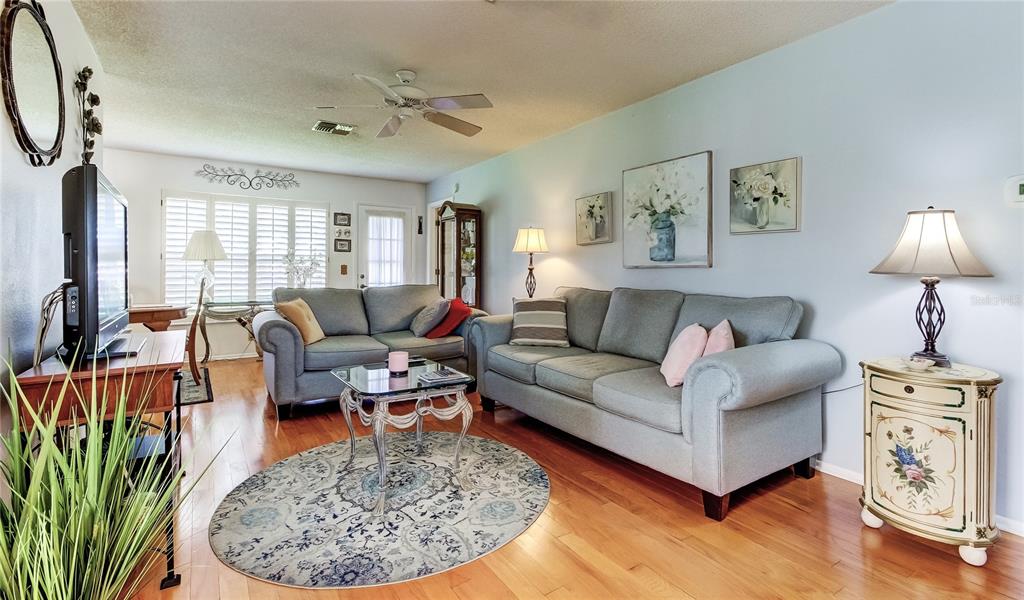 Picture perfect end unit, 2/2 one car garage condo,on a beautiful corner oversized lot. light and bright and open floor plan is welcoming upon entering. hardwood floors in the living area, plantation shutters and a separate dining area off of the living room. kitchen with some newer appliances and cozy corner eat-in area. primary bedroom with ensuite updated bath and walk-in closet. roof was replaced by the association in 2022. heritage lake is a 55+ community with an active clubhouse, heated pool and many activities for you to enjoy. this condo section allows a small pet and area is close to shopping and restaurants. you'll love the front porch, so see it today, before it is gone!4819 BOONESBORO, NEW PORT RICHEY, FL 34655