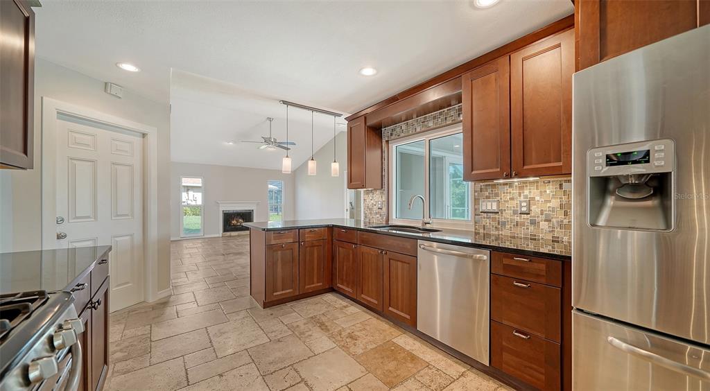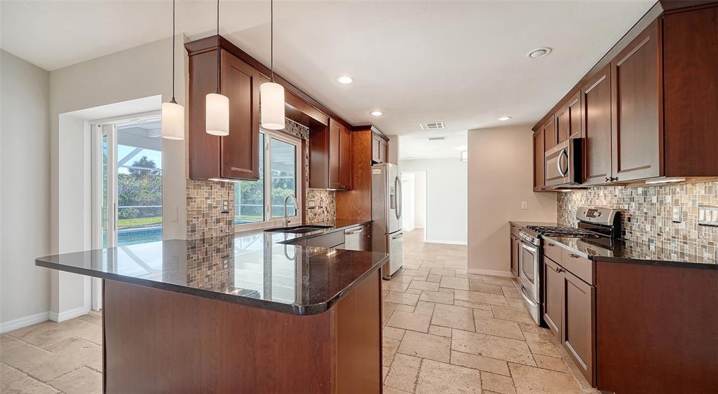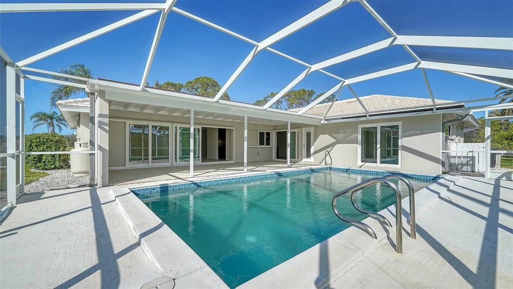 Nestled in the highly sought-after sorrento east neighborhood, this beautifully updated 3 bedroom, 2 bathroom home offers the perfect blend of style, comfort and modern features. with a desirable split floor plan with nearly 1,800 square feet of living space, this home is ideal for anyone looking for a private, move-in-ready retreat! inside you will discover vaulted ceilings and a bright, open layout with travertine tile floors creating a seamless flow from room to room. the spacious living and dining areas are perfect for entertaining or relaxing, while the centrally located kitchen features wood cabinetry, sleek granite countertops, and top-of-the-line appliances. this home has been updated with hurricane impact glass windows and sliding glass doors for added safety and peace of mind! the primary bedroom features a private en-suite bathroom and generous closet space lined with cedar wood panels while the two additional bedrooms share a second updated bathroom ensuring ample space for family and guests.enjoy the private backyard with a stunning inground pool surrounded by mature trees and fresh shell landscaping. the covered rear lanai provides abundant covered space highlighted by a tongue & groove wood beamed ceiling perfect for outdoor living and entertaining. this area is known for its prime location close to shopping, dining and top-rated schools plus it is only 4 miles to nokomis beach!482 RUBENS DR E, NOKOMIS, FL 34275