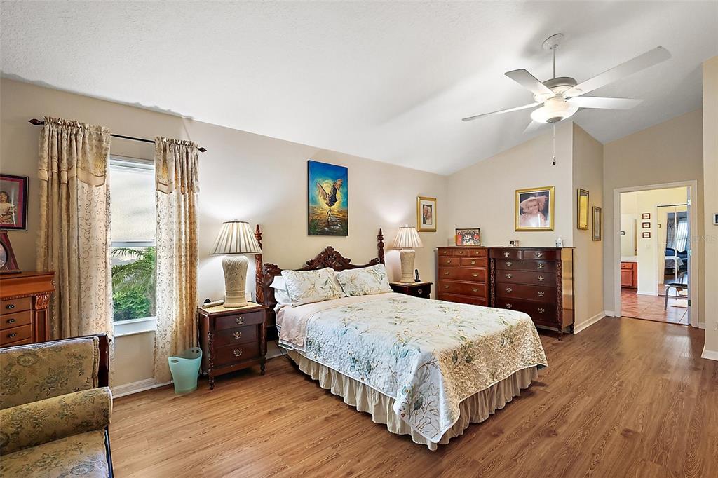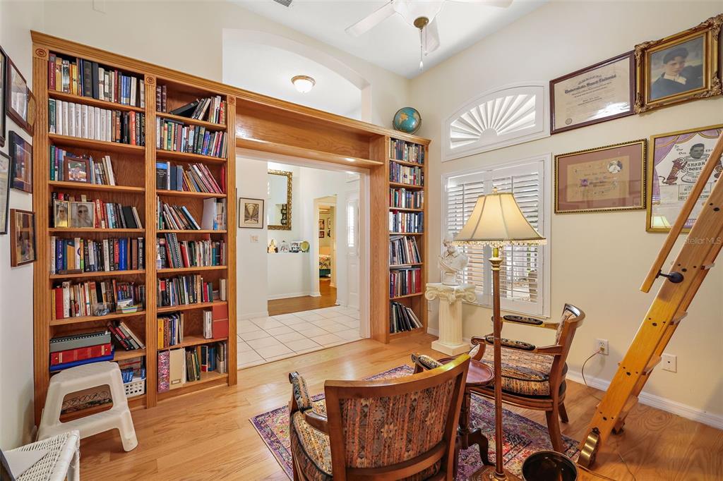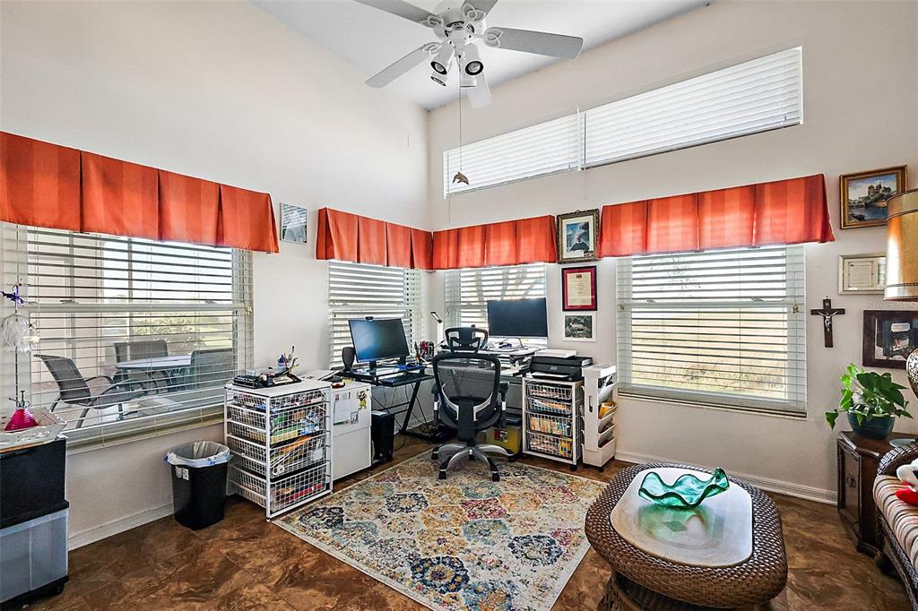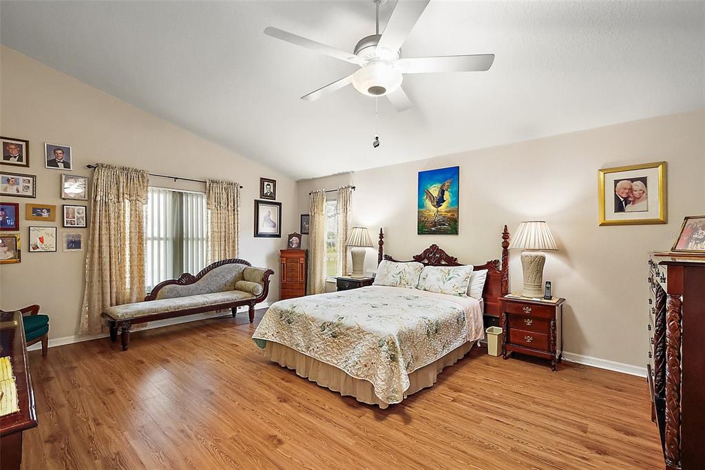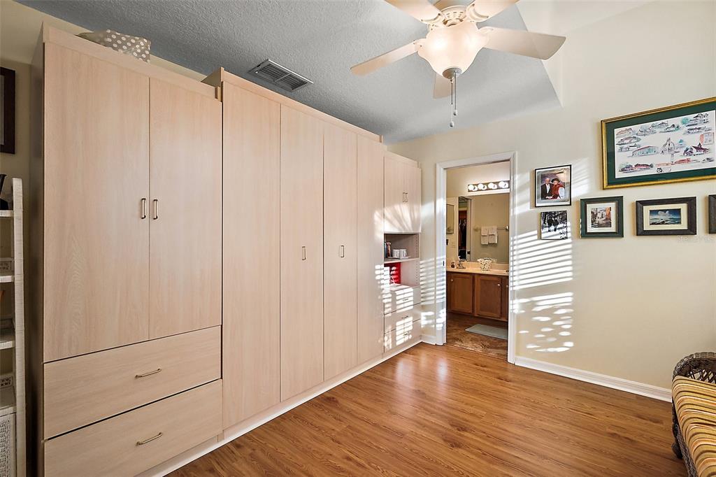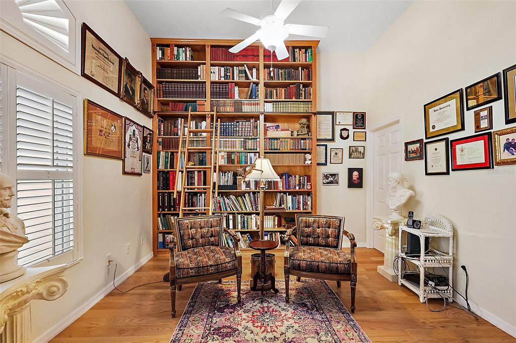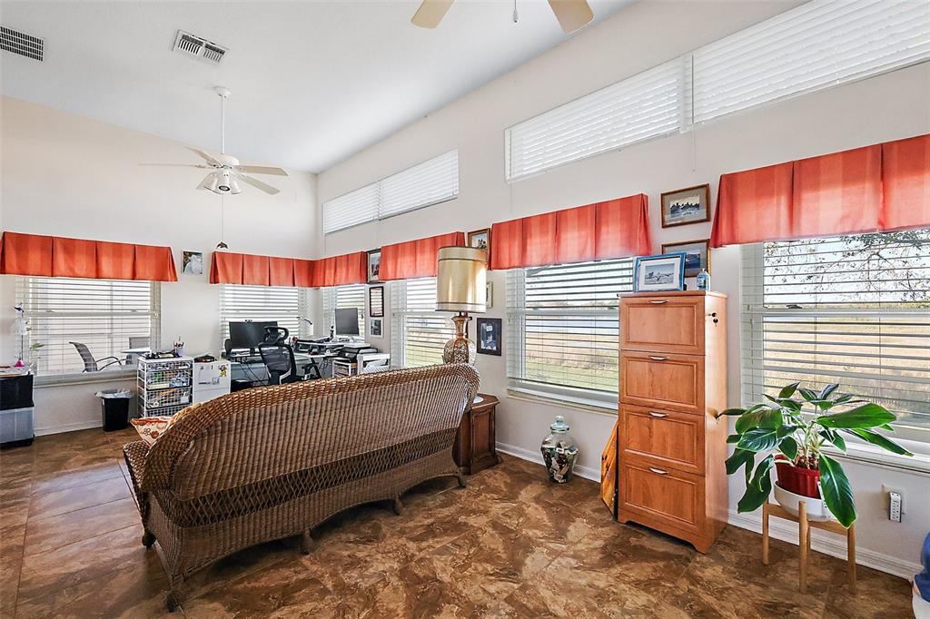 This exceptional golf course home offers stunning views of the golf course, sawgrass lake, and the manor clubhouse from its elevated position above the third tee-box. a screened front entryway welcomes you into the home, where you'll immediately be captivated by the impressive library featuring floor-to-ceiling custom-built oak shelving and hardwood flooring. with 3 bedrooms, 3 bathrooms, and 2,780 square feet of living space, this sought-after redwood floor plan features a spacious living room with beautiful hard wood floors, high ceilings, and dining area. you'll also enjoy picturesque views of the club house across the lake that lights up in the evenings from the living room and florida room that offers additional living space with large windows and an entrance to one of the two patios. the large kitchen with cathedral ceilings has abundant natural light, ample counter and cabinet space, a huge pantry, and kitchen nook with glass doors that open to the screen-enclosed patio with a water-resistant shade canopy that allows you to enjoy the amazing view in any weather. the large primary bedroom has a giant walk-in closet, vinyl flooring, and a primary bathroom with a jacuzzi tub, an oversized and handicap accessible walk-in shower, and his-and-her vanity sinks. the guest suites, located at the front of the house, provide your guests with their own private corner of the house, including a full bathroom with a walk-in shower, large closets, and a third bedroom with a murphy bed for added space when needed. the home's exterior is beautifully enhanced by well-maintained, brick-lined flower beds, a manicured lawn, and a full irrigation system. this home has many recent updates including a new hvac system installed in 2024, a 50-year shingle roof installed in 2017, plantation shutters, hardwood floors, and hardiplank concrete board siding. additional features of the home include a new adt security system with exterior cameras and two control panels, dual paned golf ball proof windows, and an extended garage. the plantation at leesburg community offers residents a wealth of amenities, two golf courses, three pools with hot tubs, three clubhouses, a driving range, putting green, restaurant, pro shop, sauna, two fitness rooms, a variety of court games including tennis, pickleball, shuffleboard, bocce, horseshoes, a fishing pier, sand volleyball court, batting cage, walking path, and an outdoor pavilion with a gorgeous outdoor kitchen. there are also numerous activities, entertainment options, and clubs available each week. this premier gated 55+ community is conveniently less than an hour from orlando international airport and within a two-hour drive of stunning beaches on both the atlantic and gulf coasts. this home and community truly have everything you need to enjoy the best that florida has to offer.4822 SAWGRASS LK, LEESBURG, FL 34748