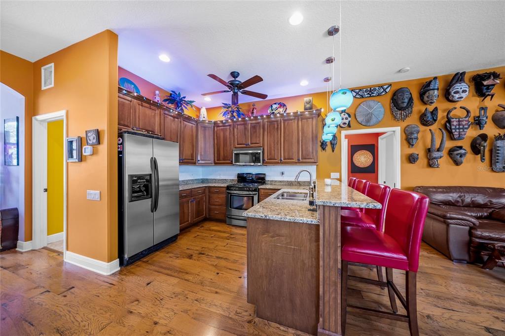 Split Bedroom Walk-In Closet(s) Eating Space In Kitchen High Ceilings Stone Counters Window Treatments Solid Surface Counters Solid Wood CabinetsCrown Molding Kitchen/Family Room Combo Tray Ceiling(s)Exterior Features: