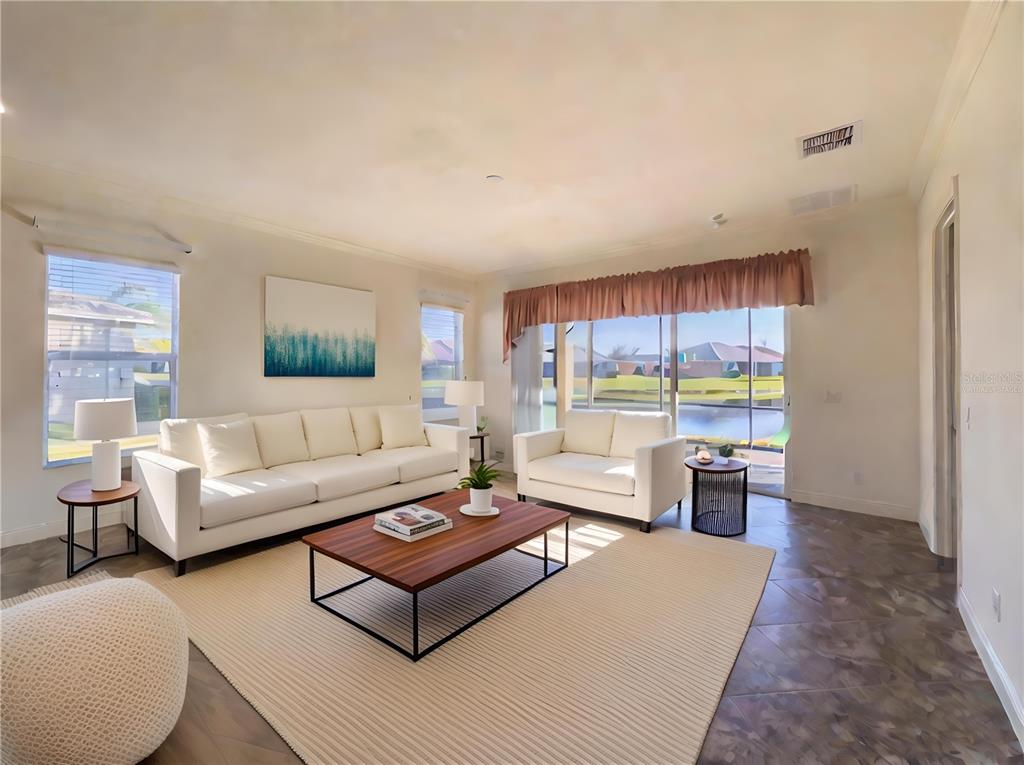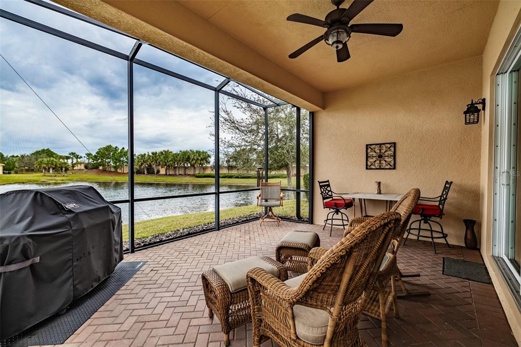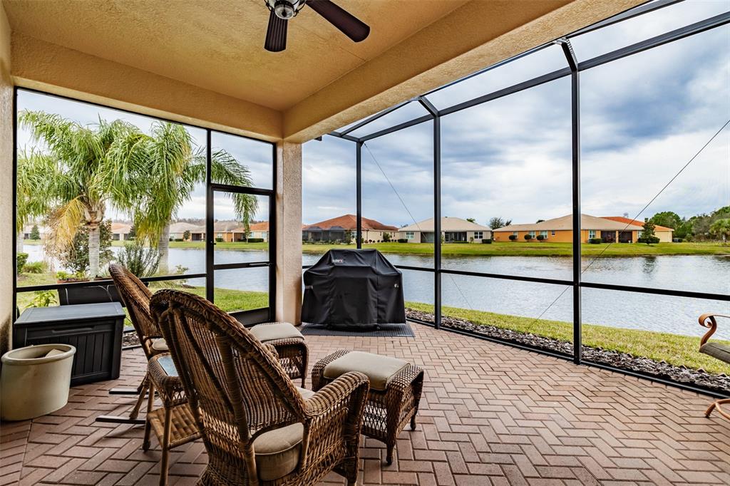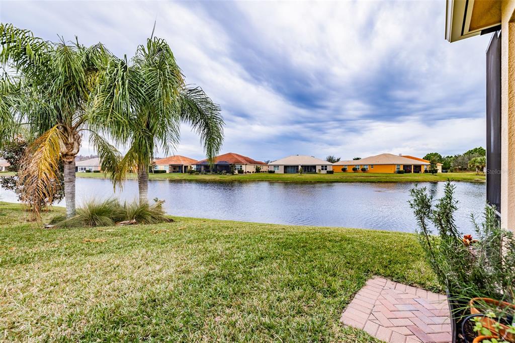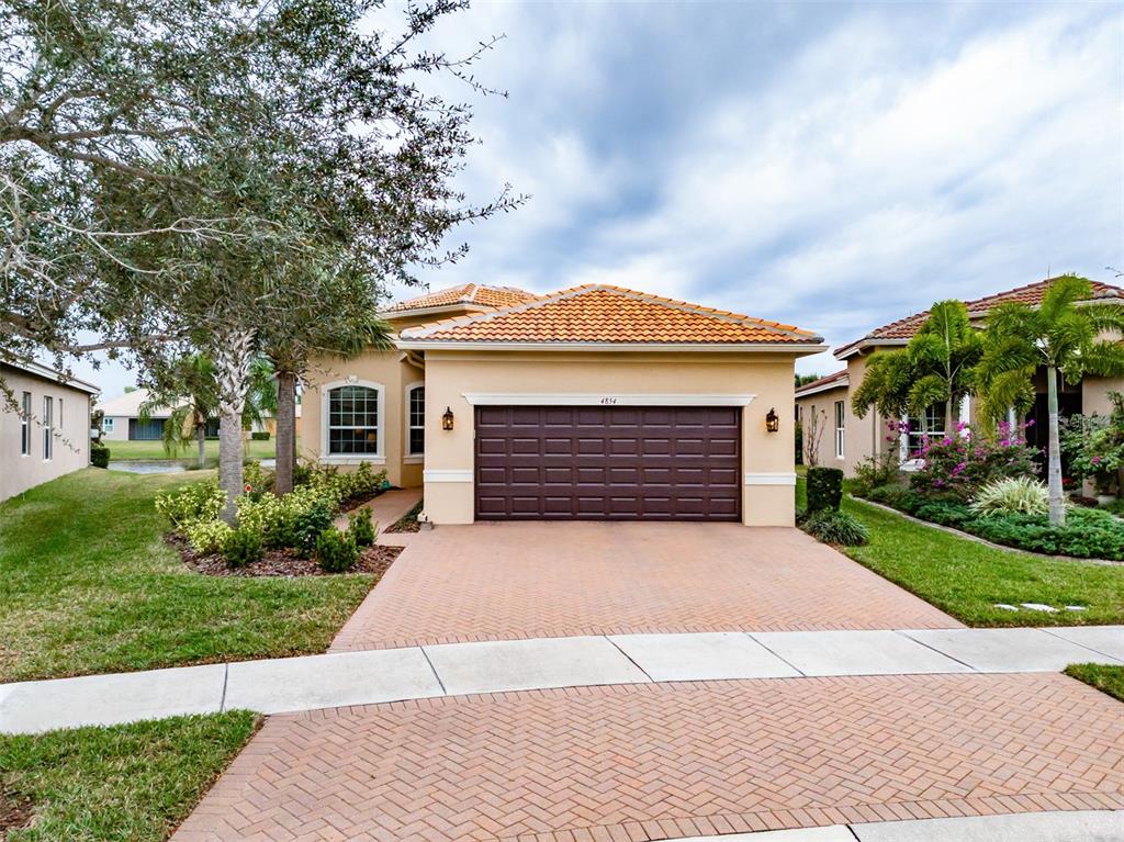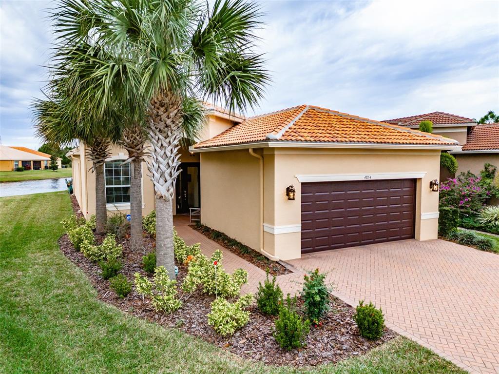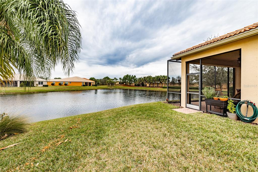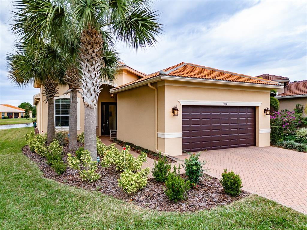 This marvelous 2016 gl homes built marsala is in valencia lakes, tampa bay’s premier 55+ active adult community. a 12-month choice home ultimate warranty will ensure your peace of mind. the exterior was painted in 11/2023, the barrel tile roof was cleaned in 03/2024, and new portico & coach lighting were added in 12/2023 all creating an outstanding street appeal that is befitting of the beauty within. a widened paver driveway is practical. a full-length glass front door welcomes you into the foyer with its 12’ to 13’ tray ceiling. you will be drawn by the magnificent water view to the rear, but first let’s look within. 17”x17” tile on the diagonal graces the floors, except for the carpeted bedrooms, and crown molding accentuates the walls/ceilings in the common areas. immediately left of the foyer is the office/den which features double french doors, a ceiling fan and a great view of life out the front. right of the foyer is the guest wing which features a bedroom with a ceiling fan, a walk-in closet and a full guest bathroom. situated at the front of the house, this space provides guests with exceptional privacy and comfort. forward of the foyer lies an open floorplan featuring a living room, dining room, family room and kitchen. the dining room will comfortably seat 8 persons and features a subtly beautiful chandelier. the spacious living room affords space limited only by your imagination. the kitchen features abundant granite countertops, a massive peninsula-style counter-height granite island that will comfortably seat 4 persons, solid maple cabinetry with over/under cabinet lighting & scroll molding crowning the upper cabinets, stainless-steel appliances and a stunning view of the lake. the expansive family room is 18’x18’, wired for a ceiling fan and has an 8’ three-panel sliding-glass door to the lanai. the sizable owners’ bedroom suite lies at the rear of the house and provides the owners with a retreat that will be welcomed at night and daybreak. it features a tray ceiling with fan, a spectacular water view, two large walk-in closets and an ensuite with a large walk-in tiled shower with stainless steel grab bar, two separated vanities, granite countertops, mirrors galore and a water closet for the commode. through the sliders in the family room is the 18’x10’ lanai with 5’ screened extension featuring a water view that is certain to make you smile. grab your pole to catch and release the abundant bass! the laundry room at the front of the house features 2023 lg washer & dryer, a utility sink, full-length cabinets and a shelf above the appliances. step into the extended garage, you will find an epoxied floor, wall mounted heavy duty wire shelving & two 4’x8’ ceiling mounted safe-rack storage systems. environmental comforts are assured by an annually serviced 3.5-ton hvac and a whole house water softener. cat 6 cabling supports your wired needs. seamless gutters are installed along the entire roofline.this gated community offers a 40,000sf clubhouse for entertainment shows, dances, over 130 clubs, a 24/7 fitness center, resort style pool, a lap pool, resistance pool, multi-purpose fitness rooms, card rooms, pickle ball courts, usta har-tru clay tennis courts, shuffleboard, bocce, the areas’ best softball field, half-court basketball, community gardens, dog park, and rv & boat storage. enjoy elegant comfort in this beautiful home with an awe-inspiring water view and begin living your idyllic life today in valencia lakes.4854 SANDY GLN, WIMAUMA, FL 33598