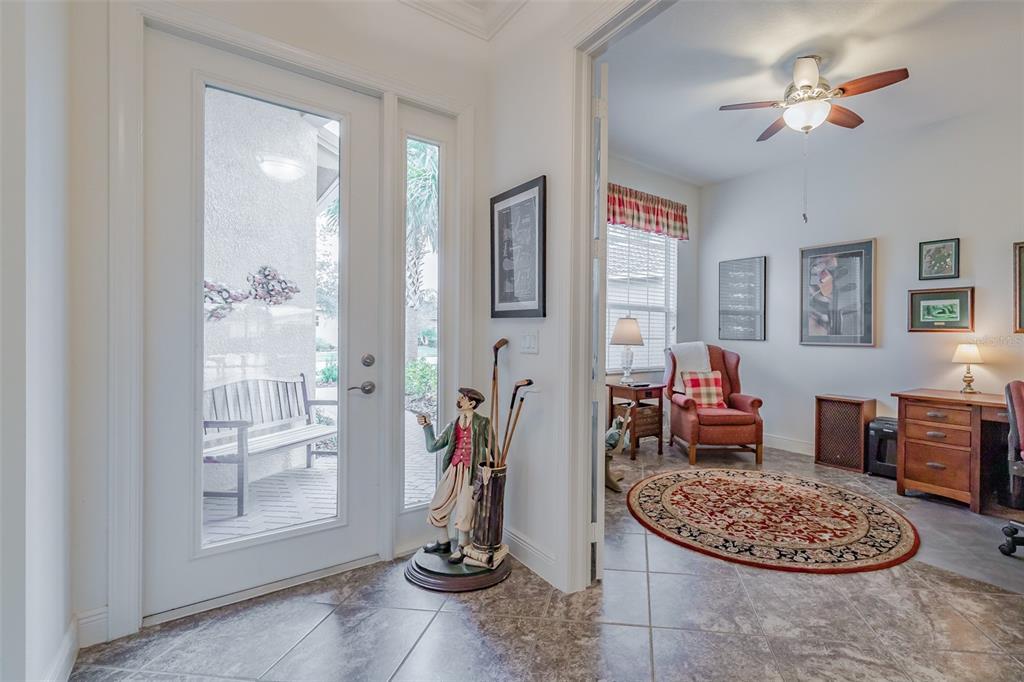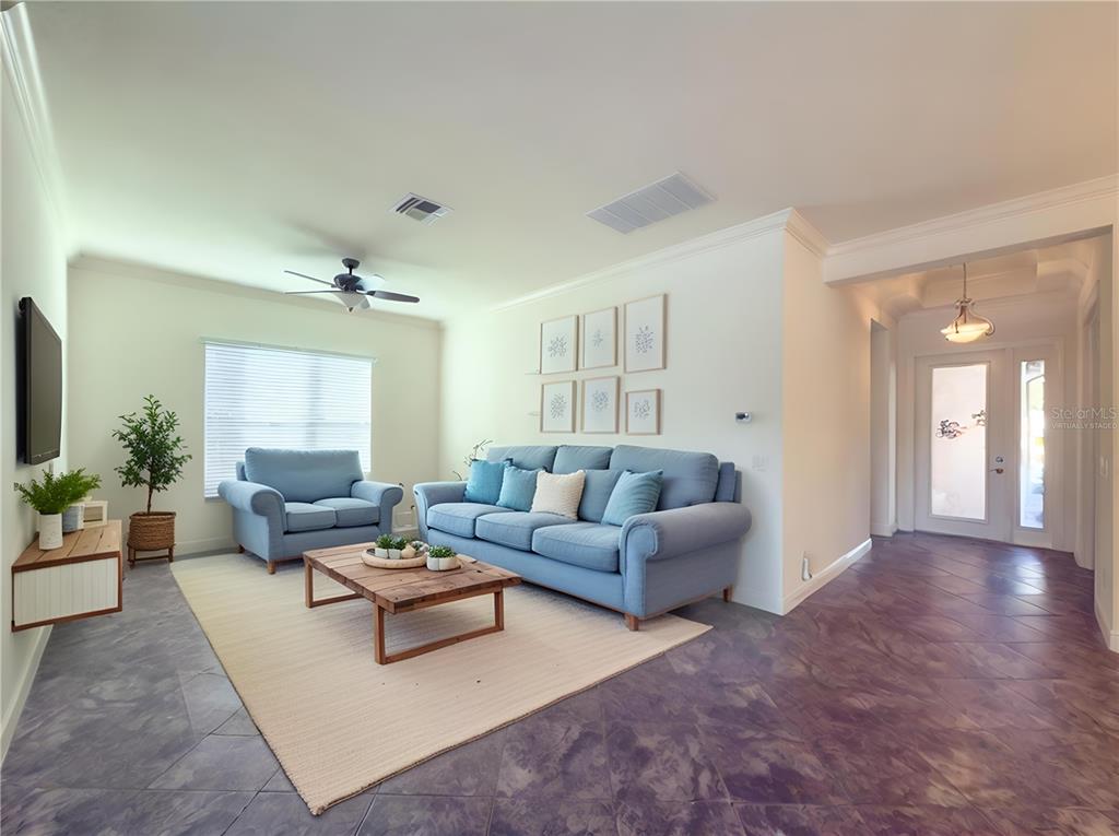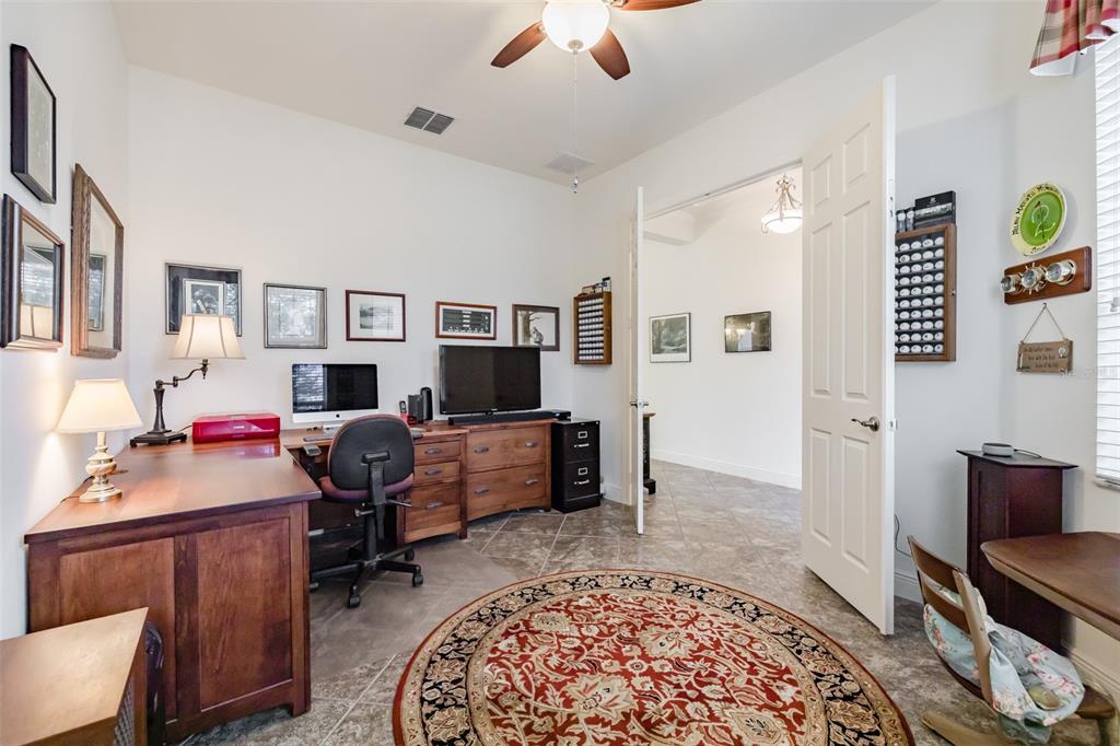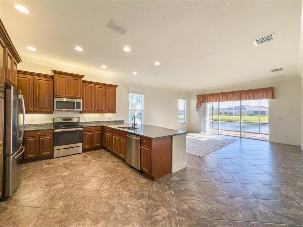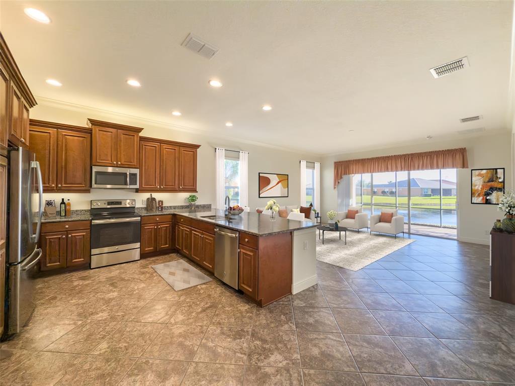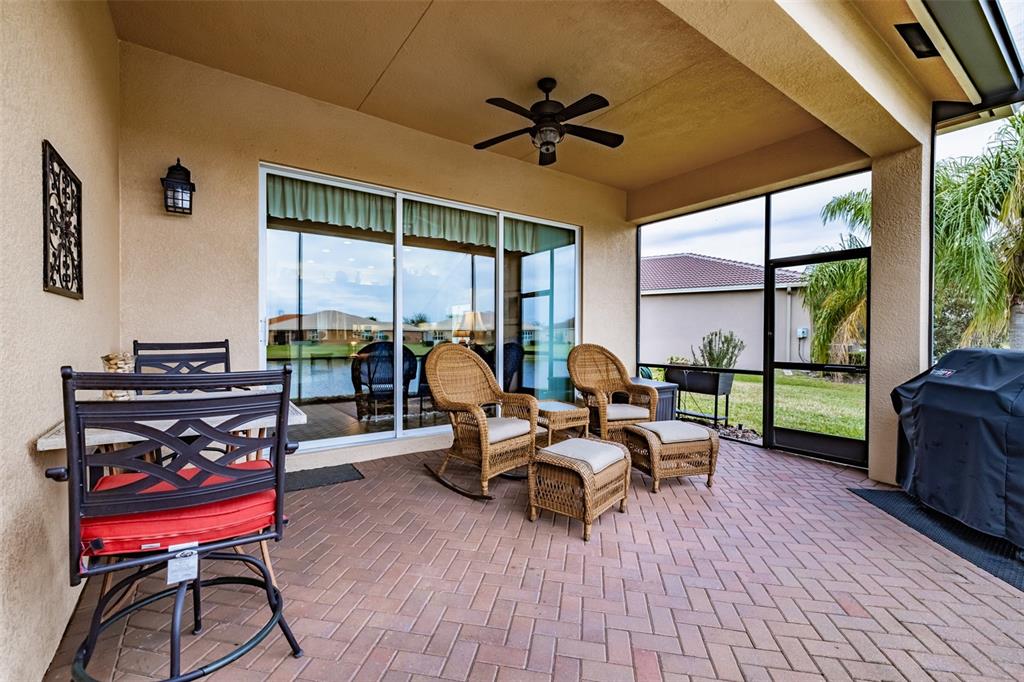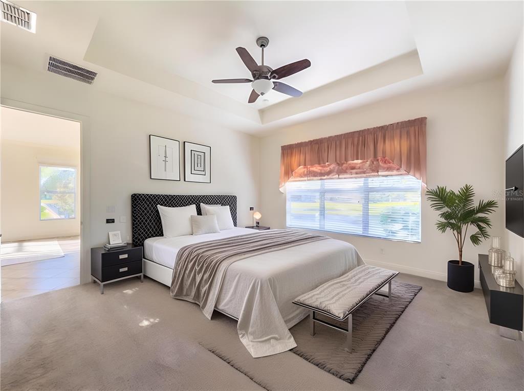 This marvelous 2016 gl homes built marsala is in valencia lakes, tampa bay’s premier 55+ active adult community. a 12-month choice home ultimate warranty will ensure your peace of mind. the exterior was painted in 11/2023, the barrel tile roof was cleaned in 03/2024, and new portico & coach lighting were added in 12/2023 all creating an outstanding street appeal that is befitting of the beauty within. a widened paver driveway is practical. a full-length glass front door welcomes you into the foyer with its 12’ to 13’ tray ceiling. you will be drawn by the magnificent water view to the rear, but first let’s look within. 17”x17” tile on the diagonal graces the floors, except for the carpeted bedrooms, and crown molding accentuates the walls/ceilings in the common areas. immediately left of the foyer is the office/den which features double french doors, a ceiling fan and a great view of life out the front. right of the foyer is the guest wing which features a bedroom with a ceiling fan, a walk-in closet and a full guest bathroom. situated at the front of the house, this space provides guests with exceptional privacy and comfort. forward of the foyer lies an open floorplan featuring a living room, dining room, family room and kitchen. the dining room will comfortably seat 8 persons and features a subtly beautiful chandelier. the spacious living room affords space limited only by your imagination. the kitchen features abundant granite countertops, a massive peninsula-style counter-height granite island that will comfortably seat 4 persons, solid maple cabinetry with over/under cabinet lighting & scroll molding crowning the upper cabinets, stainless-steel appliances and a stunning view of the lake. the expansive family room is 18’x18’, wired for a ceiling fan and has an 8’ three-panel sliding-glass door to the lanai. the sizable owners’ bedroom suite lies at the rear of the house and provides the owners with a retreat that will be welcomed at night and daybreak. it features a tray ceiling with fan, a spectacular water view, two large walk-in closets and an ensuite with a large walk-in tiled shower with stainless steel grab bar, two separated vanities, granite countertops, mirrors galore and a water closet for the commode. through the sliders in the family room is the 18’x10’ lanai with 5’ screened extension featuring a water view that is certain to make you smile. grab your pole to catch and release the abundant bass! the laundry room at the front of the house features 2023 lg washer & dryer, a utility sink, full-length cabinets and a shelf above the appliances. step into the extended garage, you will find an epoxied floor, wall mounted heavy duty wire shelving & two 4’x8’ ceiling mounted safe-rack storage systems. environmental comforts are assured by an annually serviced 3.5-ton hvac and a whole house water softener. cat 6 cabling supports your wired needs. seamless gutters are installed along the entire roofline.this gated community offers a 40,000sf clubhouse for entertainment shows, dances, over 130 clubs, a 24/7 fitness center, resort style pool, a lap pool, resistance pool, multi-purpose fitness rooms, card rooms, pickle ball courts, usta har-tru clay tennis courts, shuffleboard, bocce, the areas’ best softball field, half-court basketball, community gardens, dog park, and rv & boat storage. enjoy elegant comfort in this beautiful home with an awe-inspiring water view and begin living your idyllic life today in valencia lakes.4854 SANDY GLN, WIMAUMA, FL 33598